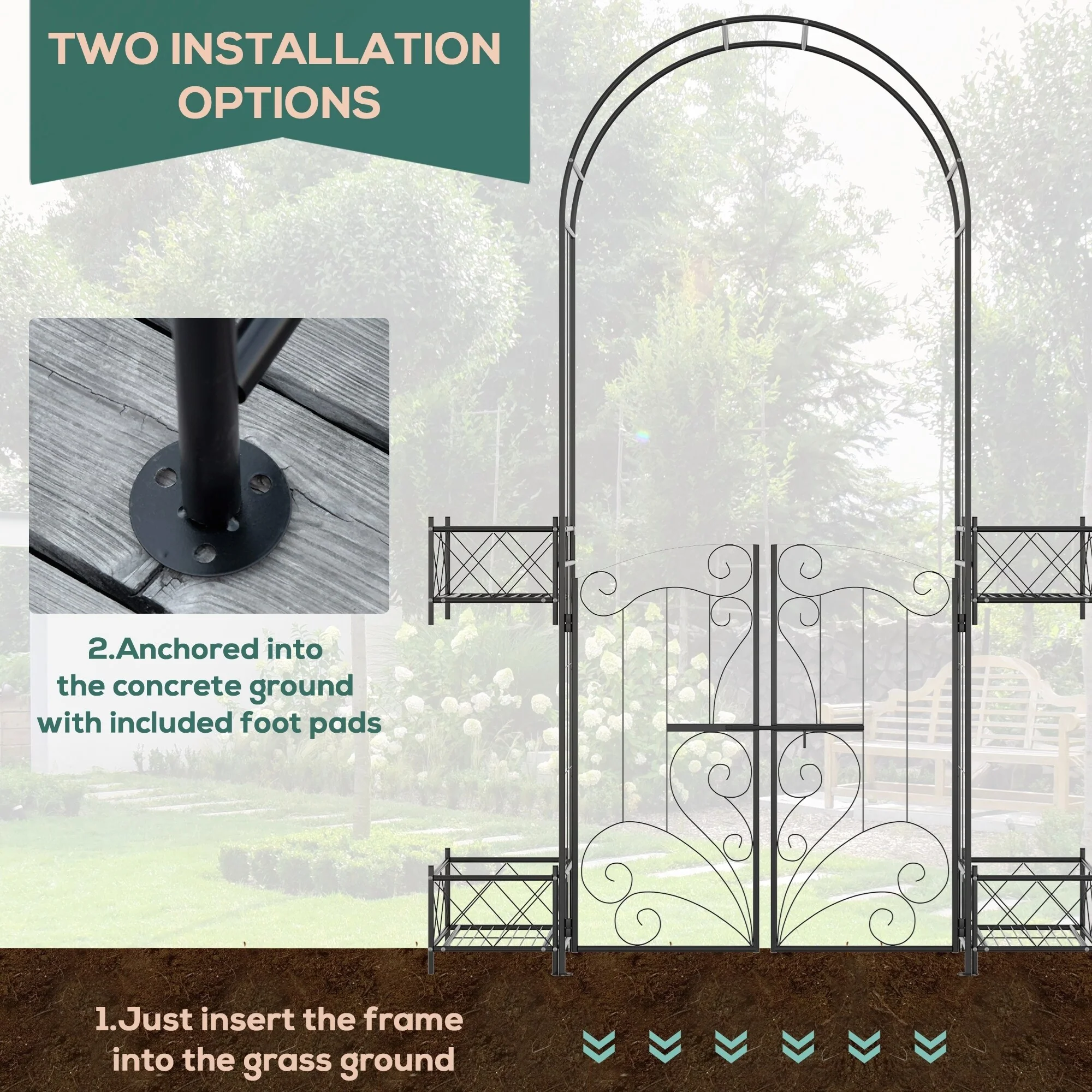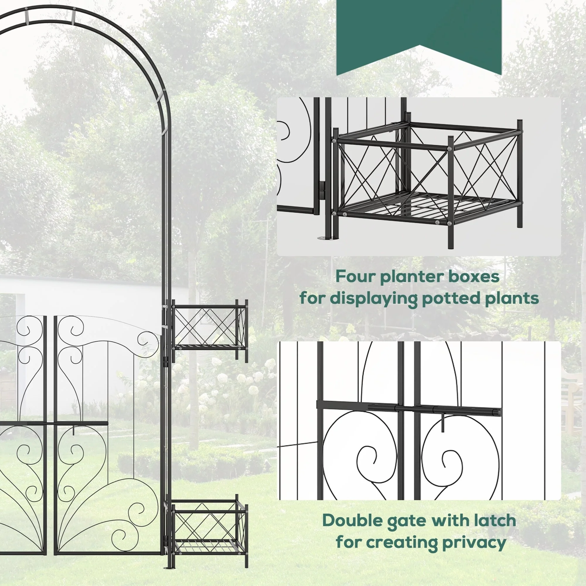 Outsunny Metal Garden Arch Trellis with Gate