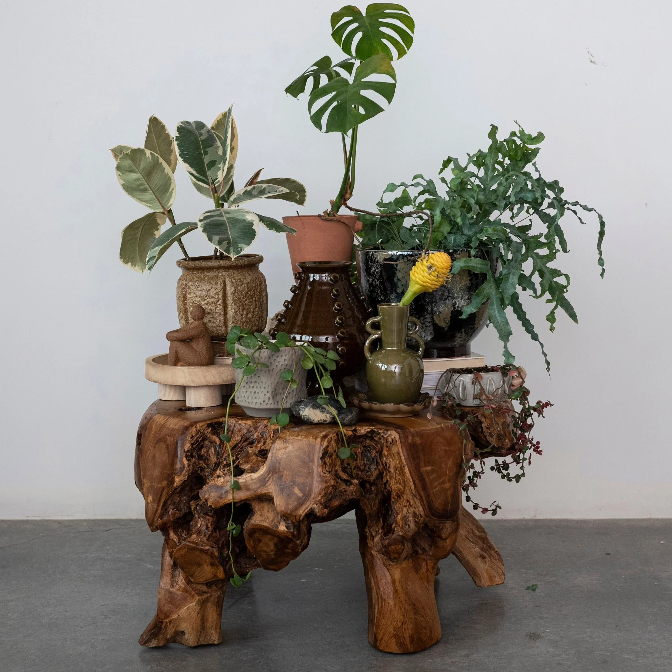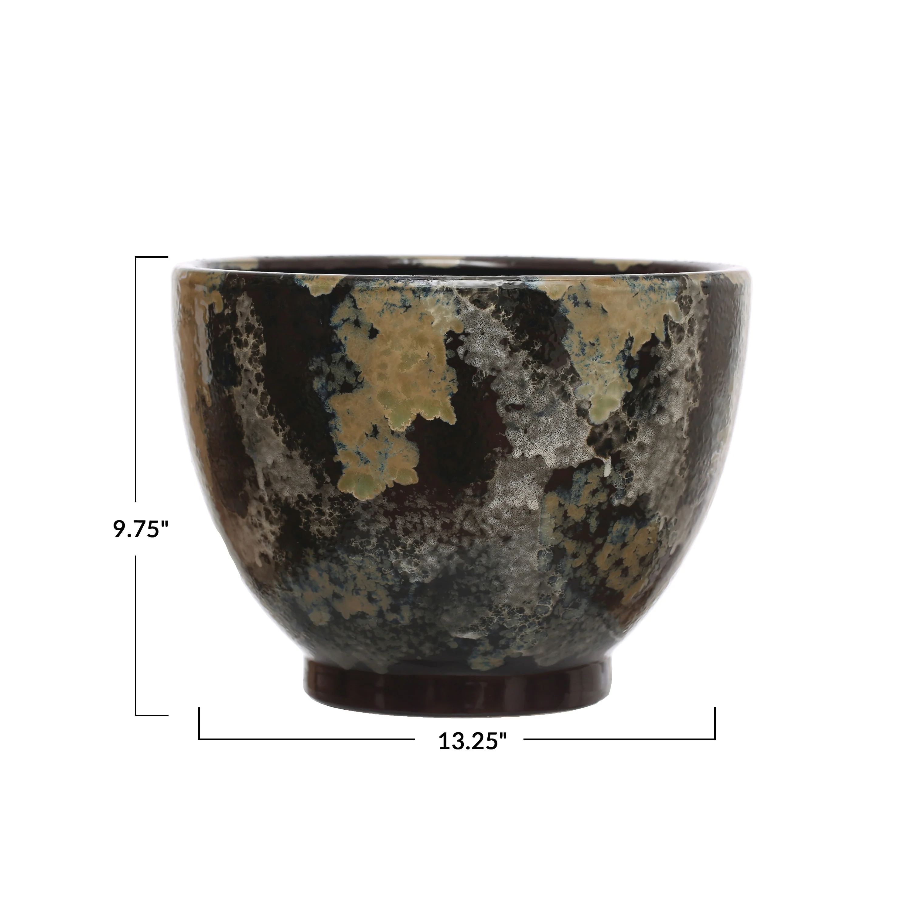 Hand-Painted Stoneware Planter with Reactive Glaze - 13.4"L x 13.4"W x 9.6"H