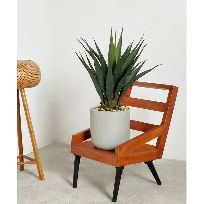 Sagebrook Home Neutral Grey Ombre 8" Ceramic Planter with Wood Stand - 8" x 8" x 9"