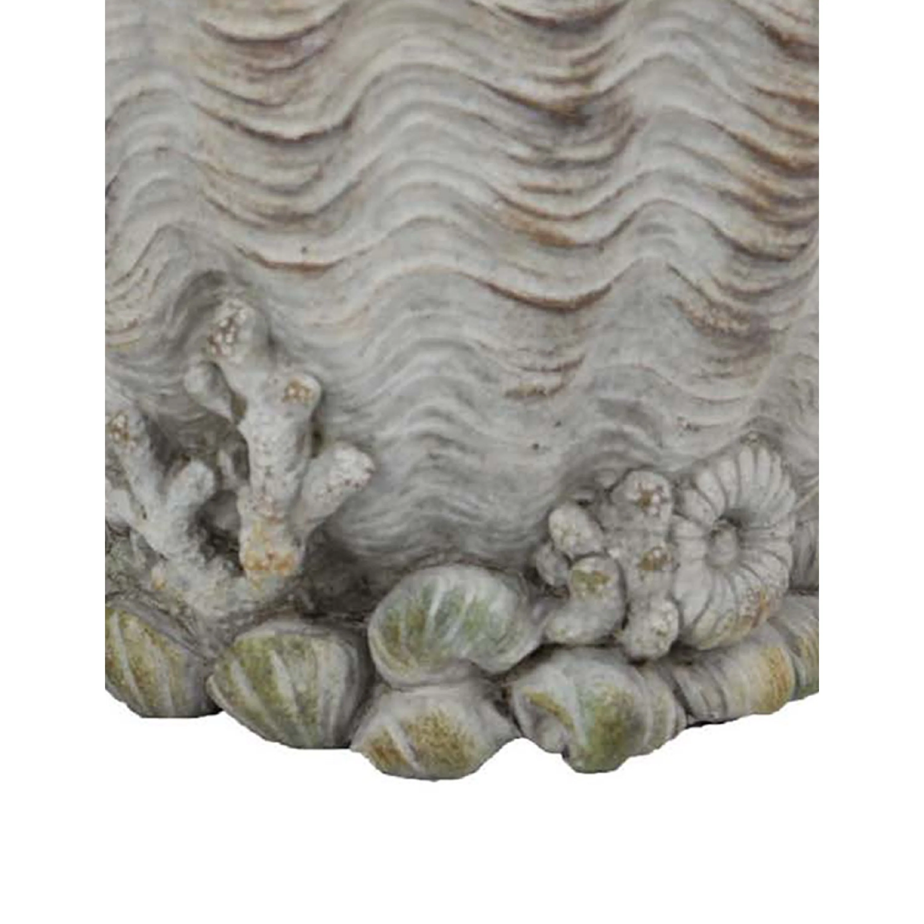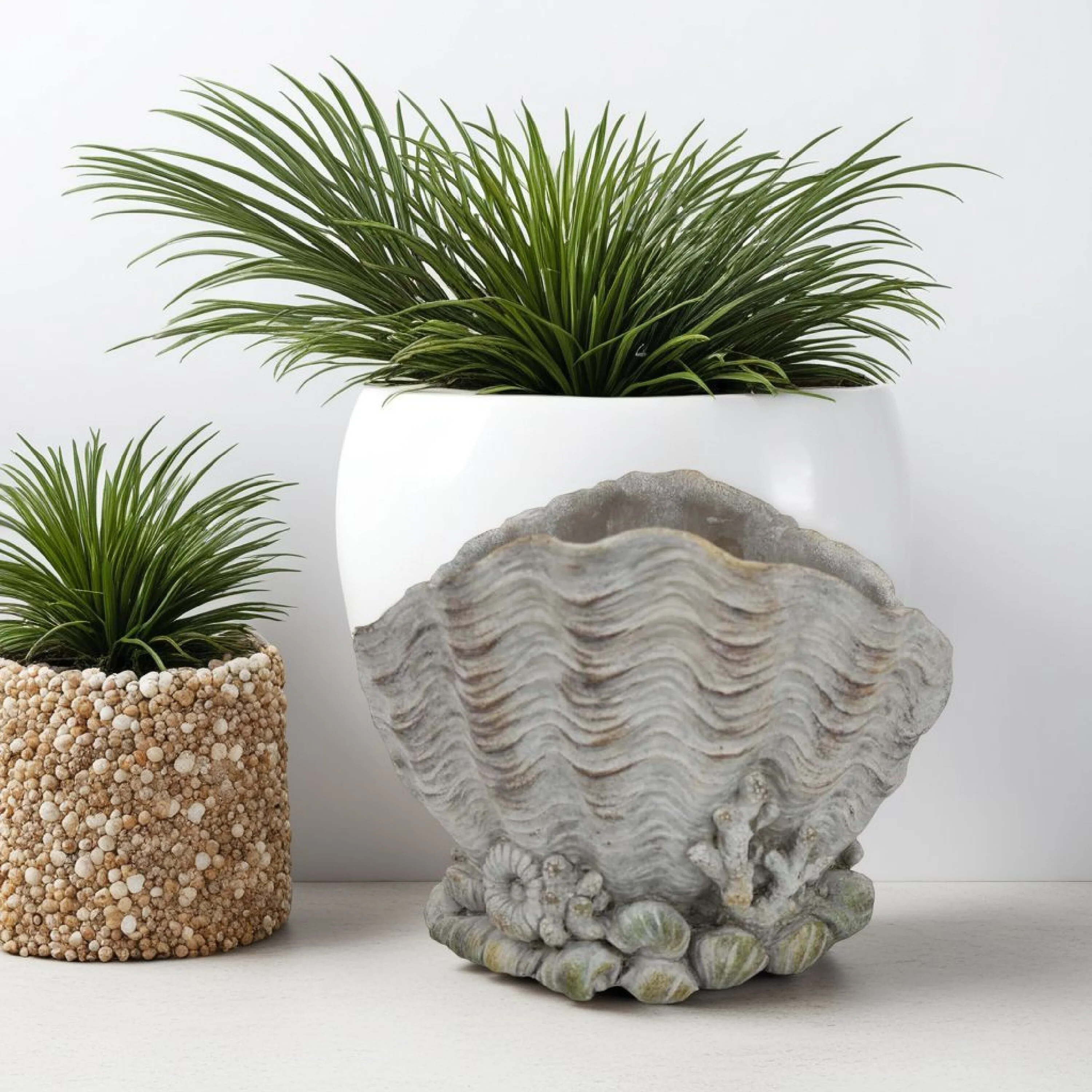 Coastal Clam Shell Planter w Coral Accents, Weathered Gray Terracotta