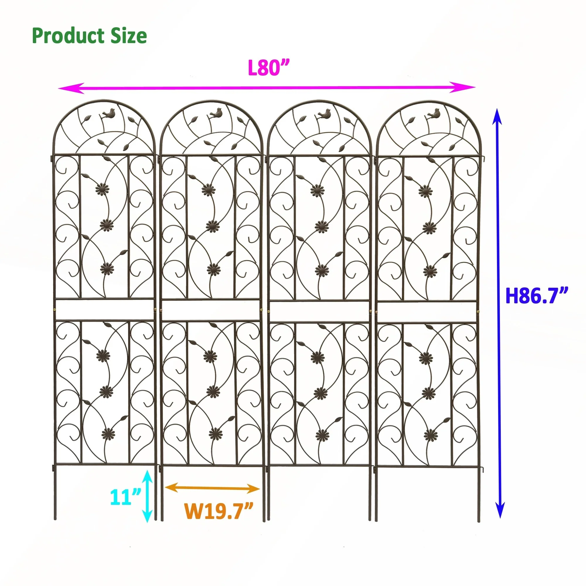 4 Pack Metal Garden Trellis 86.7in x 19.7in Rustproof Trellis