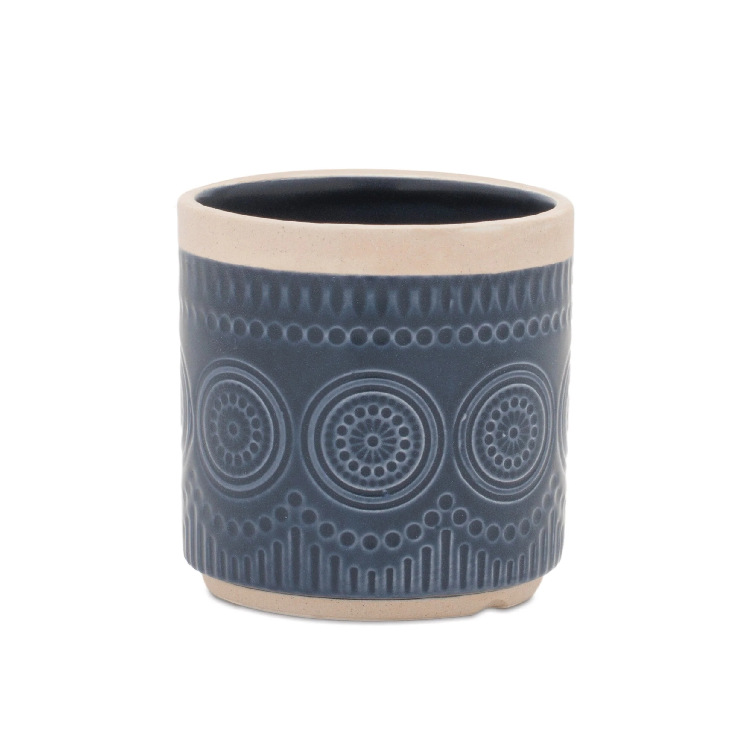 Ceramic Mandala Planter Set of 2 with Glazed Textured Design - 6�� x 5.95�� x 6�� (D x W x H)