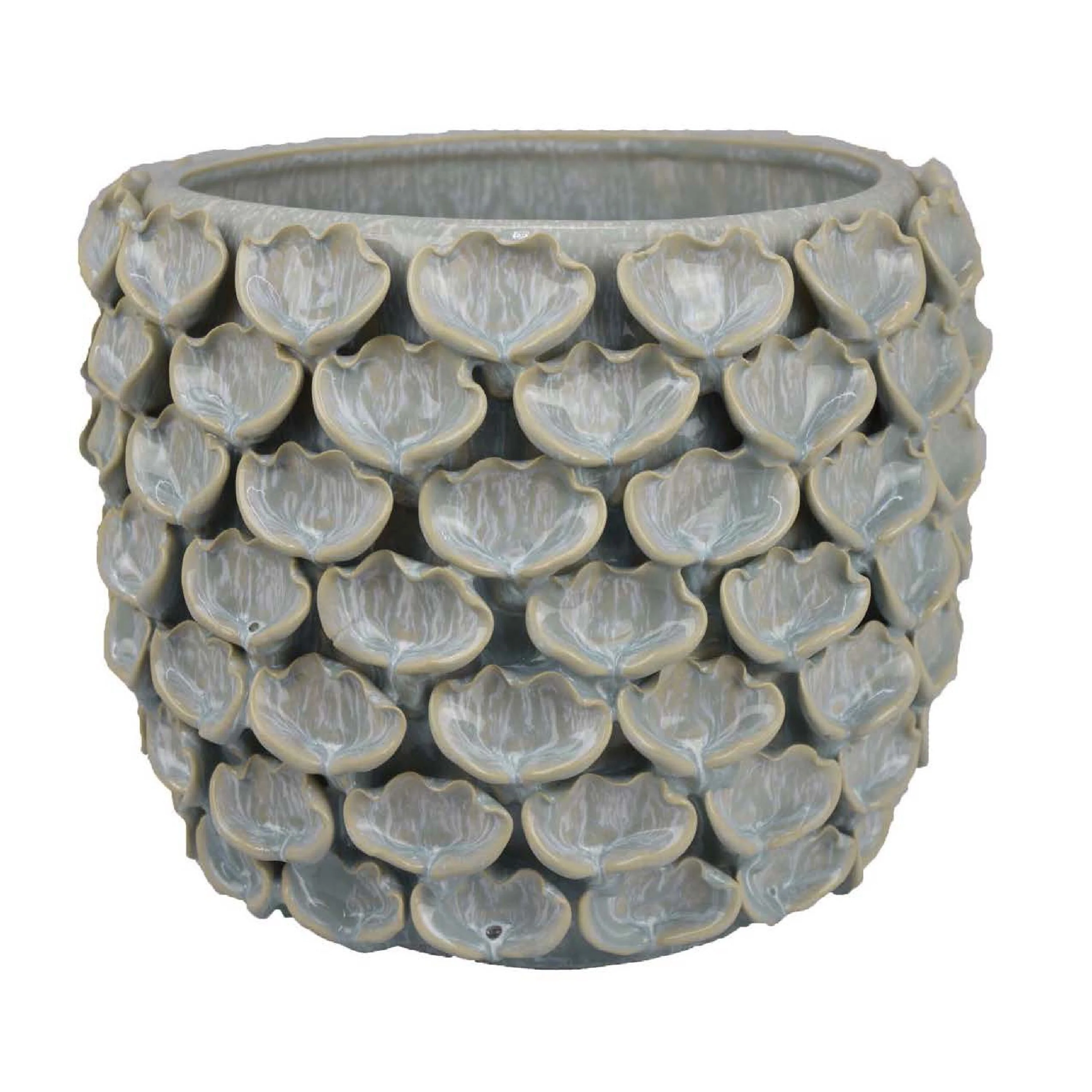 Decorative Textured Planter, Seashell Style 12 Inch Gray Ceramic Body