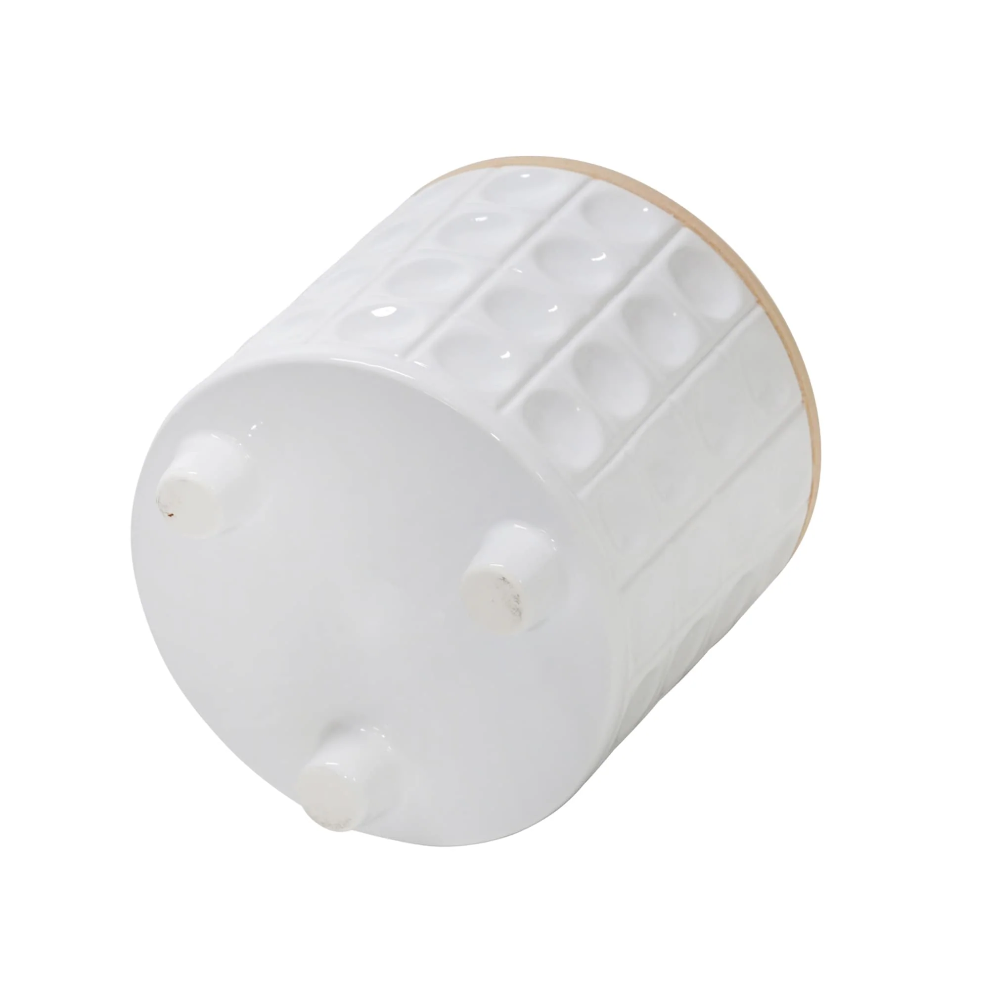 Ancient White Ceramic Planter Trio 10 Inch Cube Modern Minimalist Set with Drainage Hole