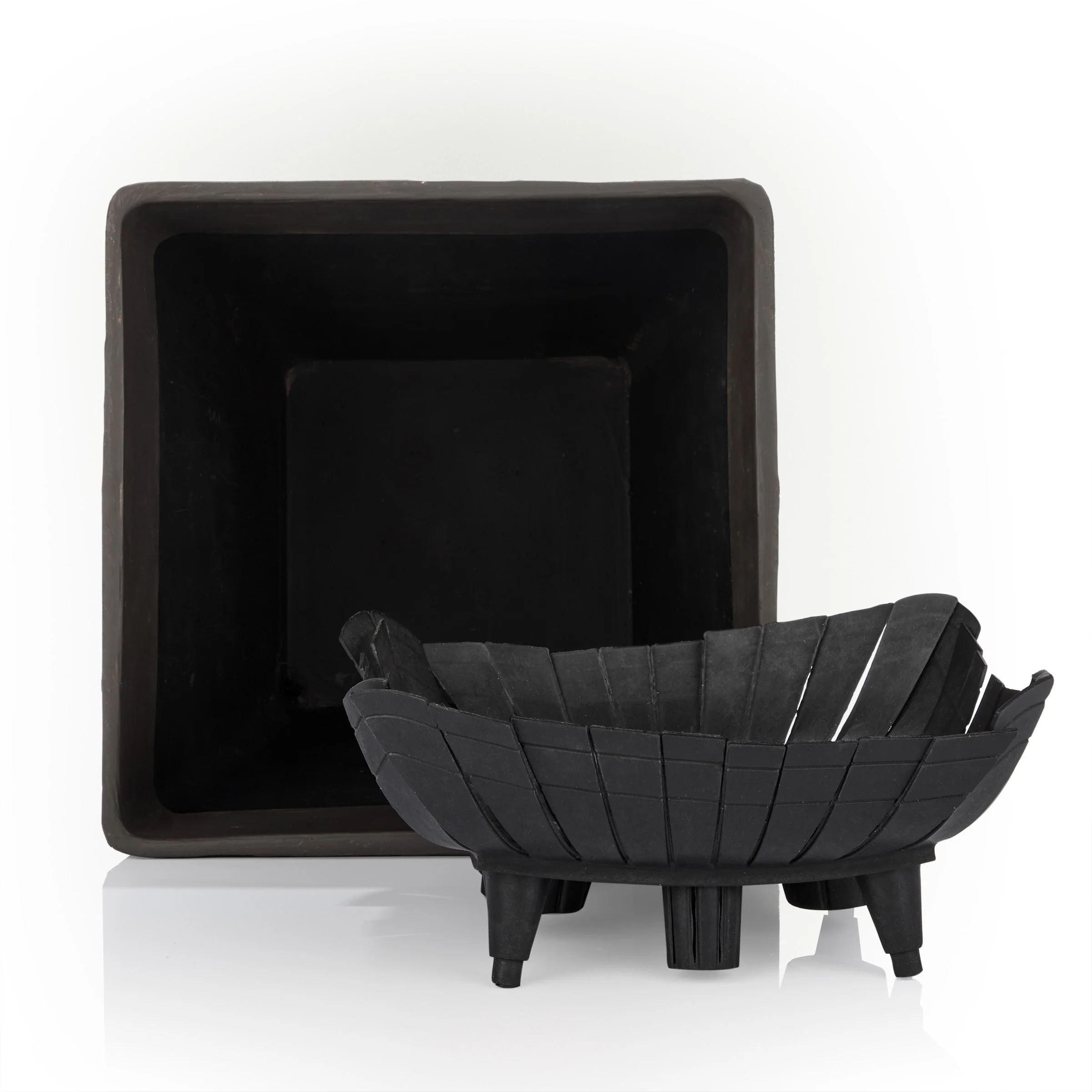 13" x 32.5" Outdoor Modern MGO Cast Stone Planter, Black