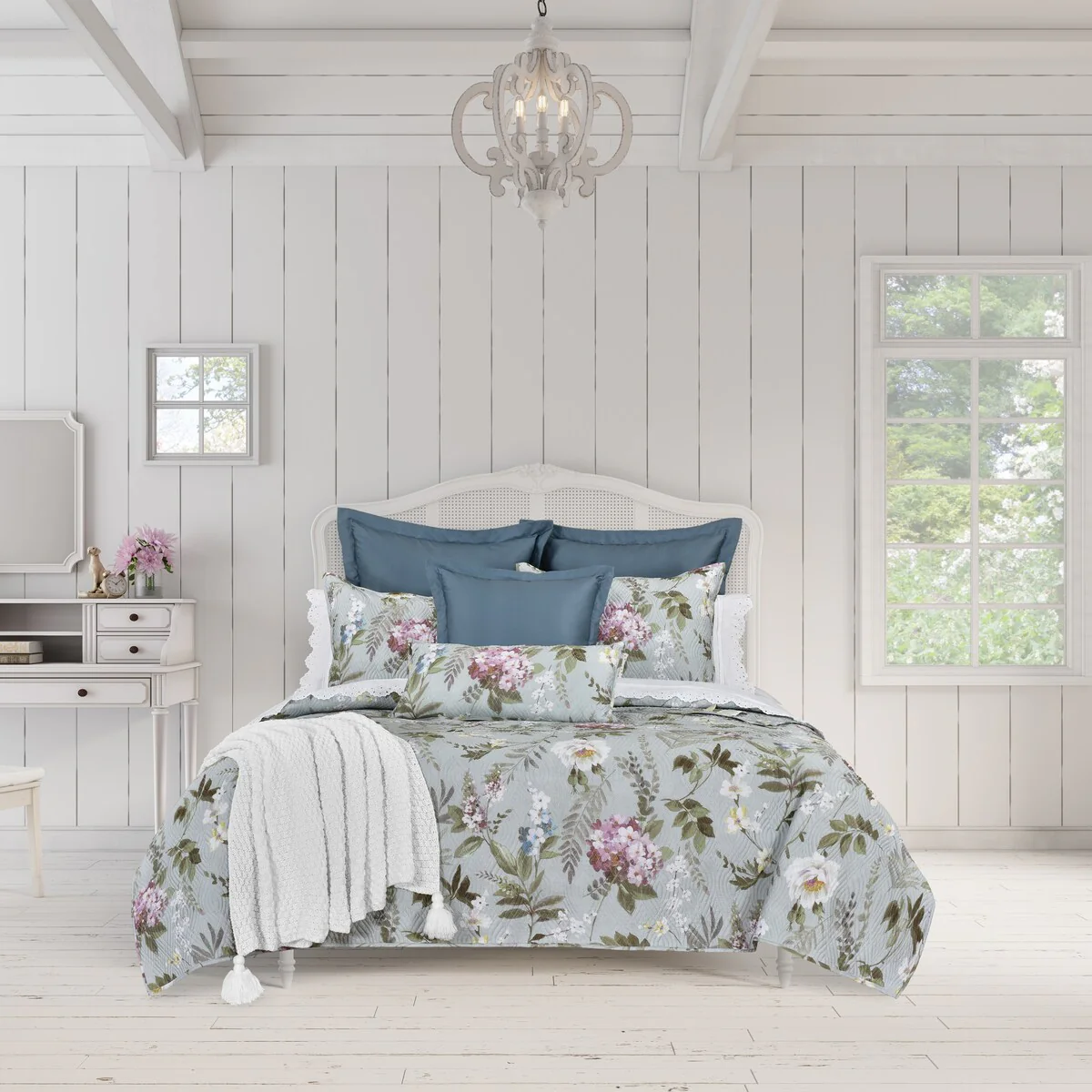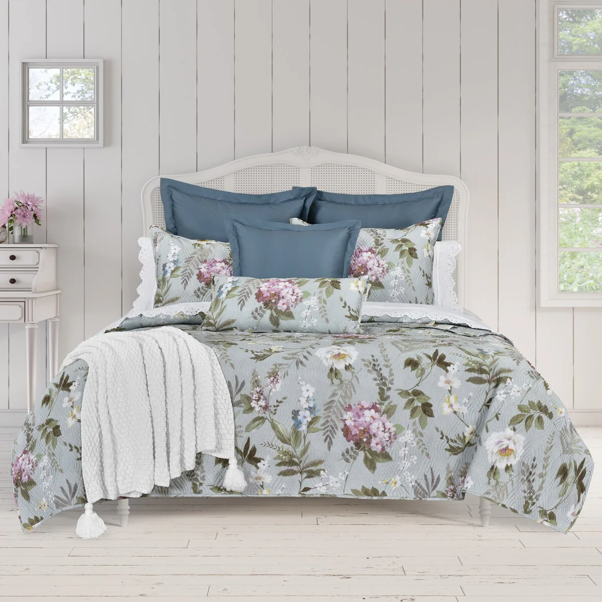Annie Floral Coverlet- Blue or Portabella
