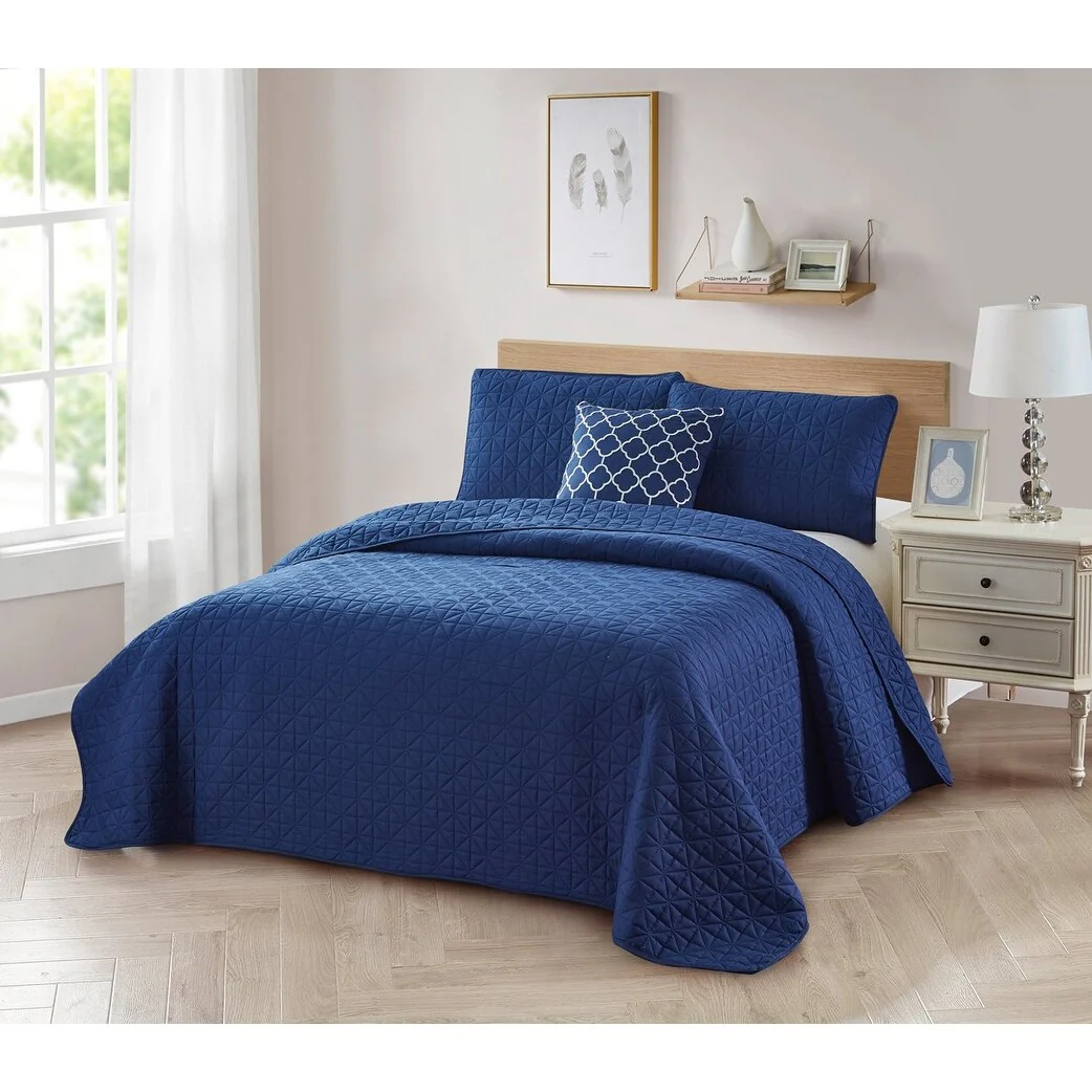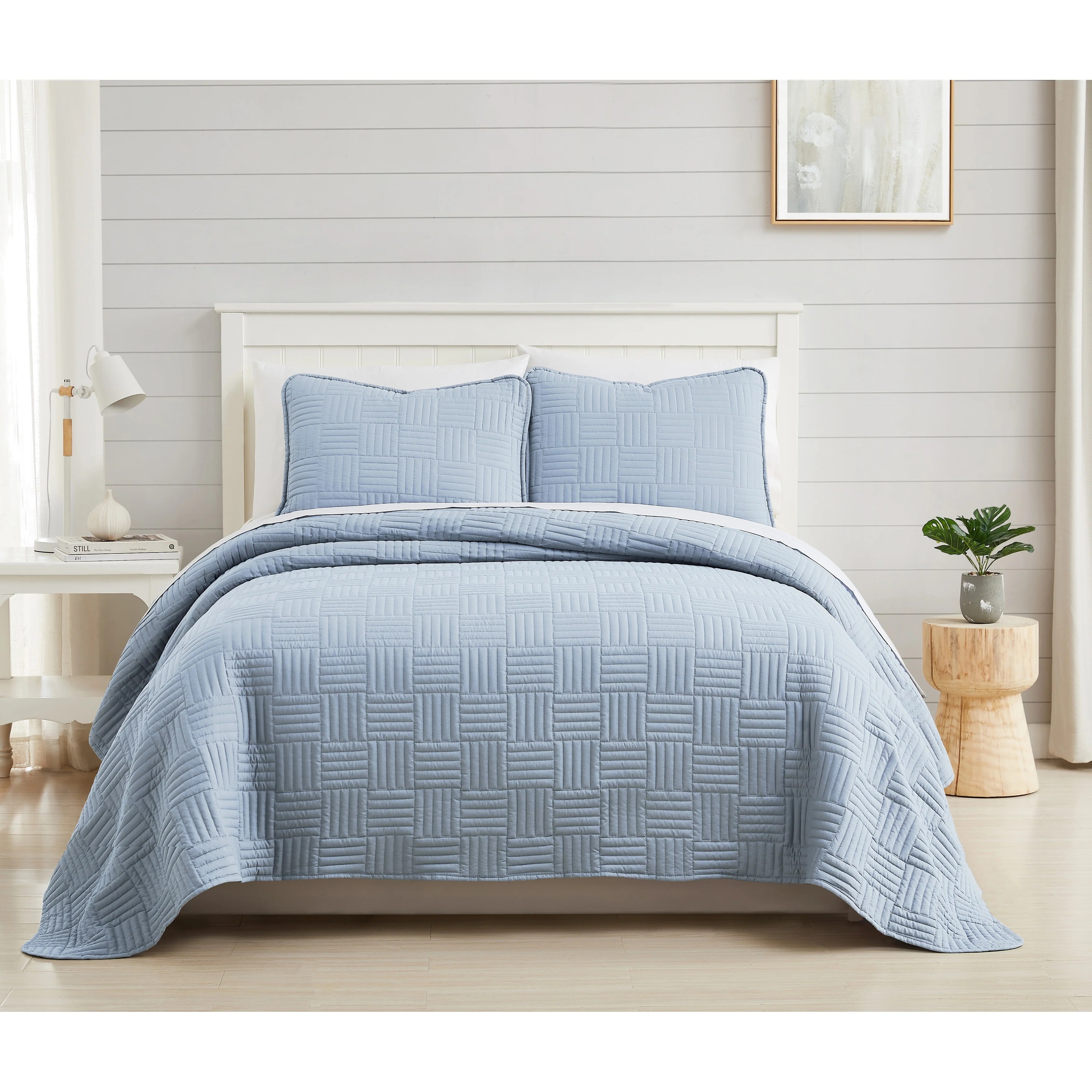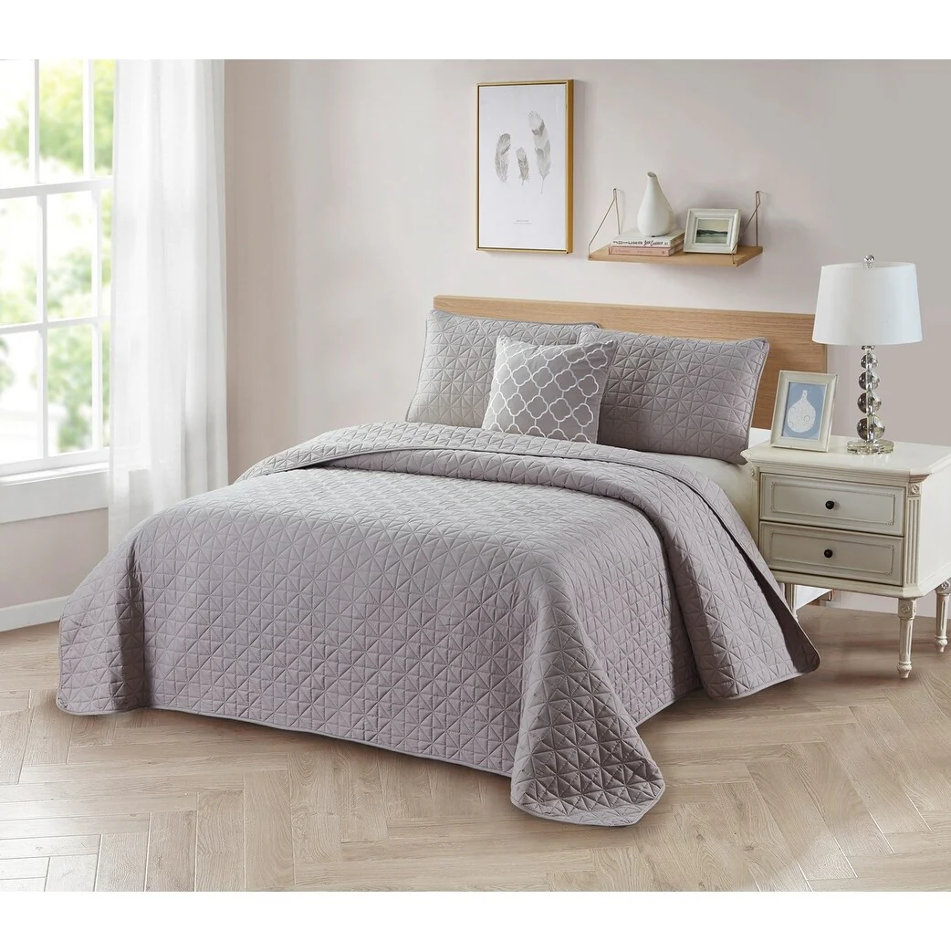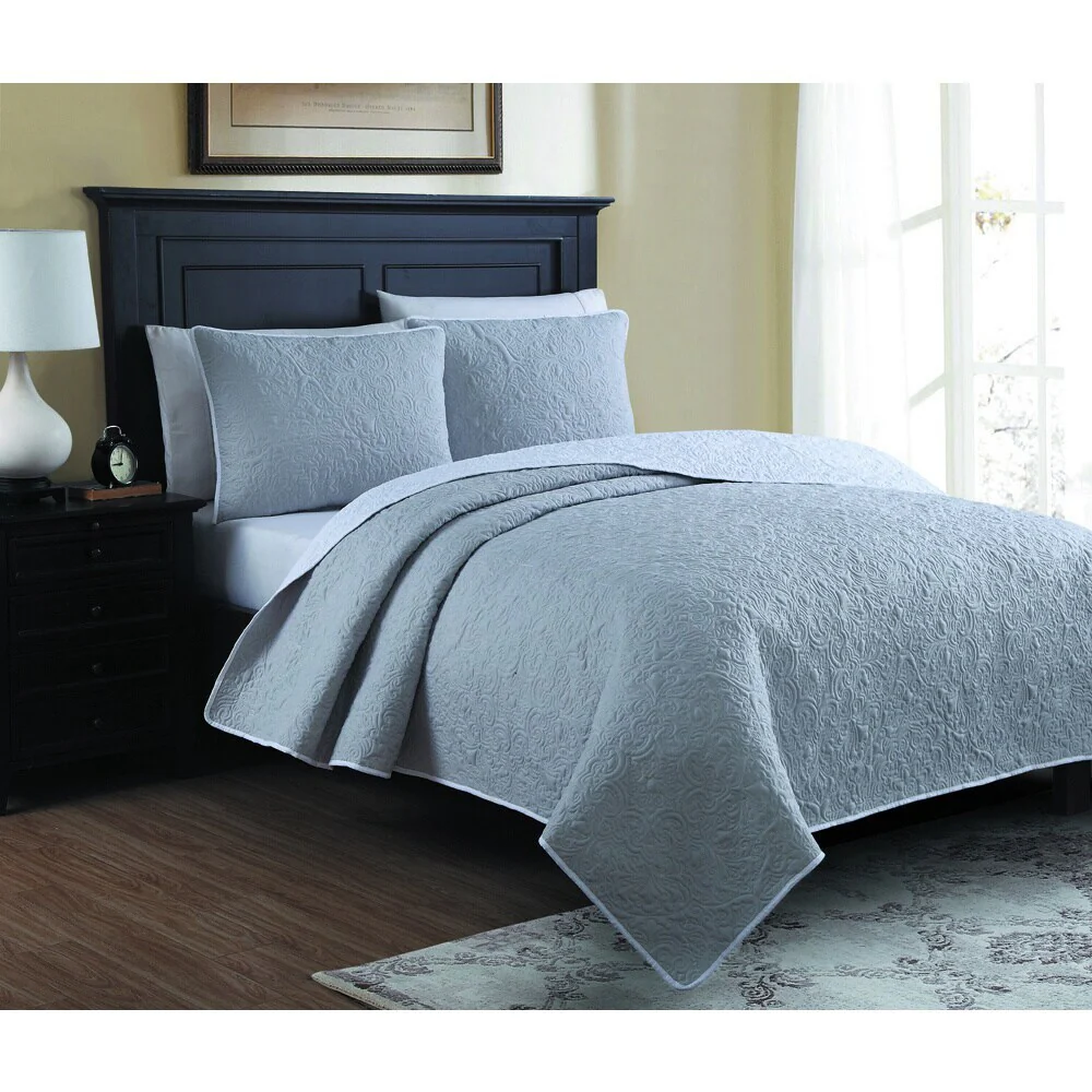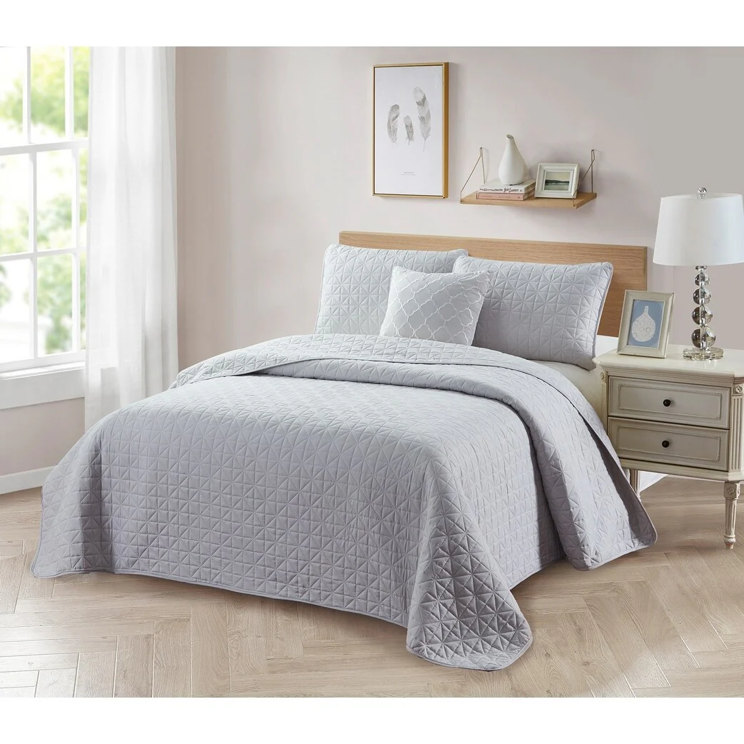 Southshore Fine Linens 3-peice Solid Grid Quilt and Sham Set