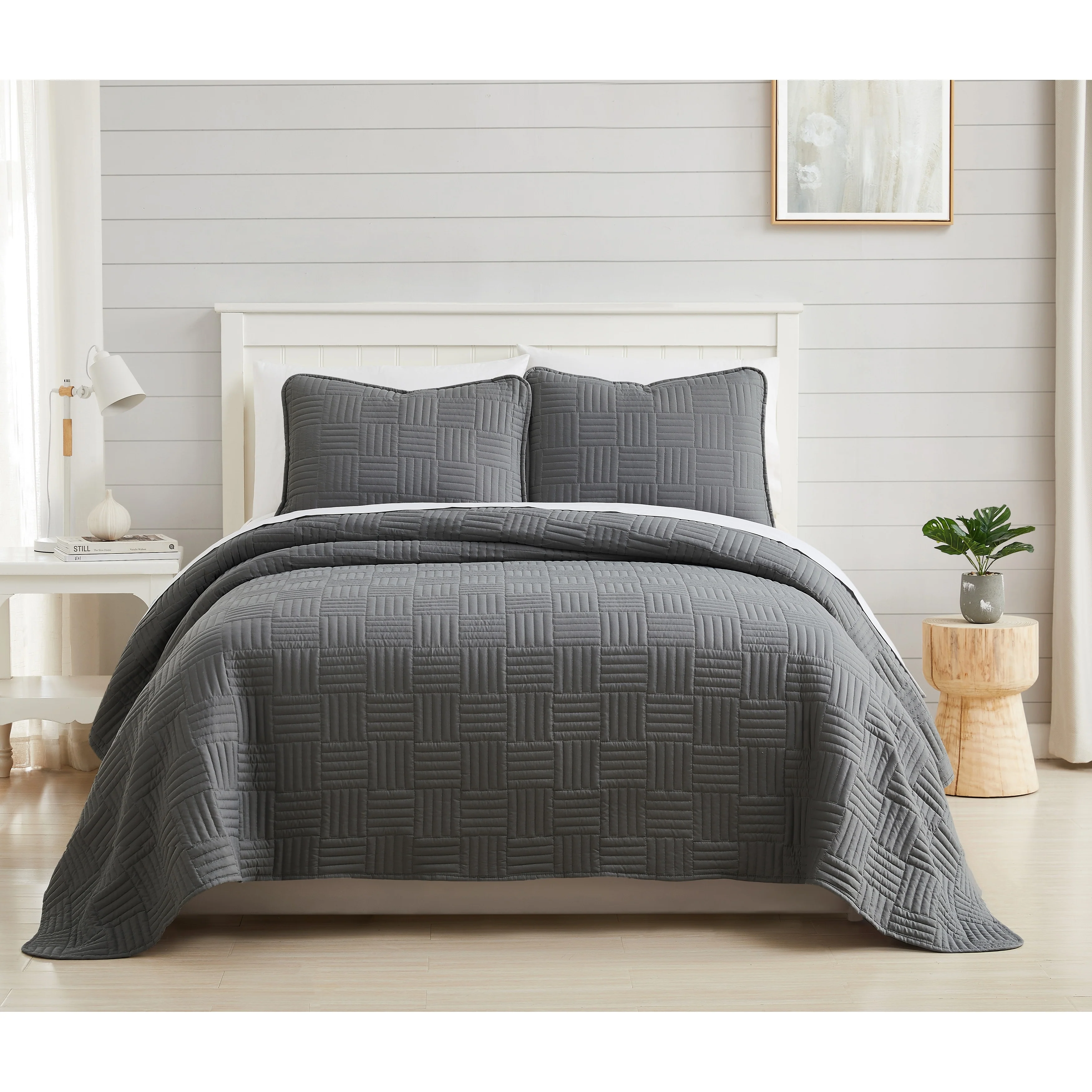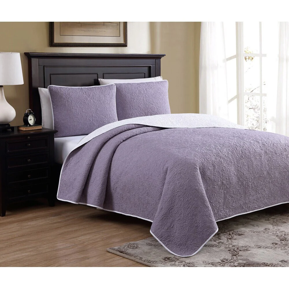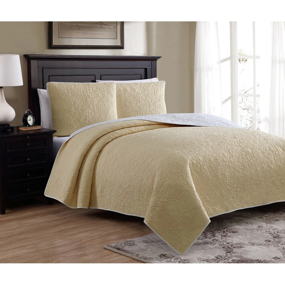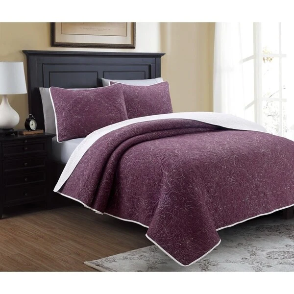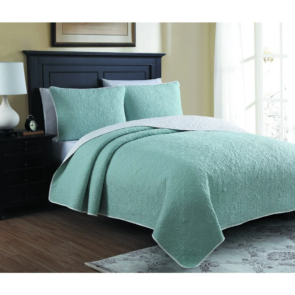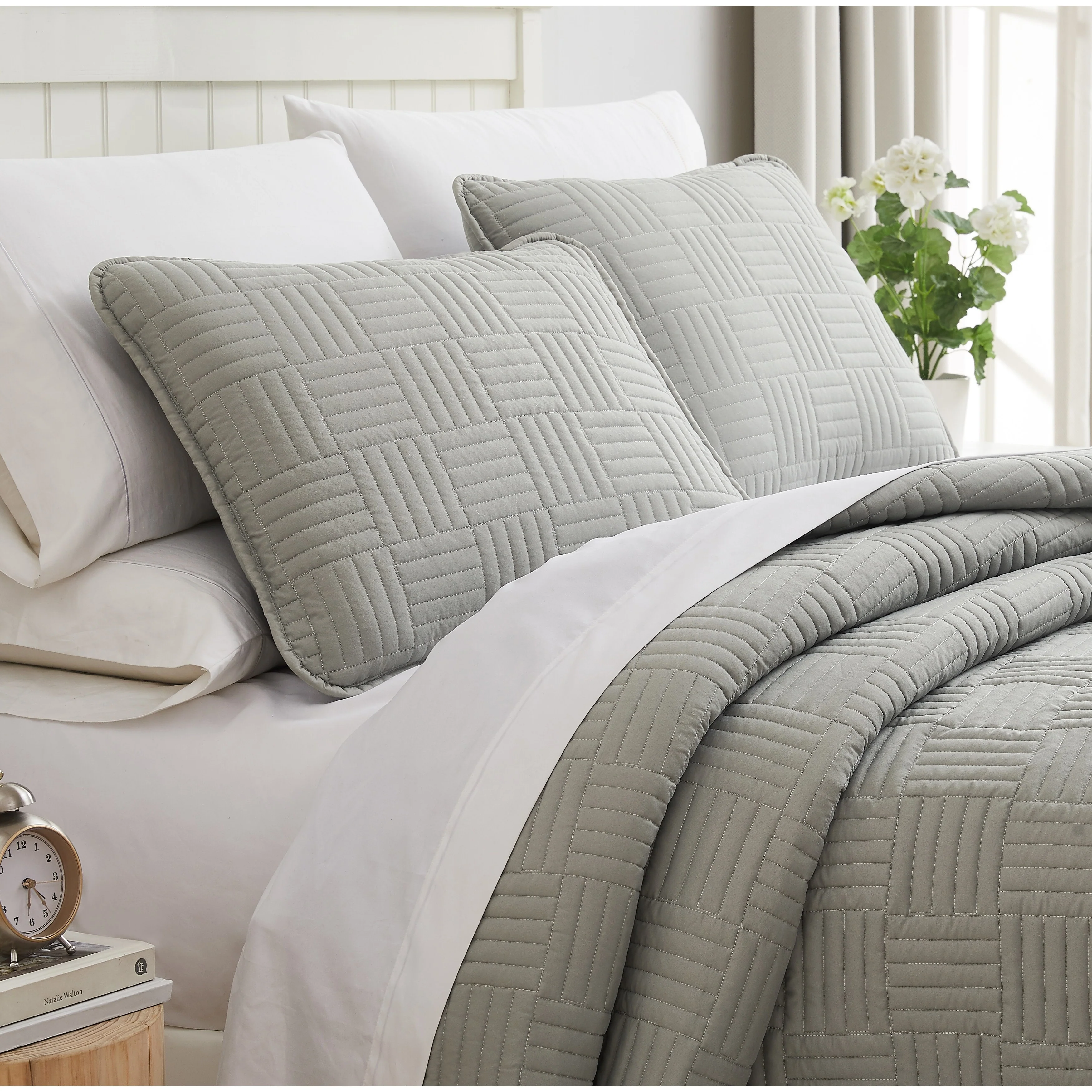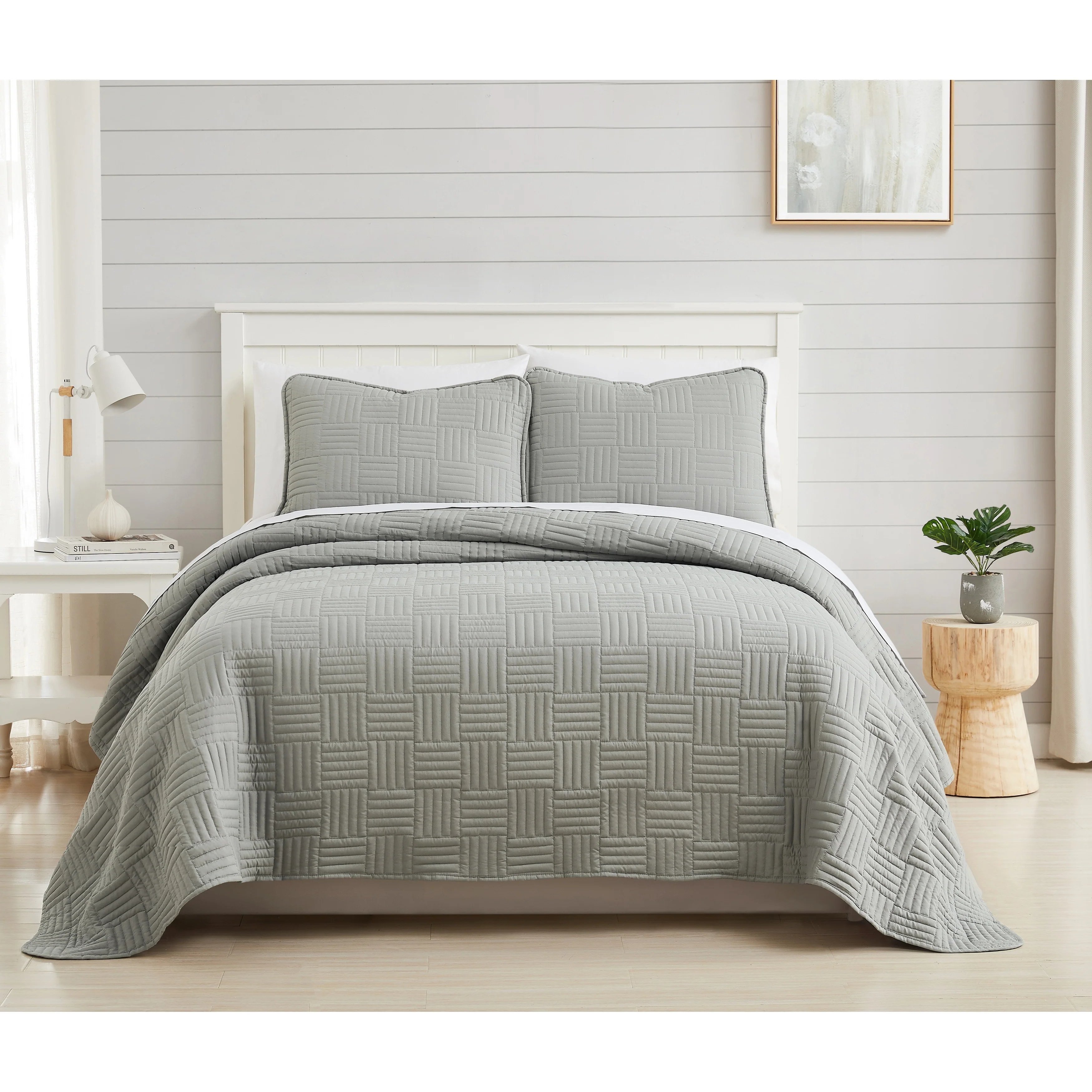 Southshore Fine Linens 3-peice Solid Grid Quilt and Sham Set