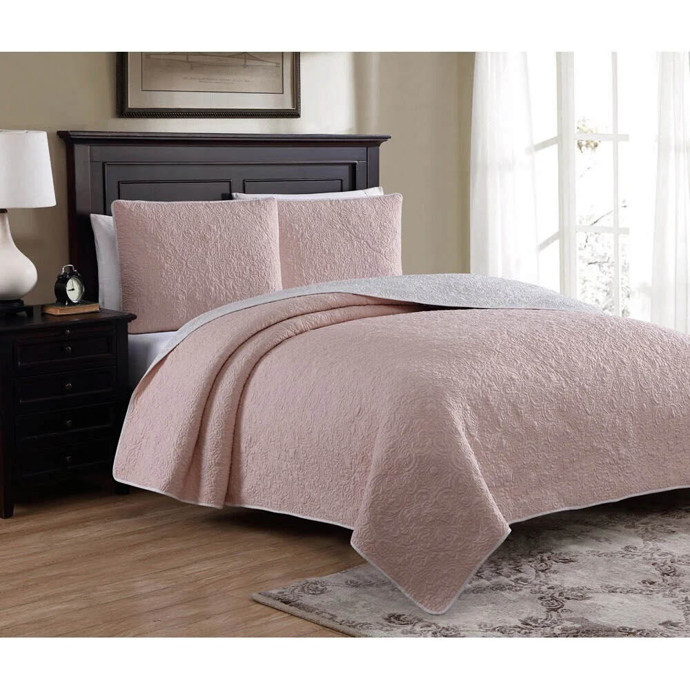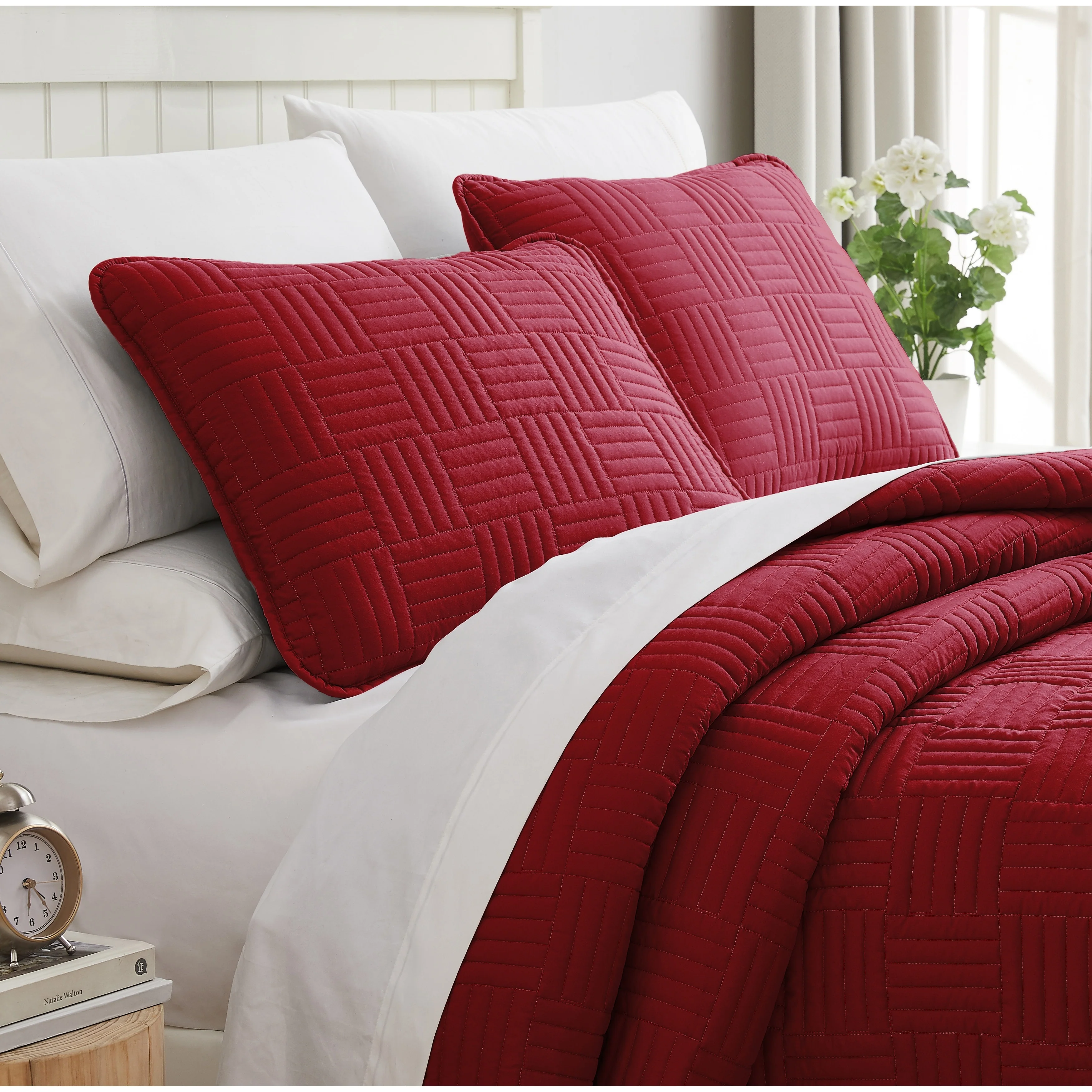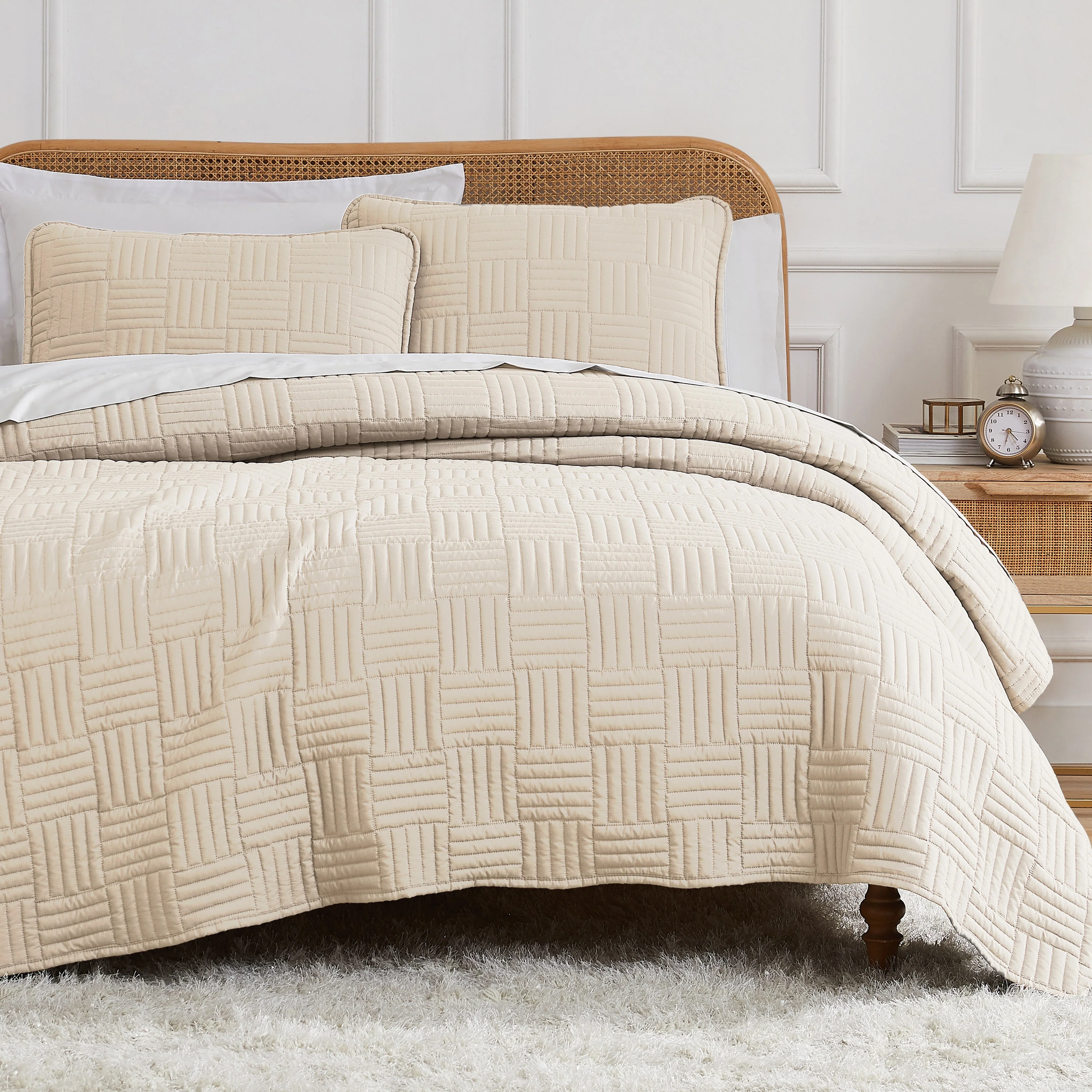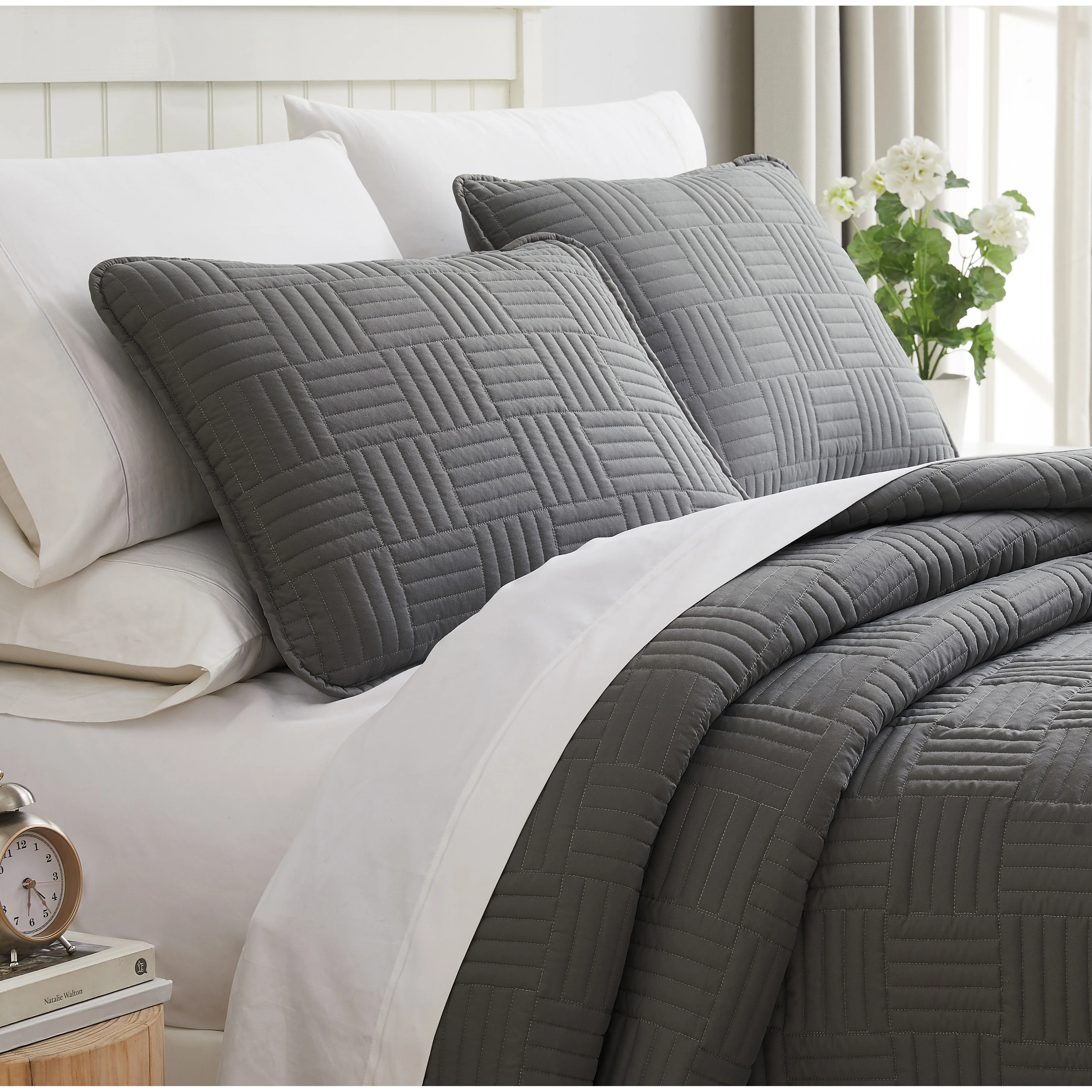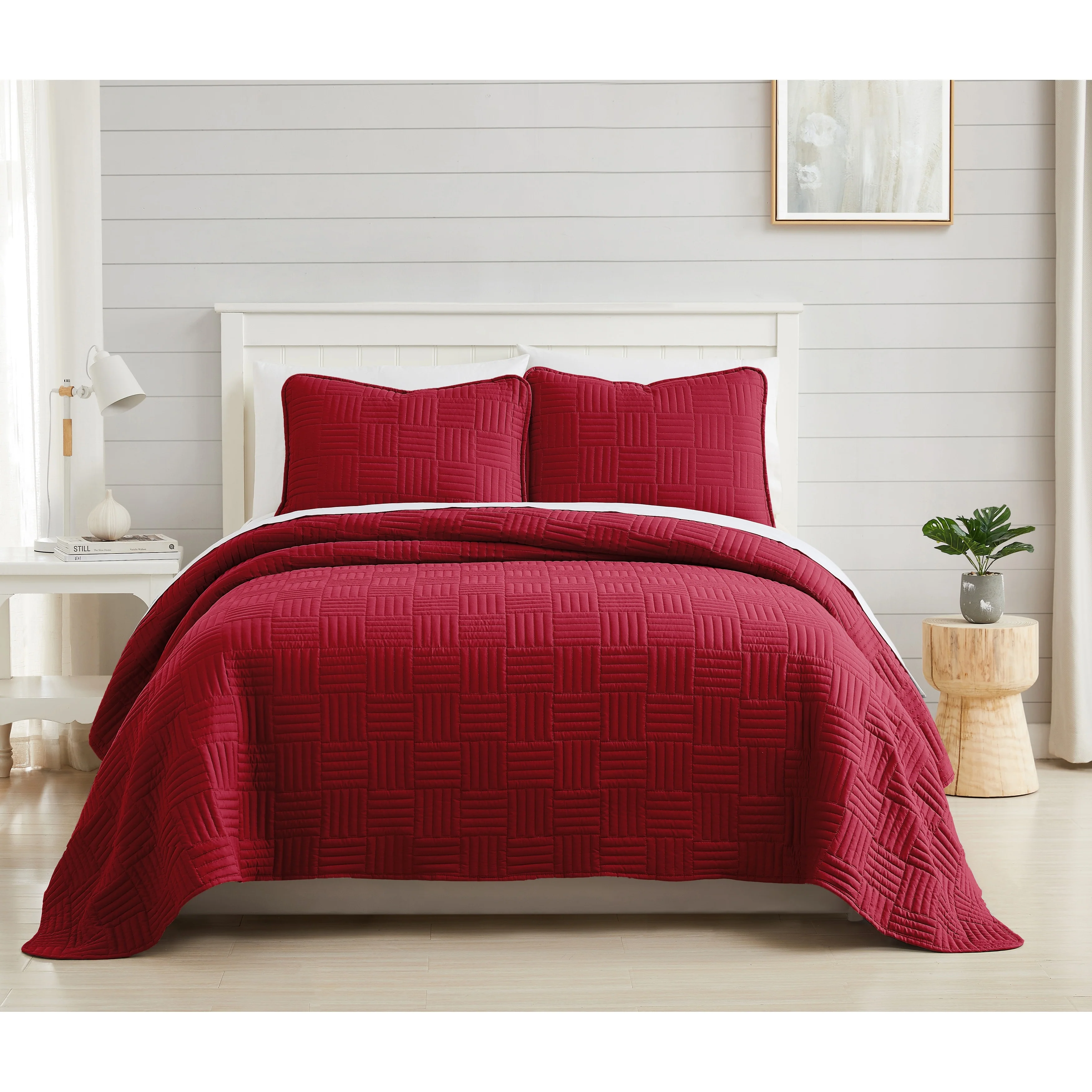 Southshore Fine Linens 3-peice Solid Grid Quilt and Sham Set