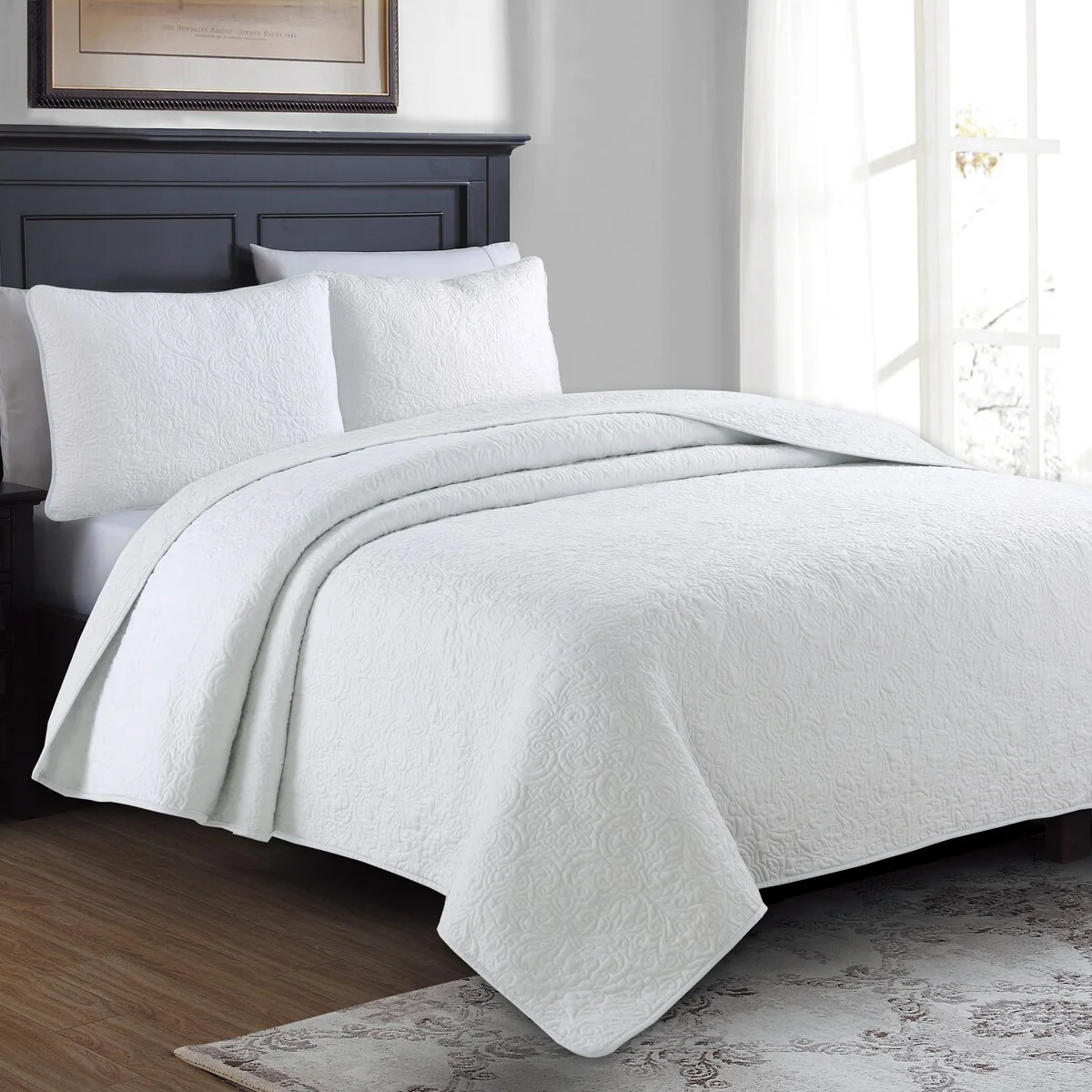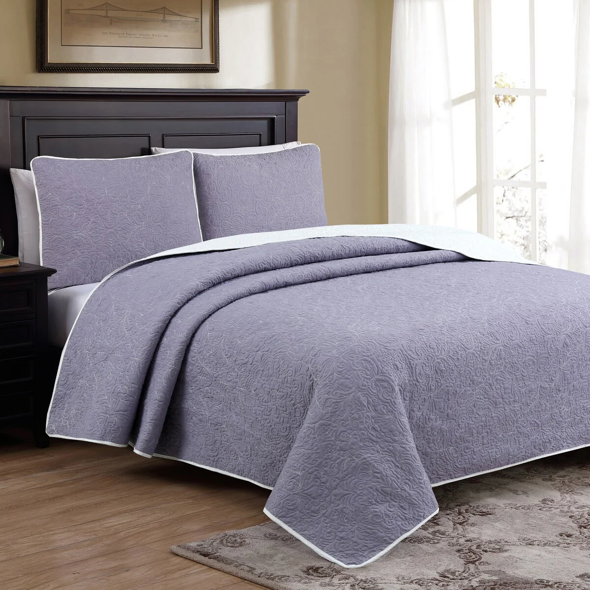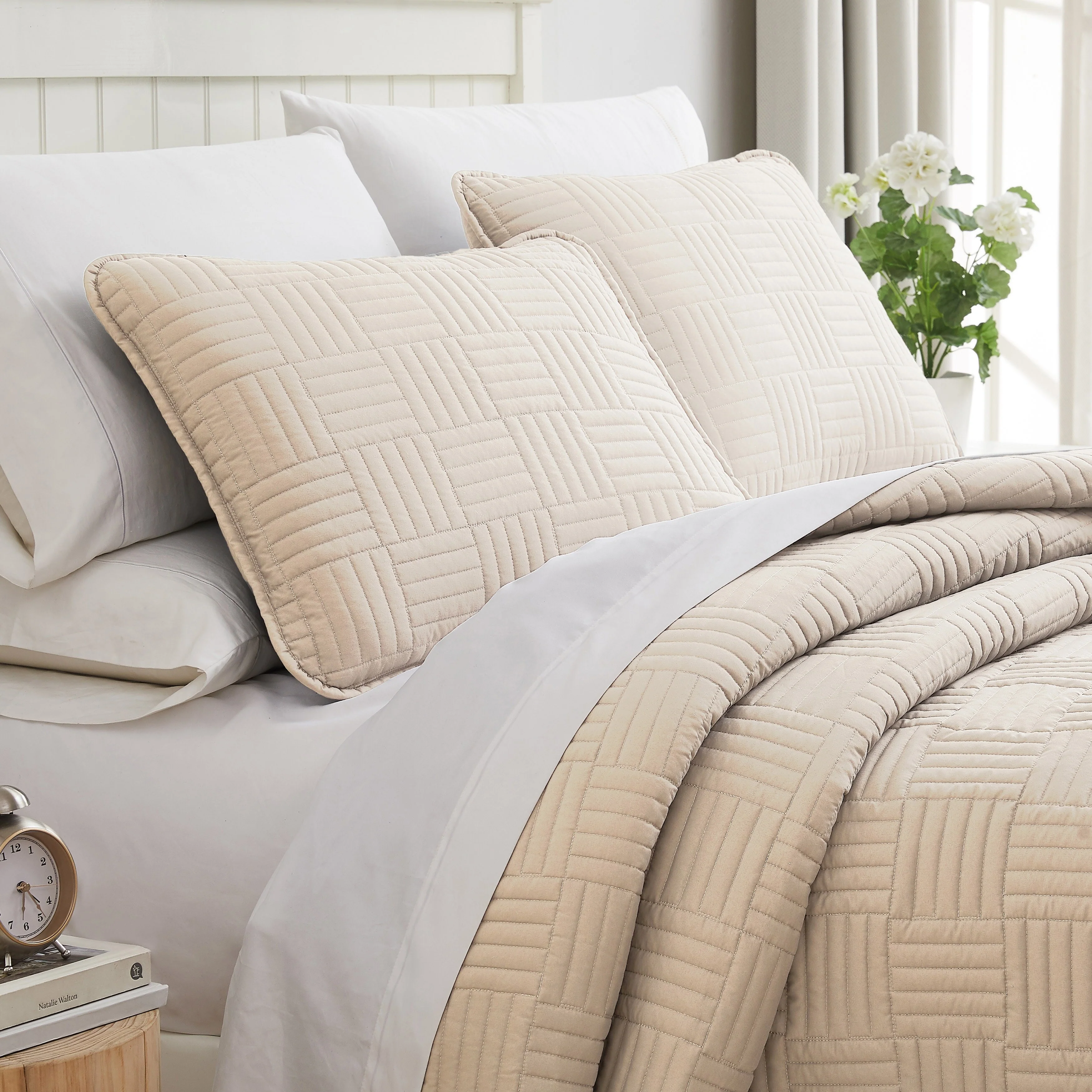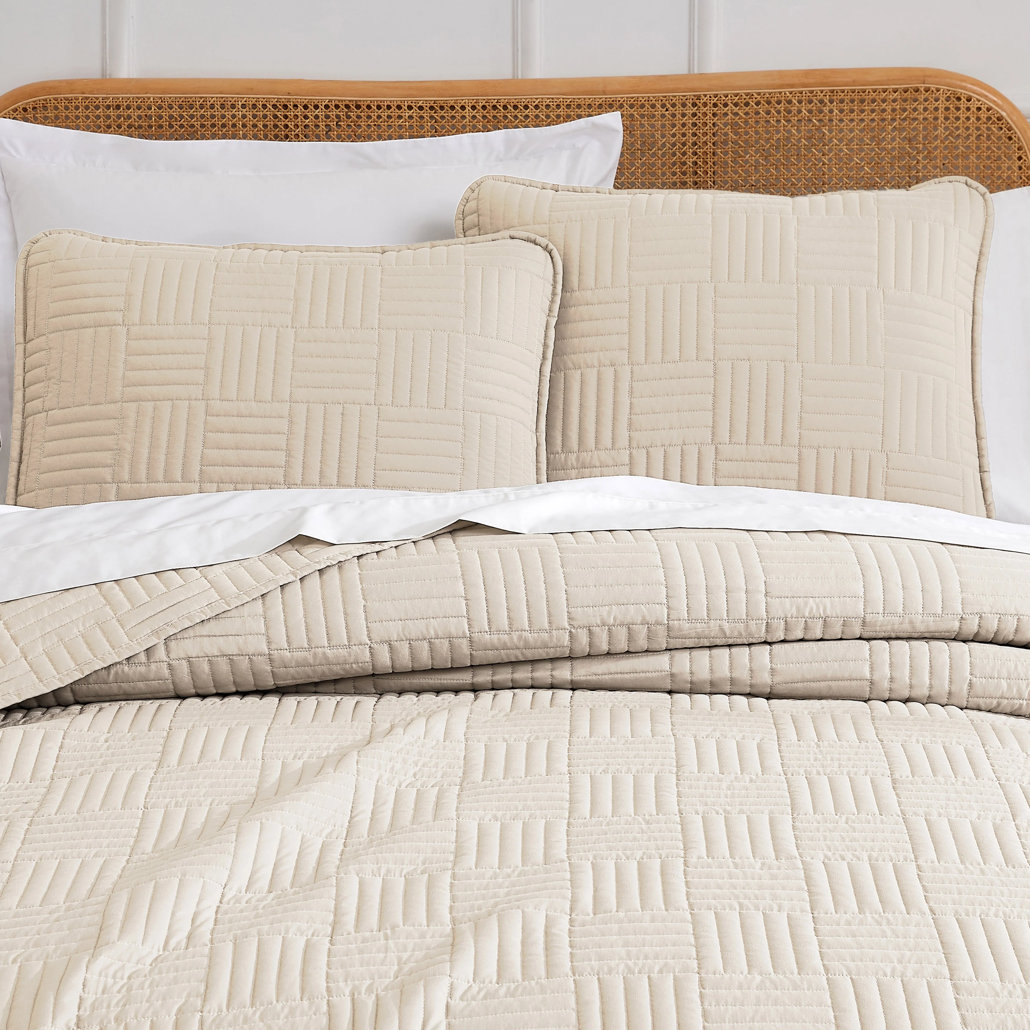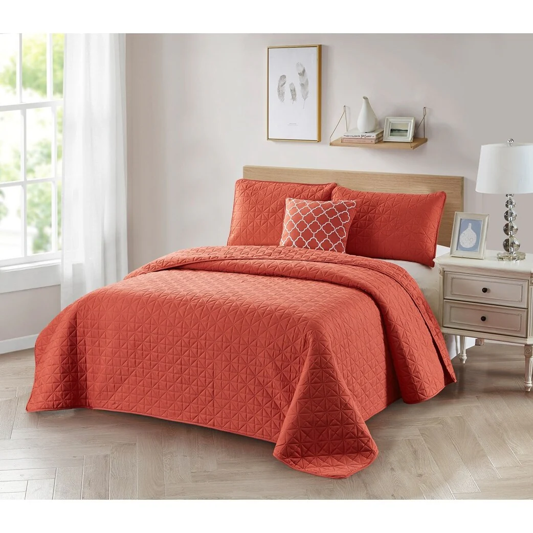 Southshore Fine Linens 3-peice Solid Grid Quilt and Sham Set