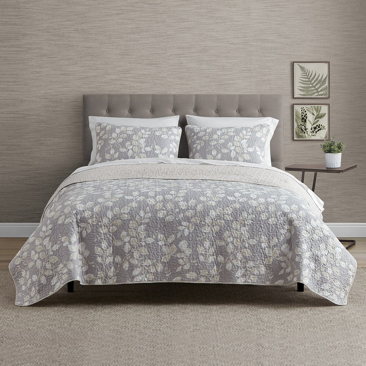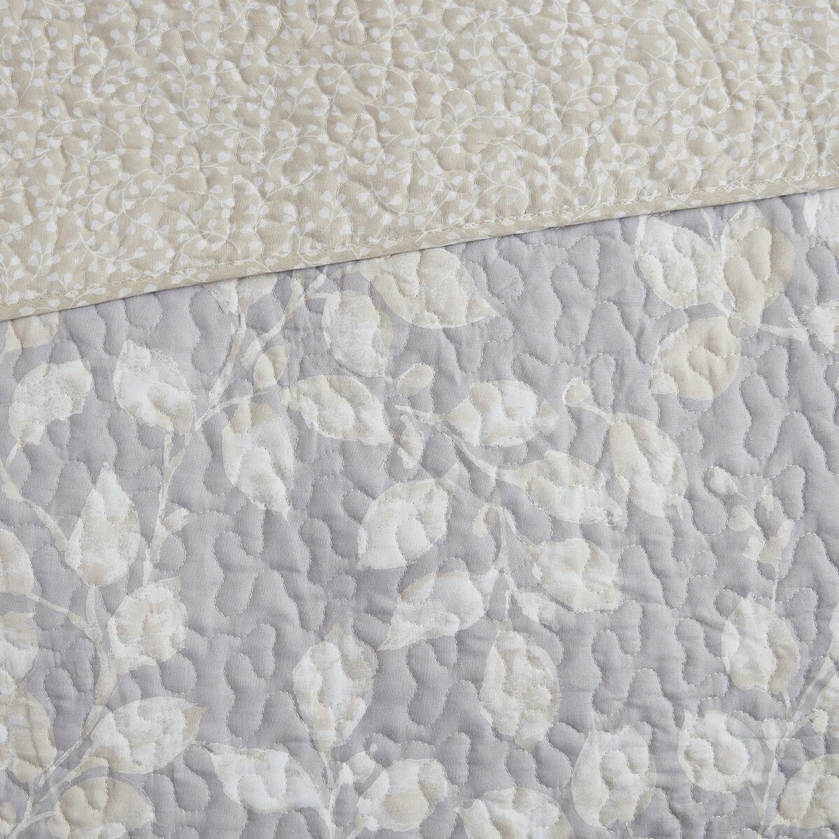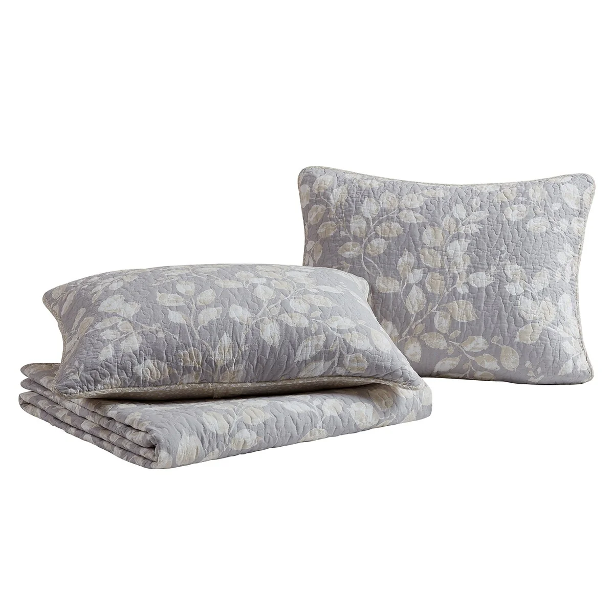 DESIGN STUDIO Camden Leaves Grey/Neutral Cotton Quilt Set