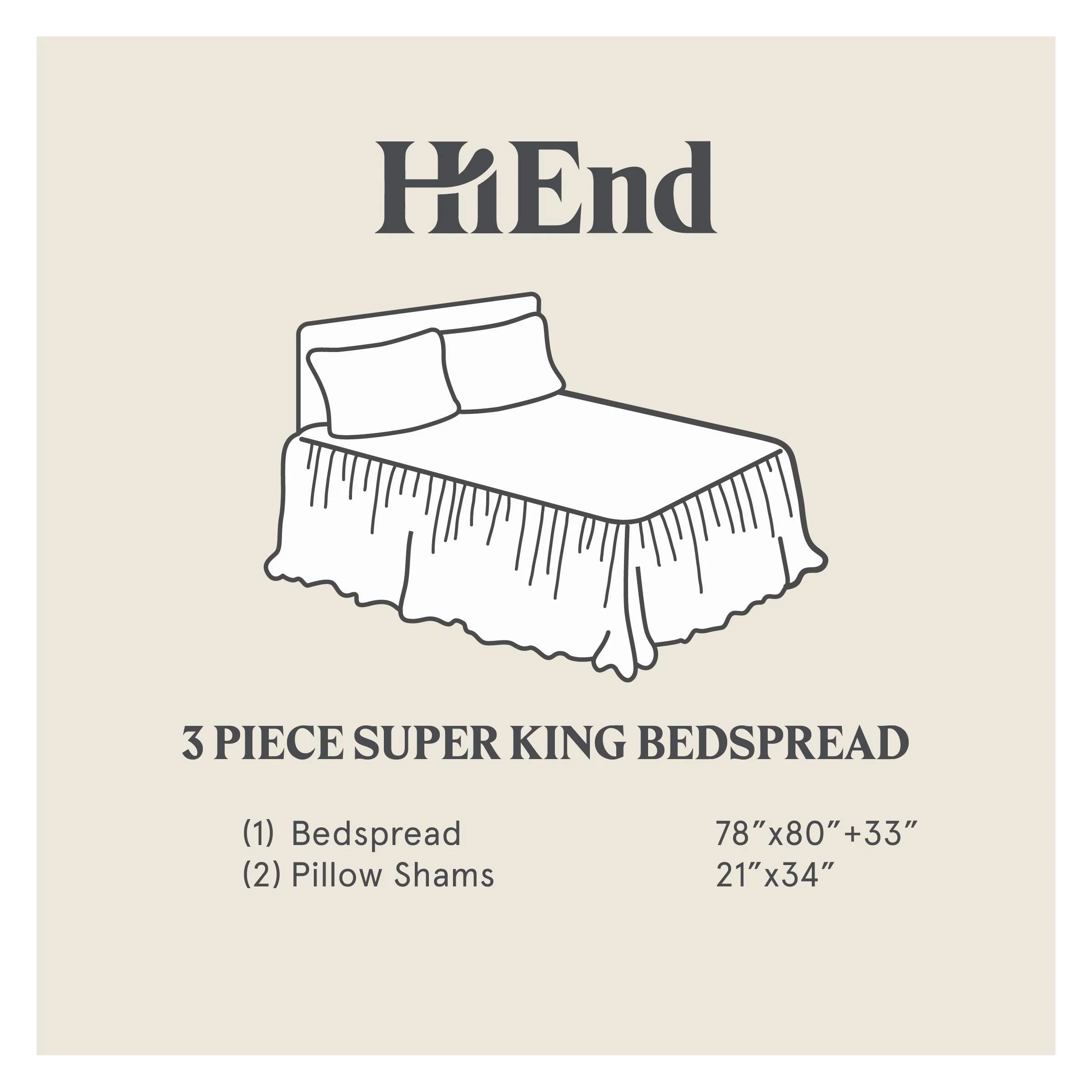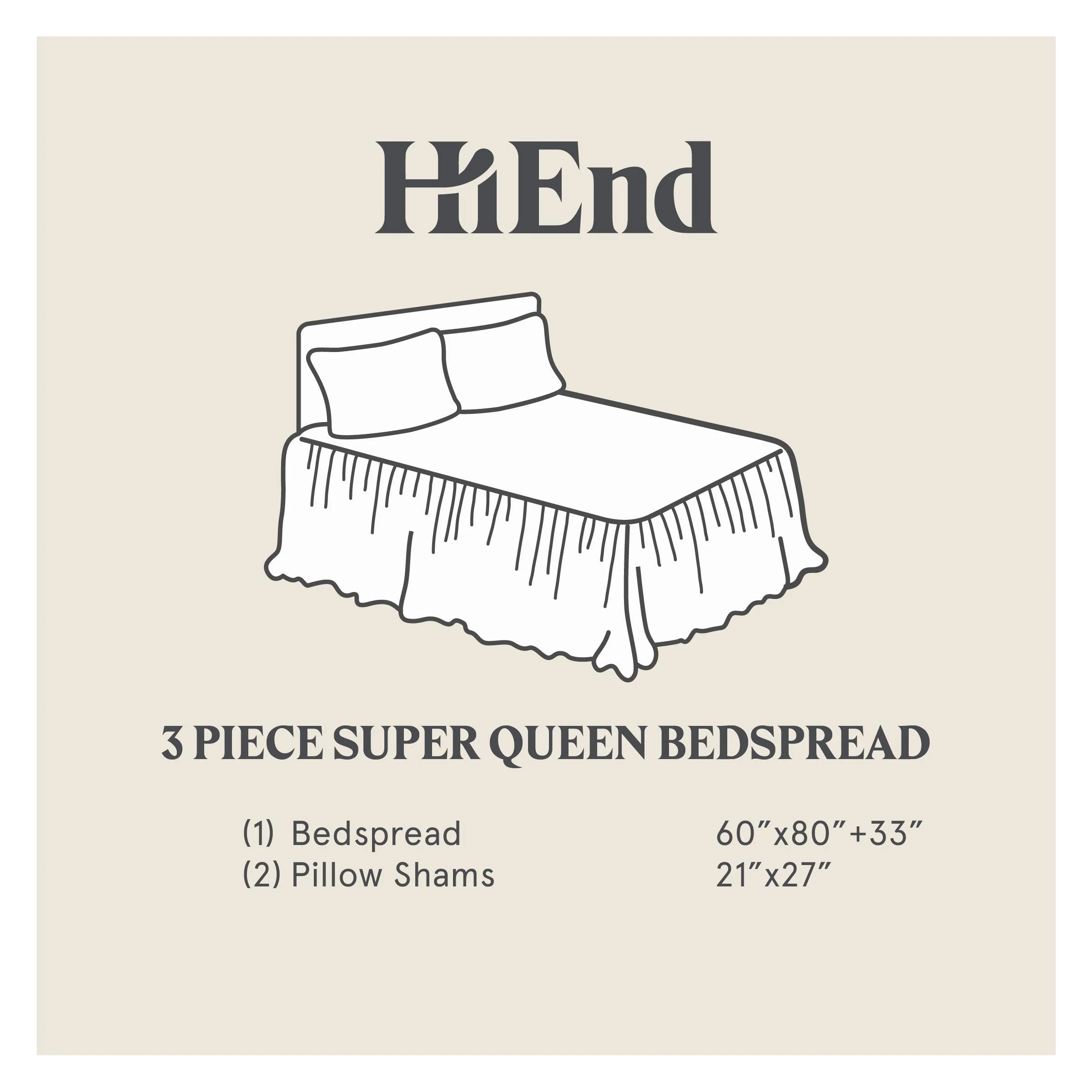 HiEnd Accents Stella Faux Silk Velvet Ruffle Skirt 3 Piece Bedspread Set with Pillow Shams
