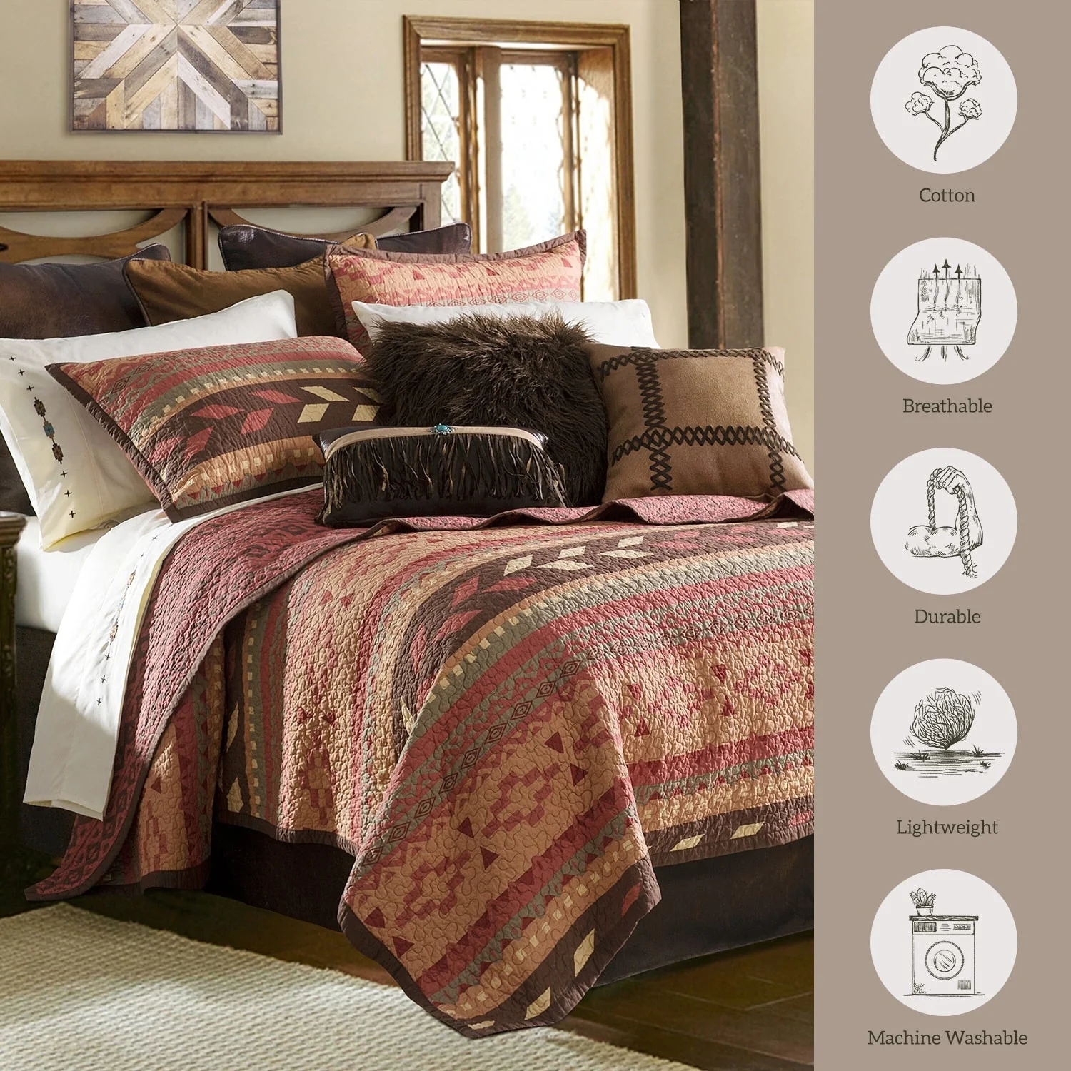 Paseo Road Broken Arrow Western Bedding Tribal Aztec 3 Piece Reversible Quilt Set