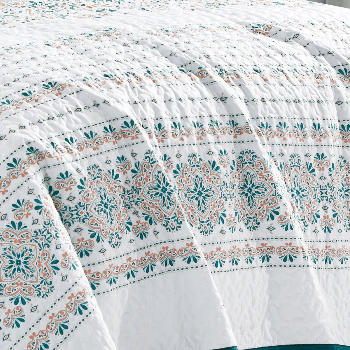 Luxurious Pastel Coral Pattern Microfiber Quilt Set With Shams