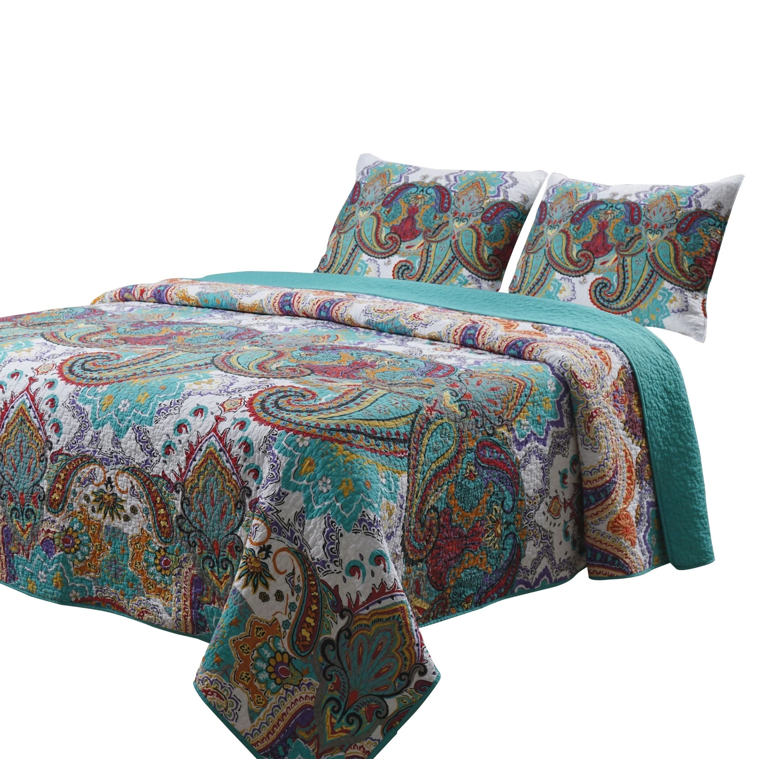 Greenland Home Fashions Medina 100% Cotton Reversible Paisley Quilt Set