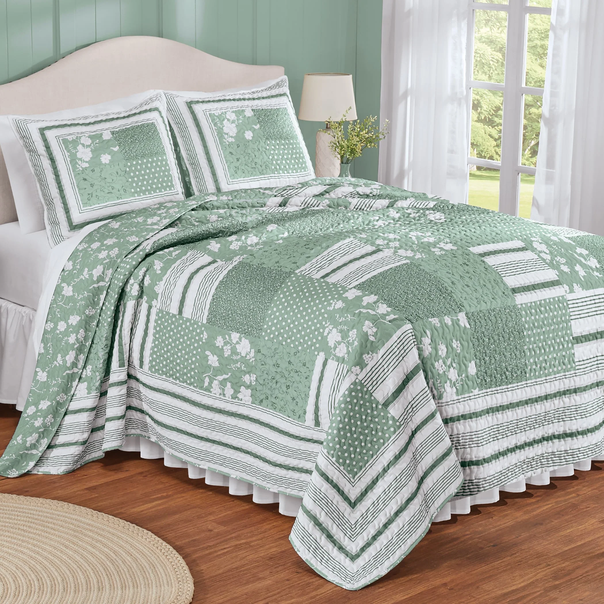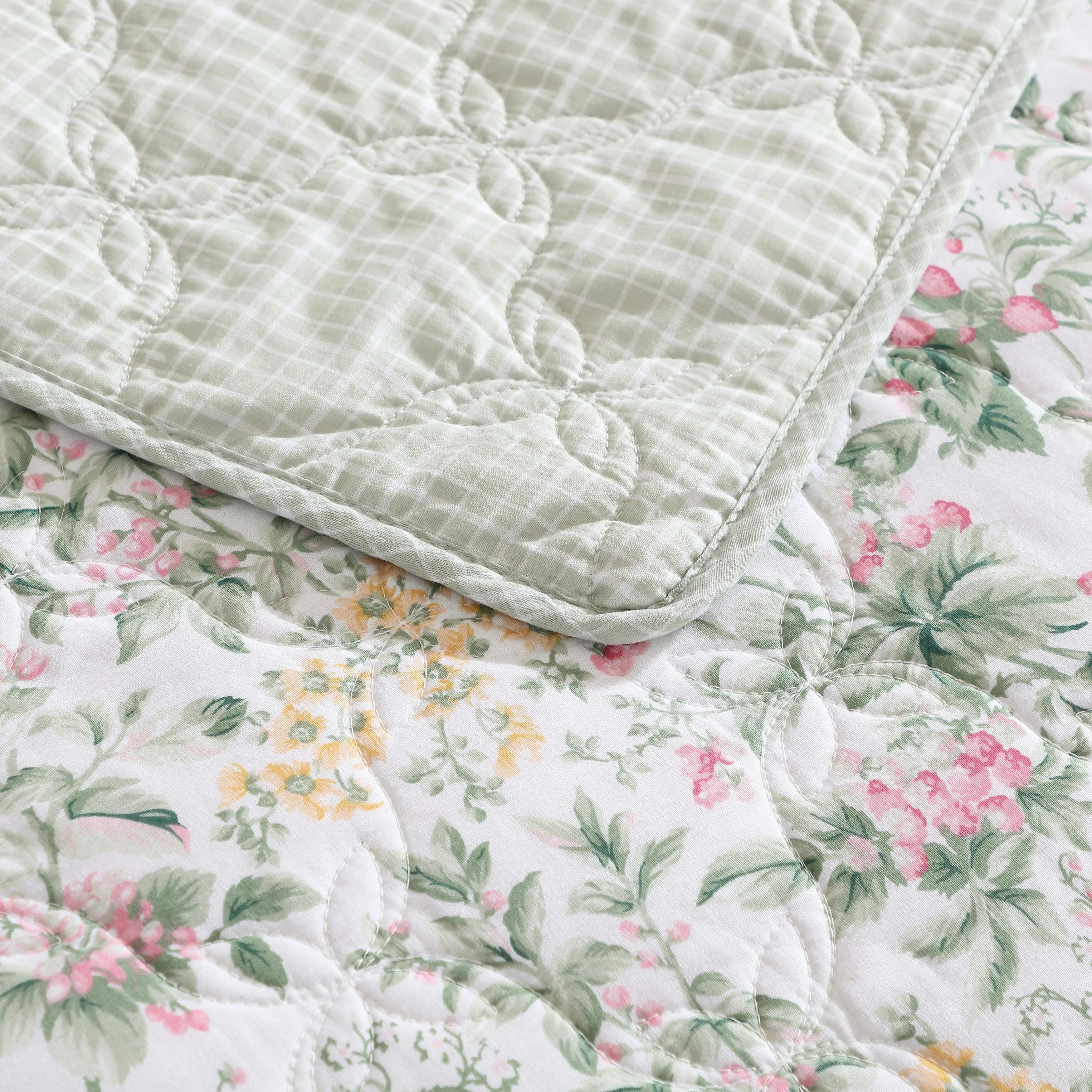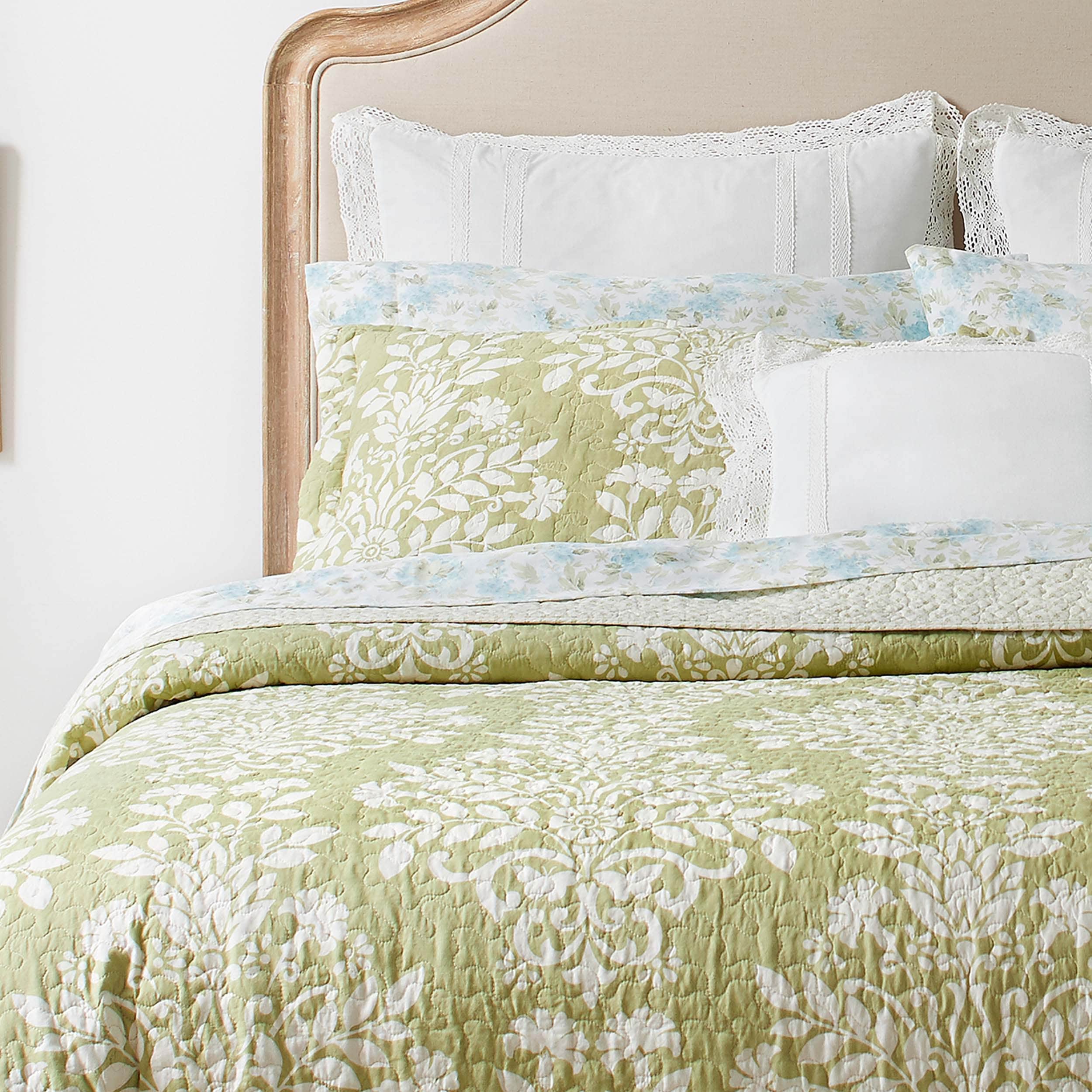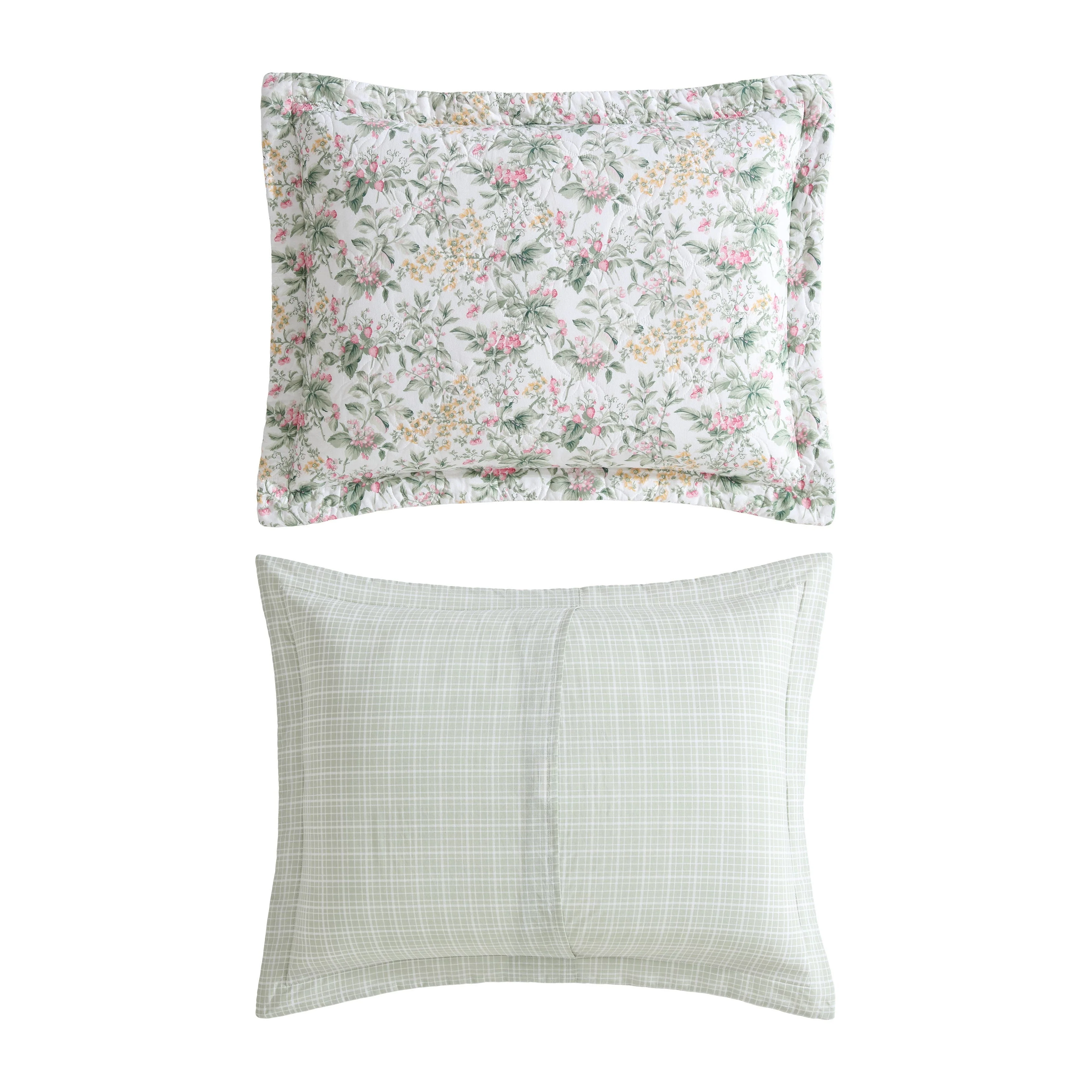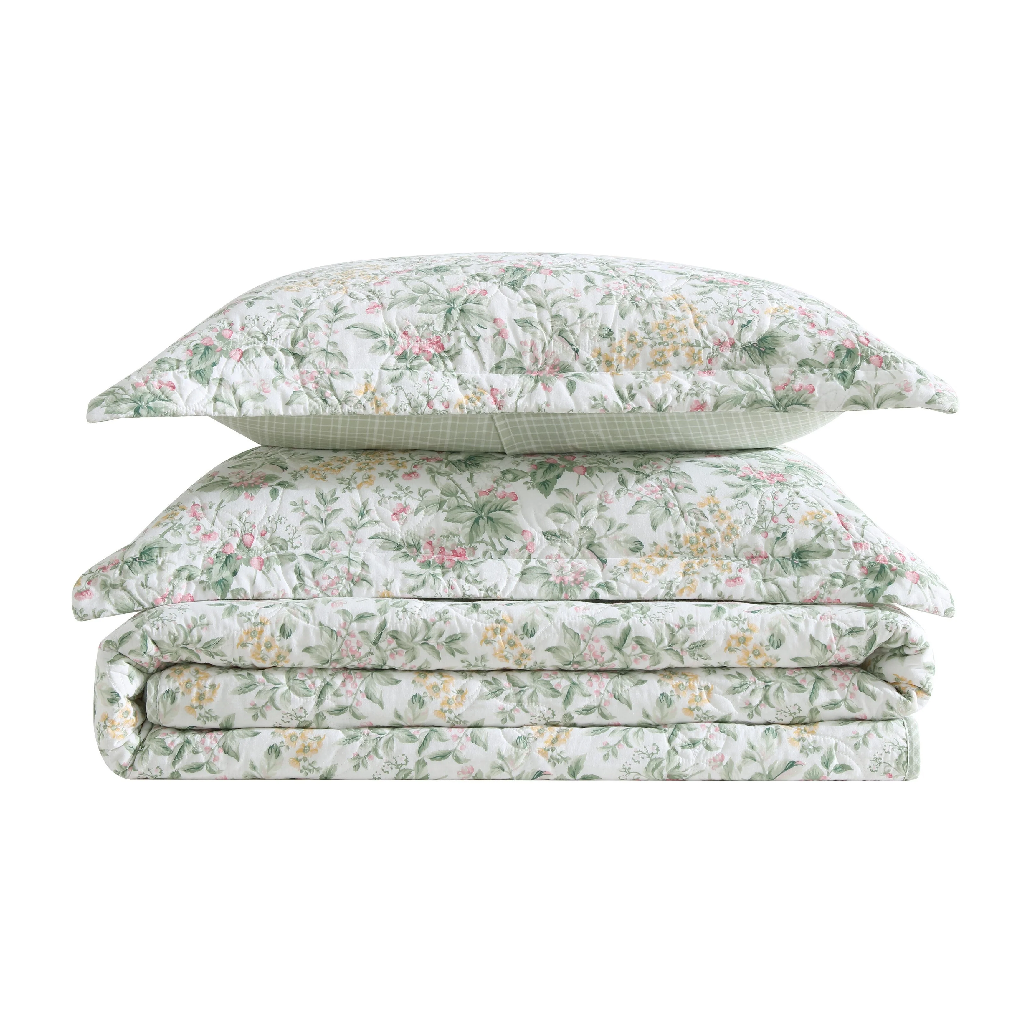 Laura Ashley Rowland Cotton Reversible Green Quilt Set