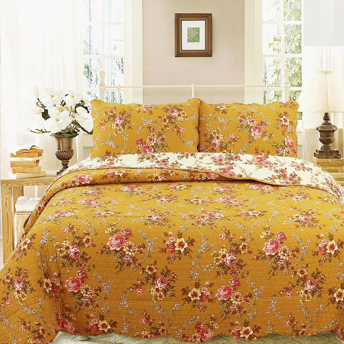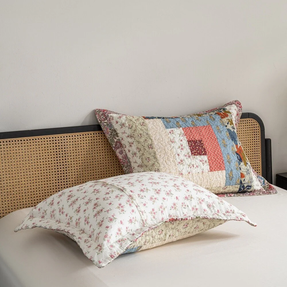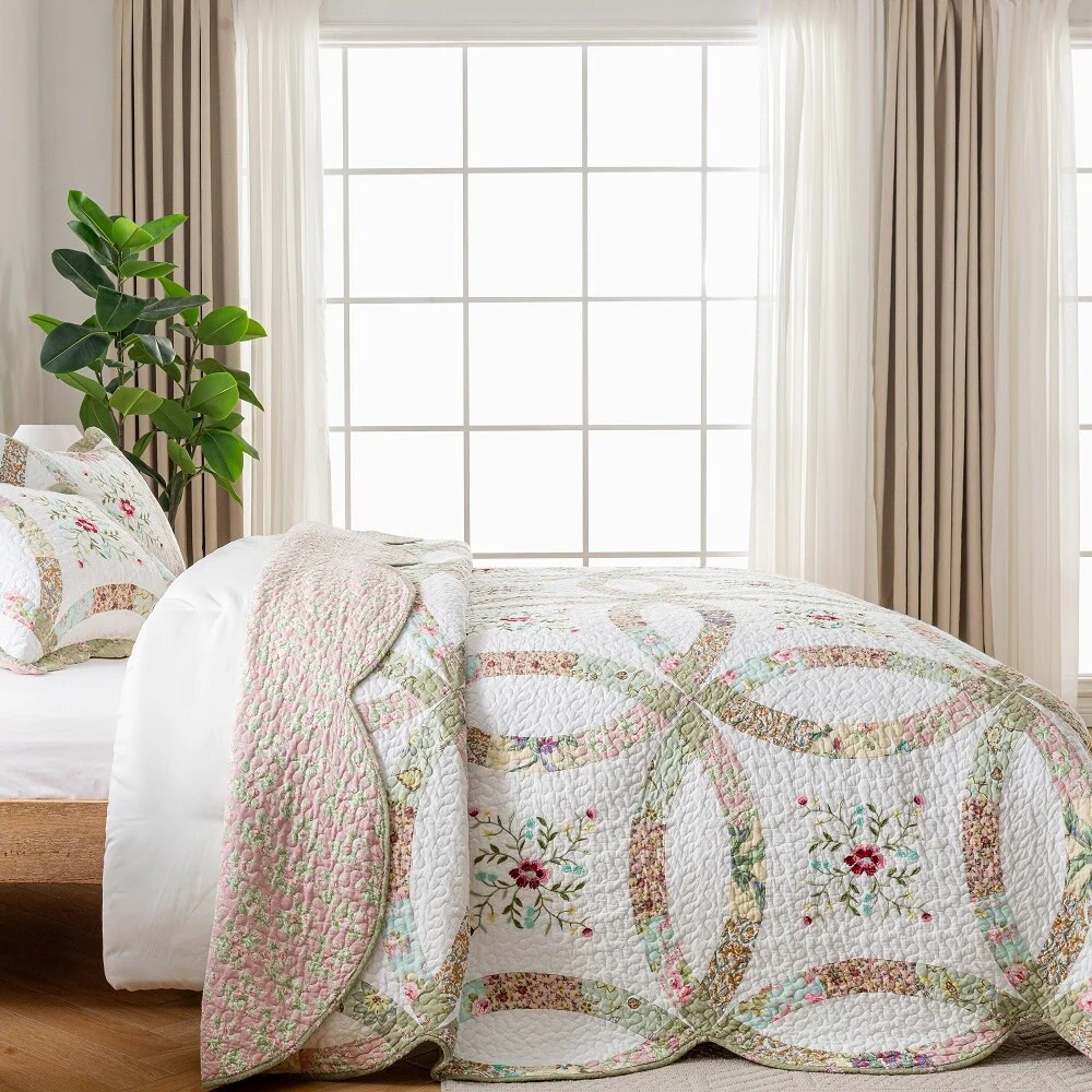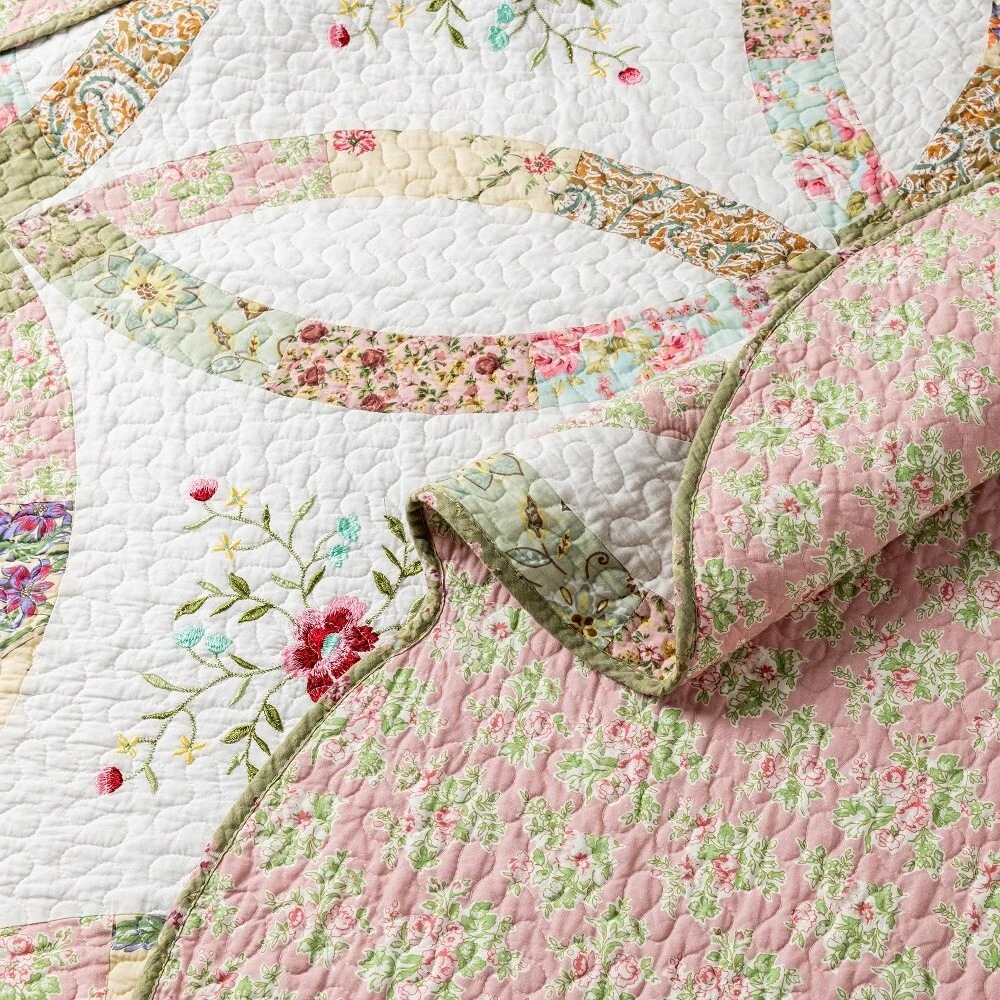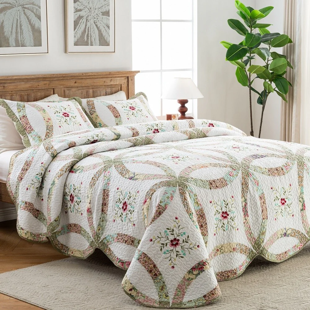 French Country Floral Blooming 3-Piece Cotton Reversible Quilt Bedding Set