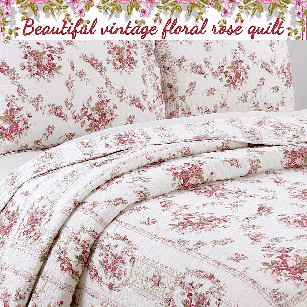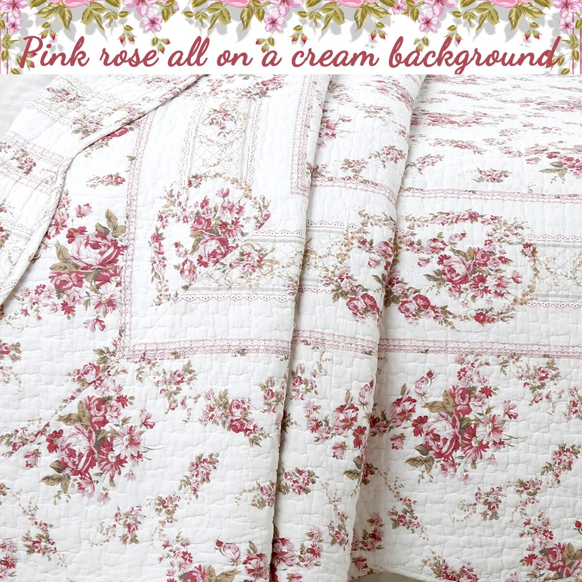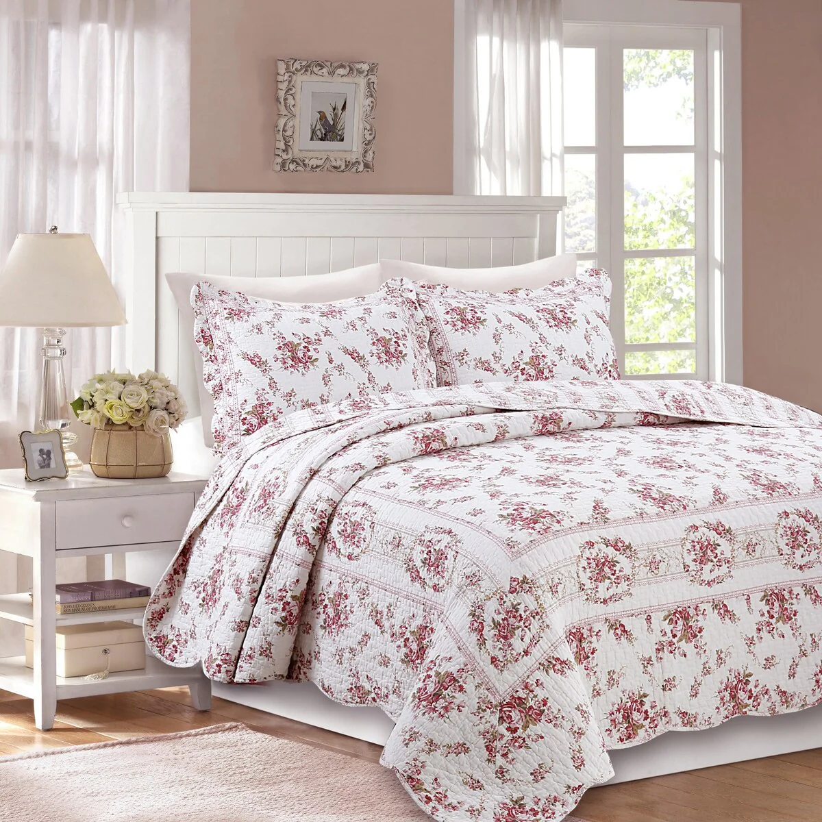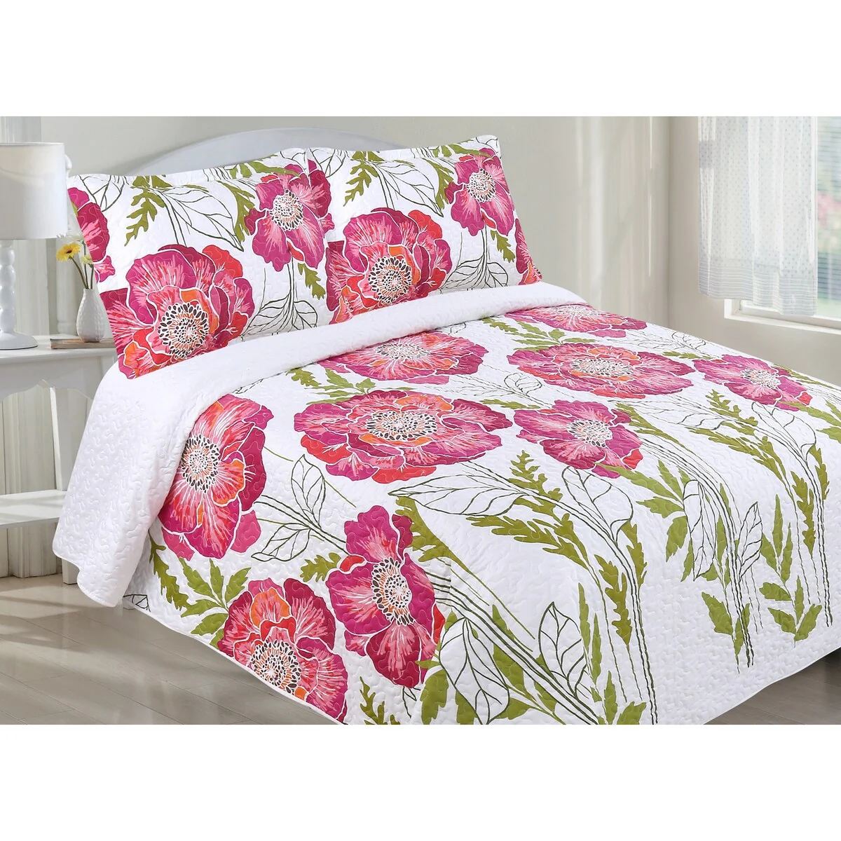 French Country Floral Blooming 3-Piece Cotton Reversible Quilt Bedding Set
