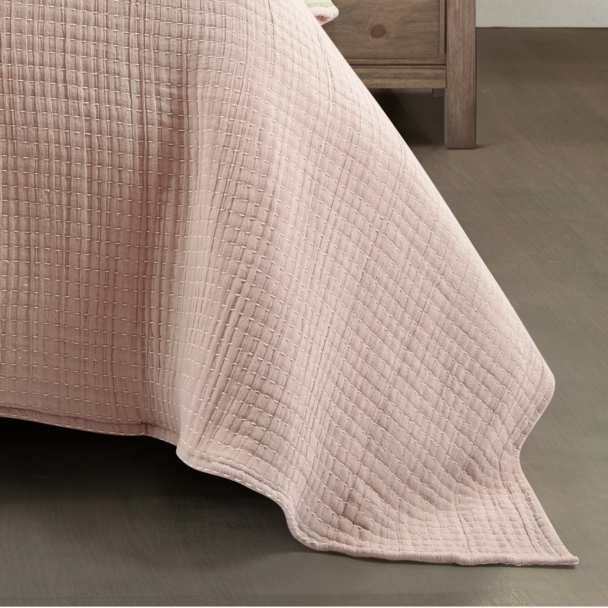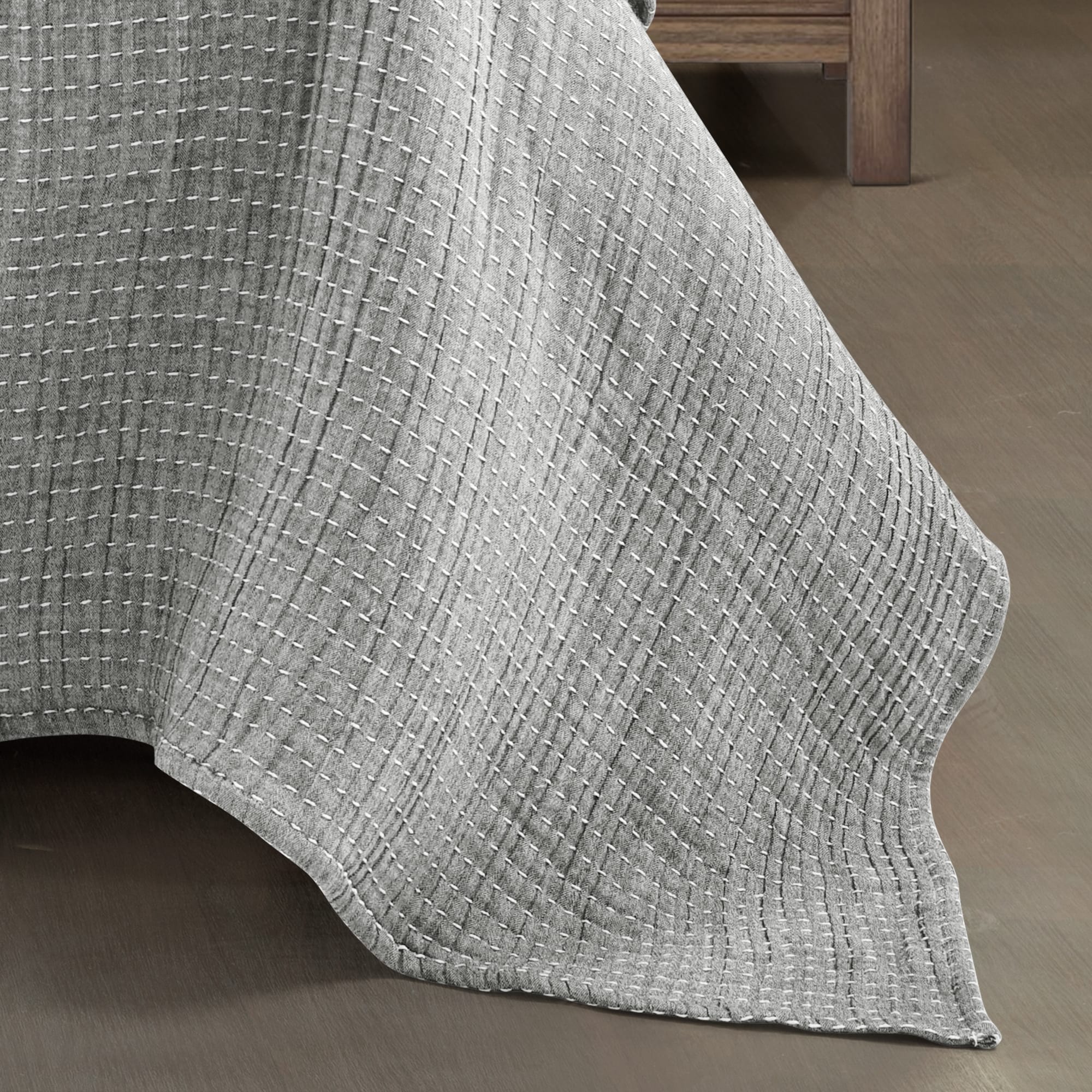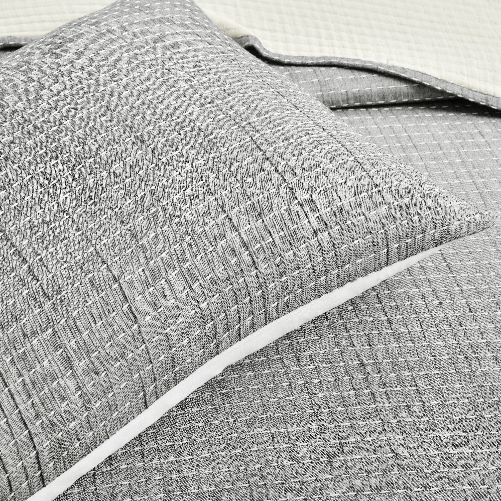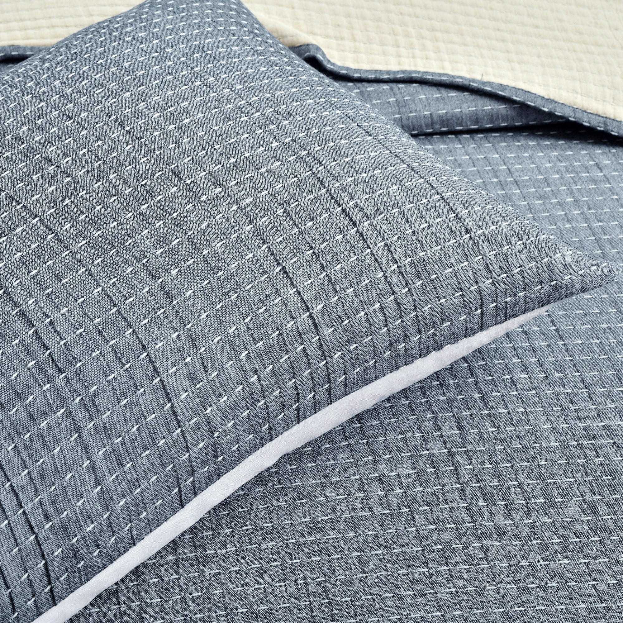 Lush Decor Solid Kantha Pick Stitch Woven Cotton 3-piece Quilt Set