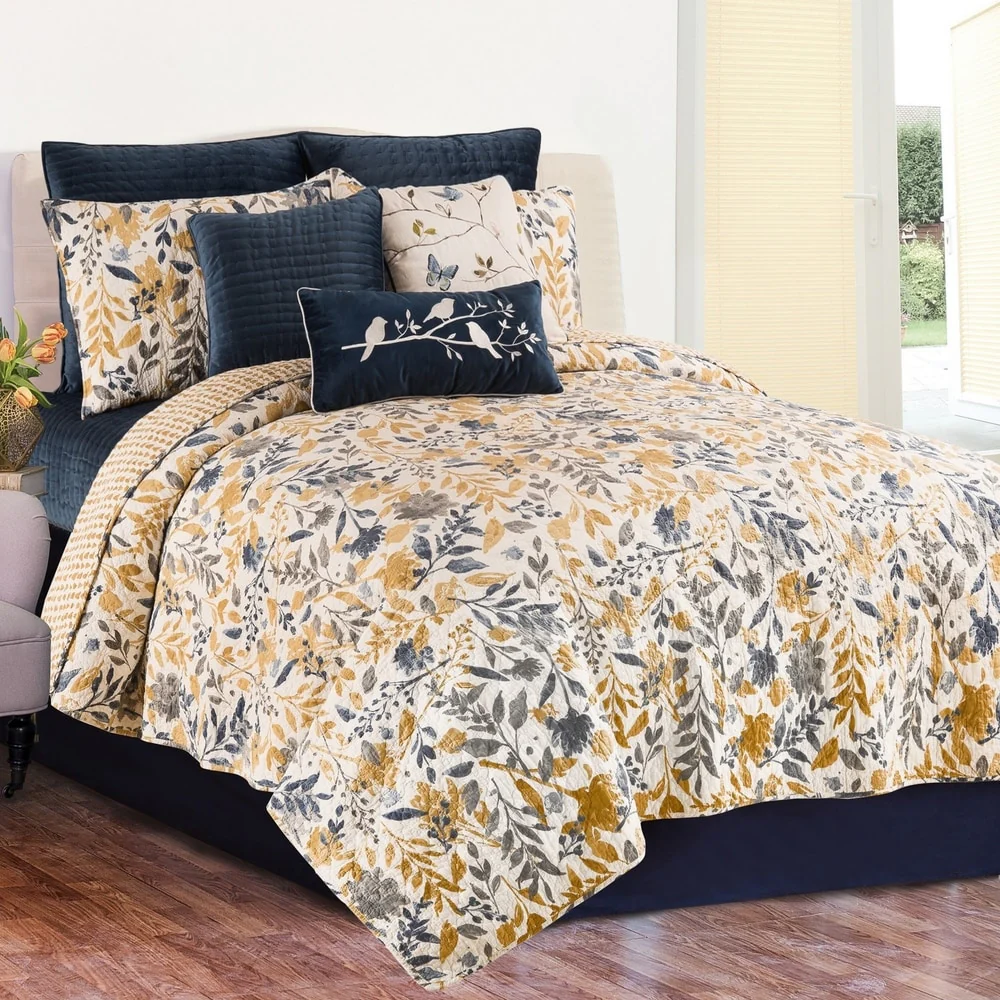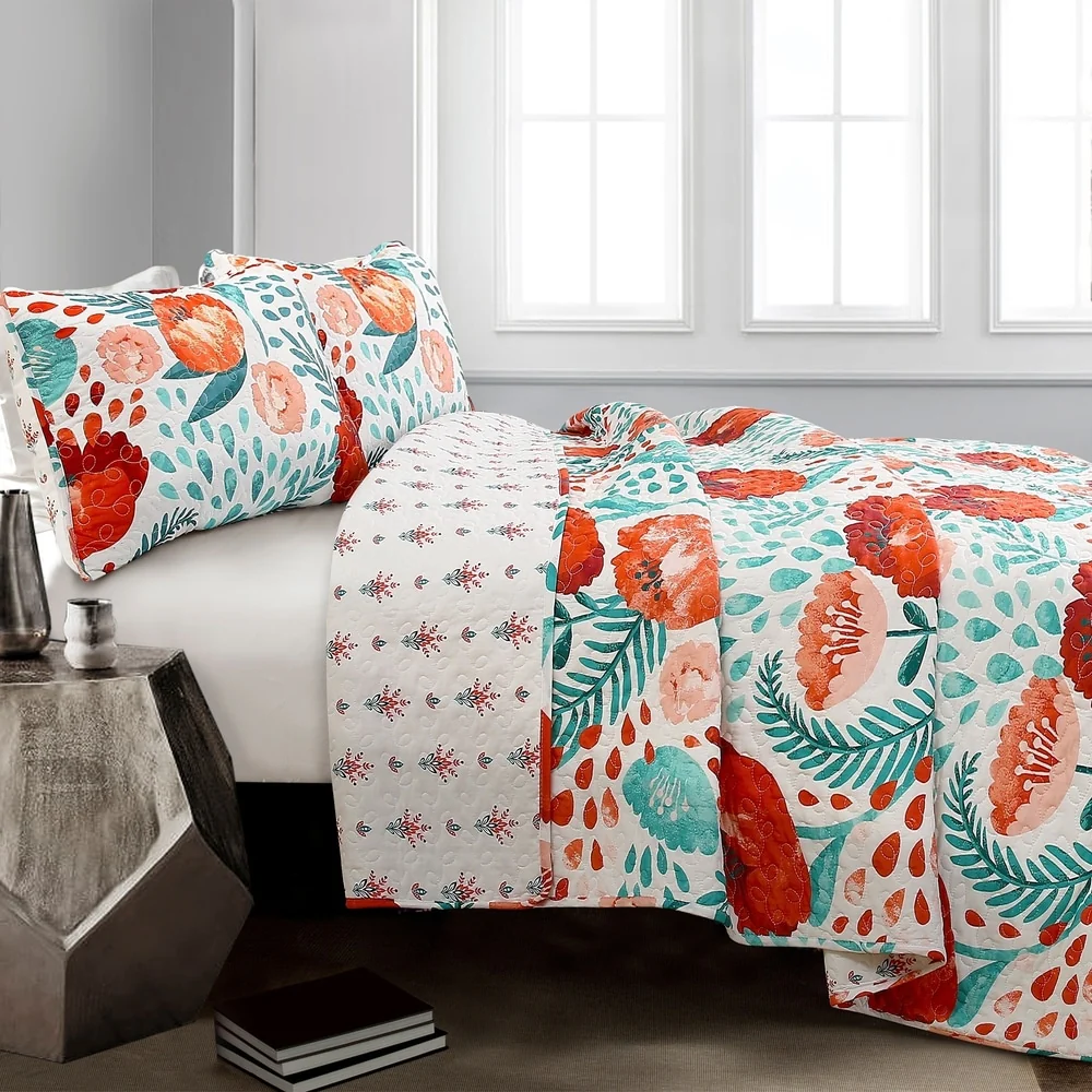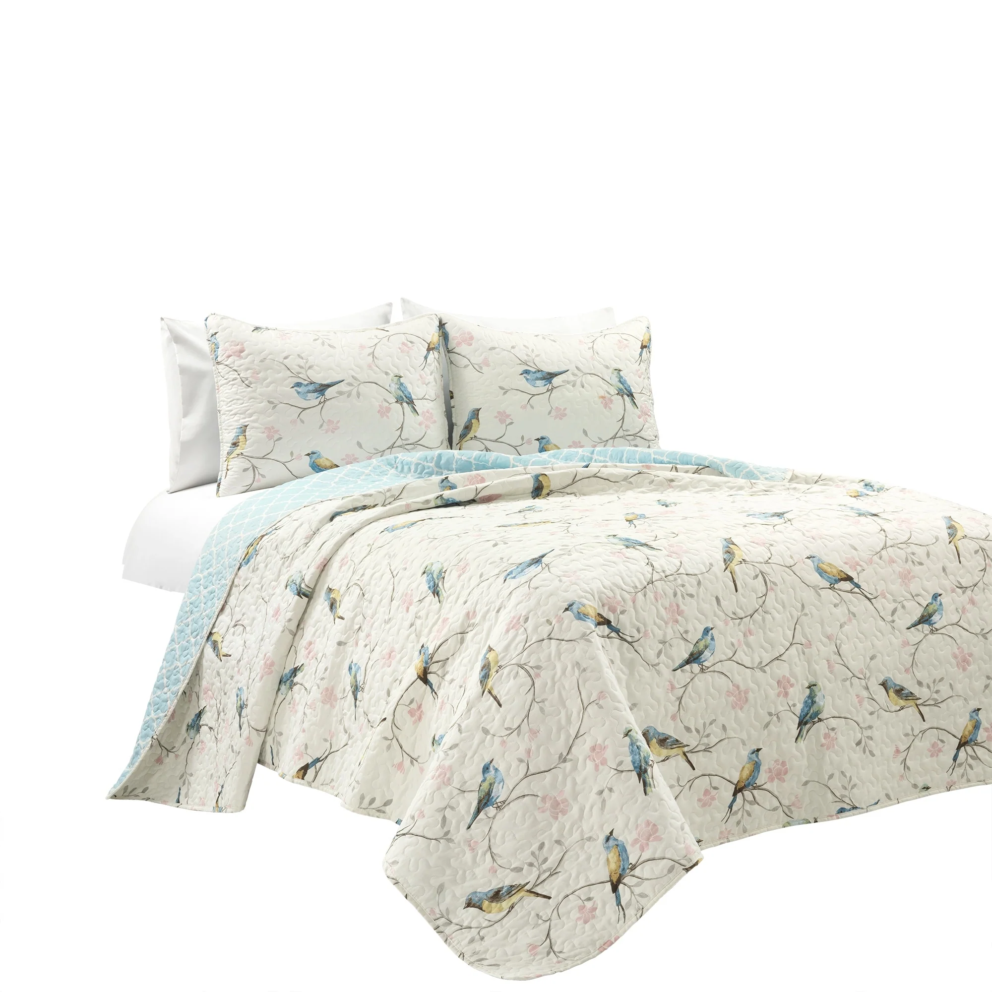 Lush Decor Botanical Bird And Flower Oversized Reversible Quilt Set