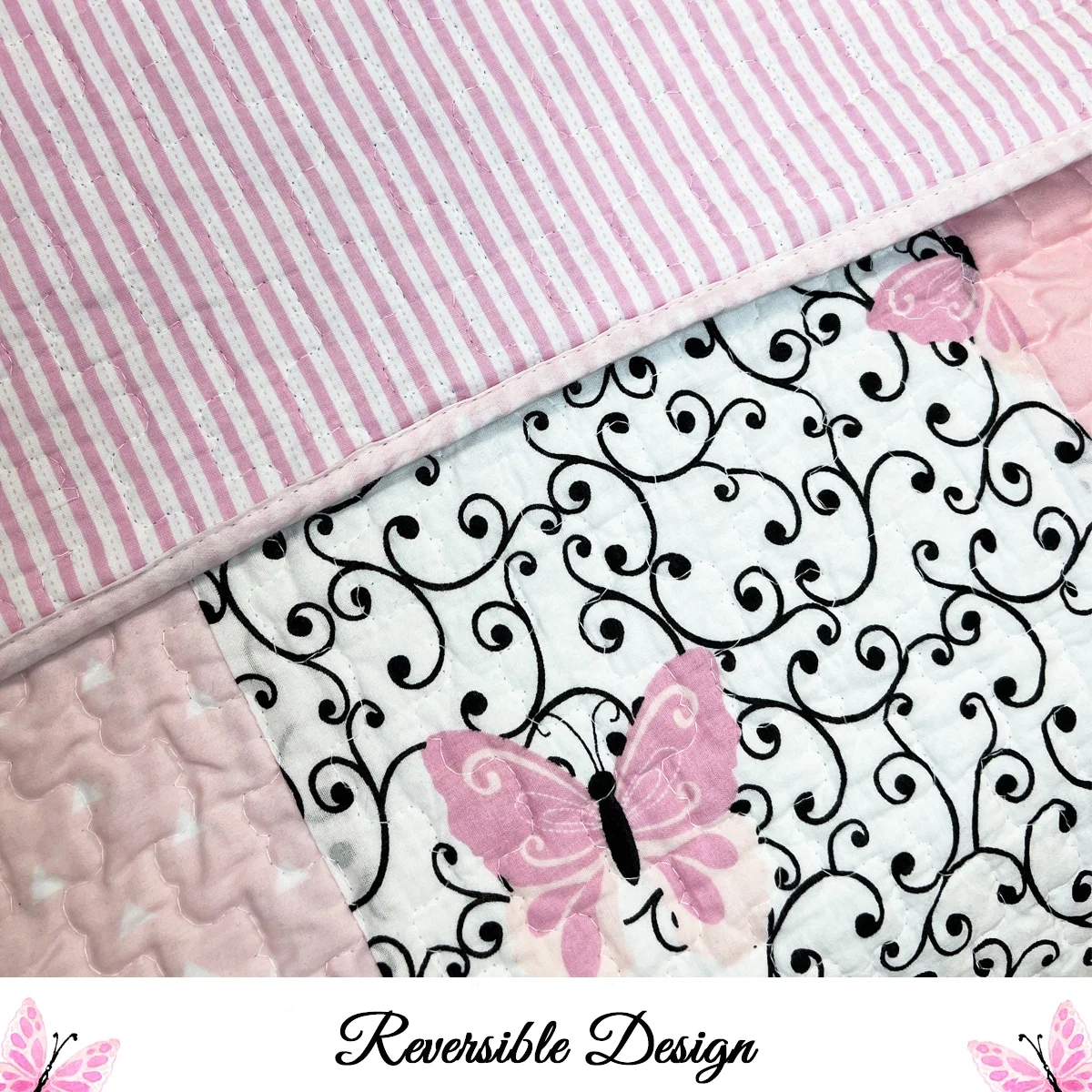Cozy Line Emerson Pink Butterfly Patchwork Reversible Cotton Quilt Bedding Set