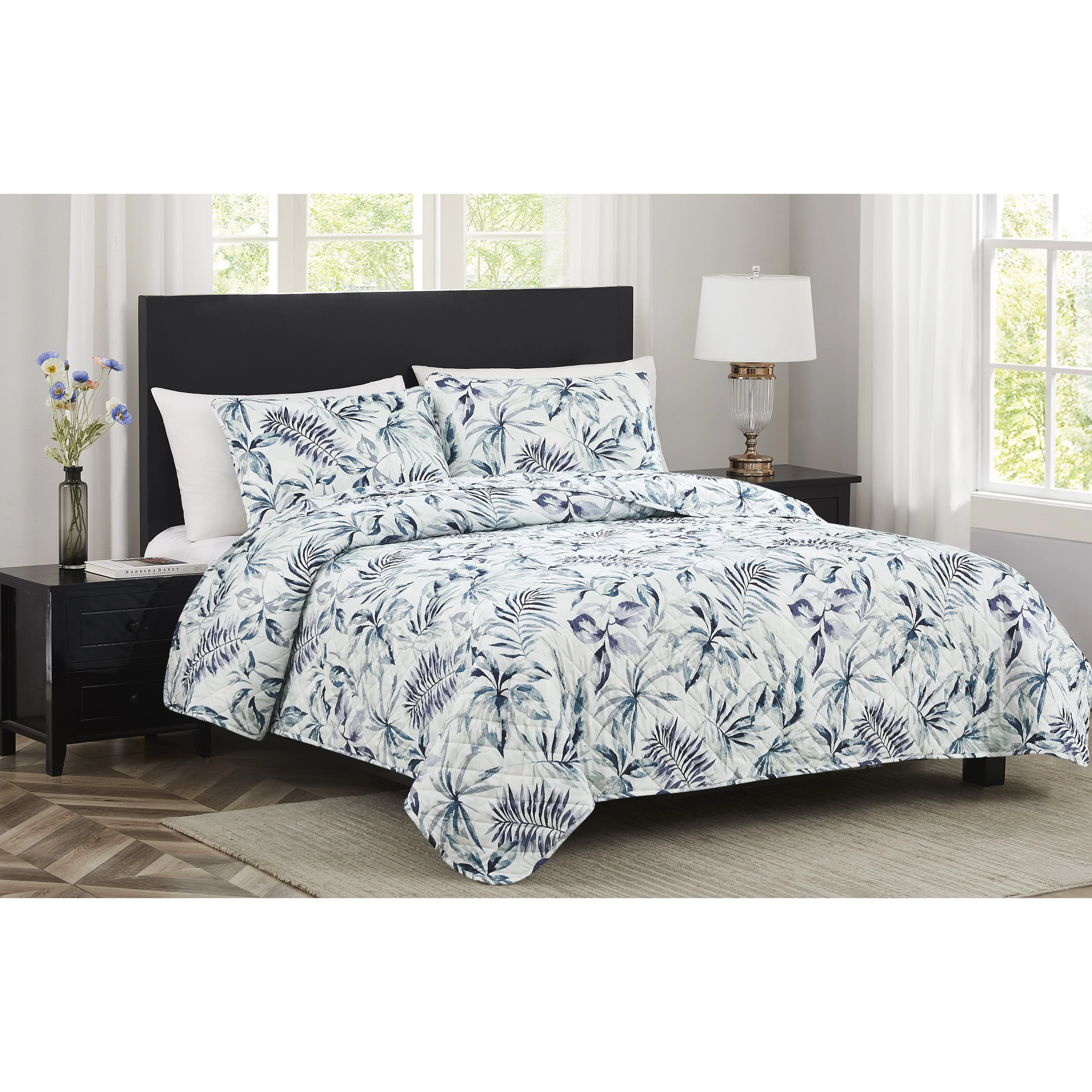 Sophia Tropical Leaves Stitched Quilt Queen