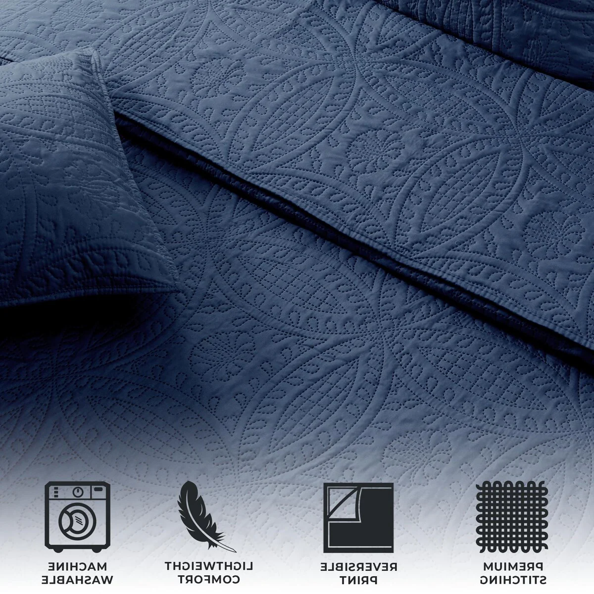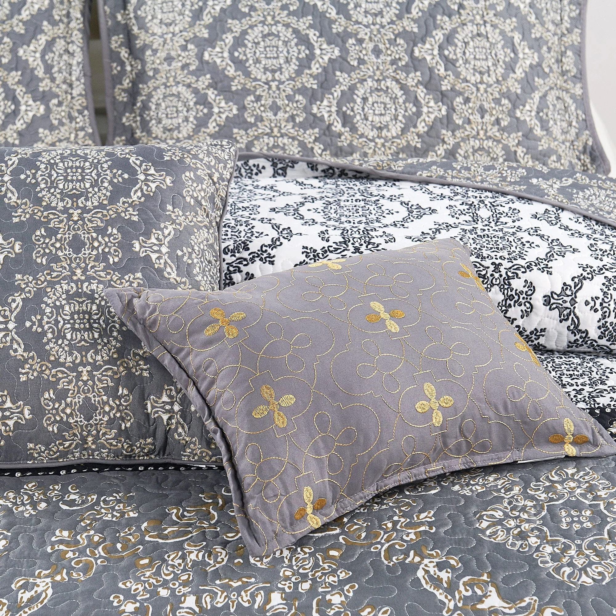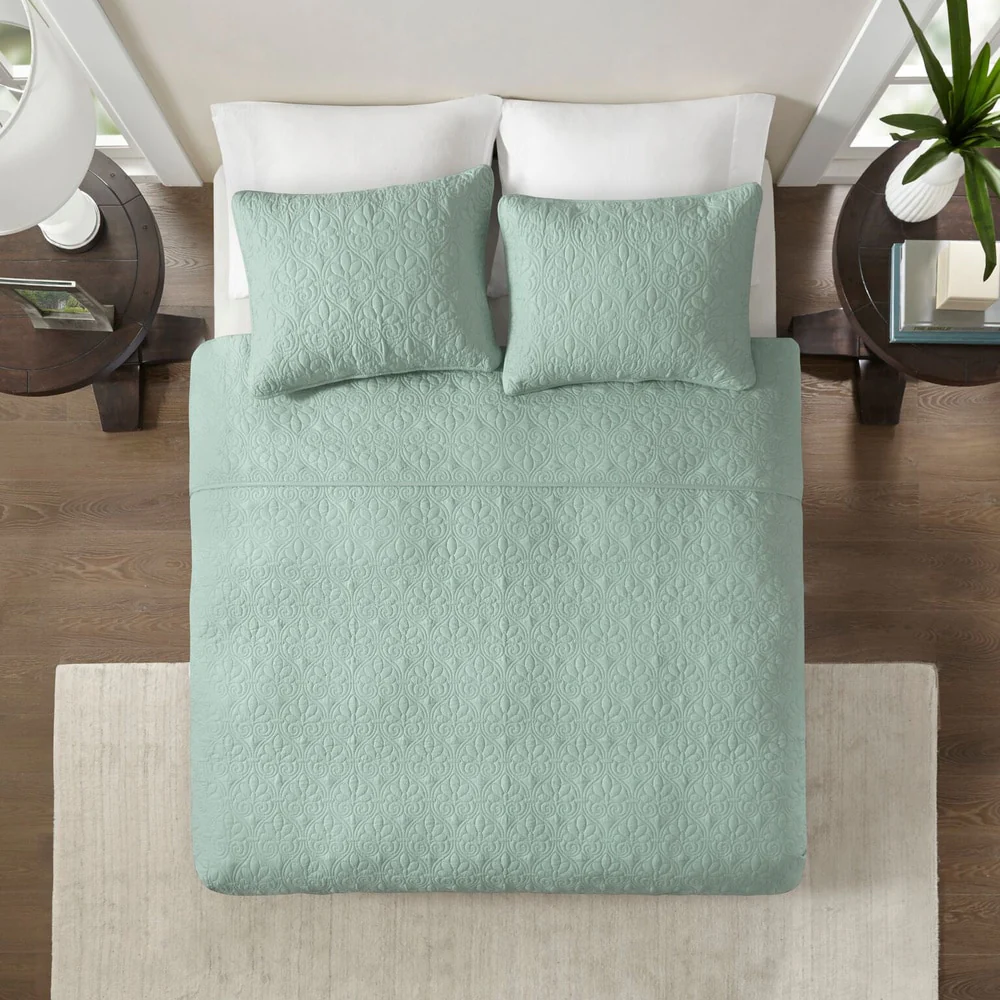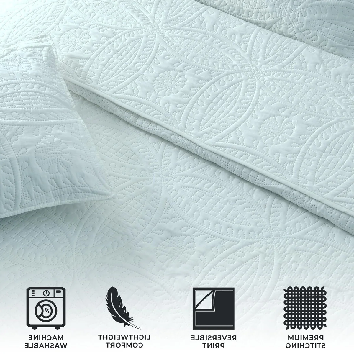 Luxurious Pinsonic Medallion Microfiber Quilt Set With Shams
