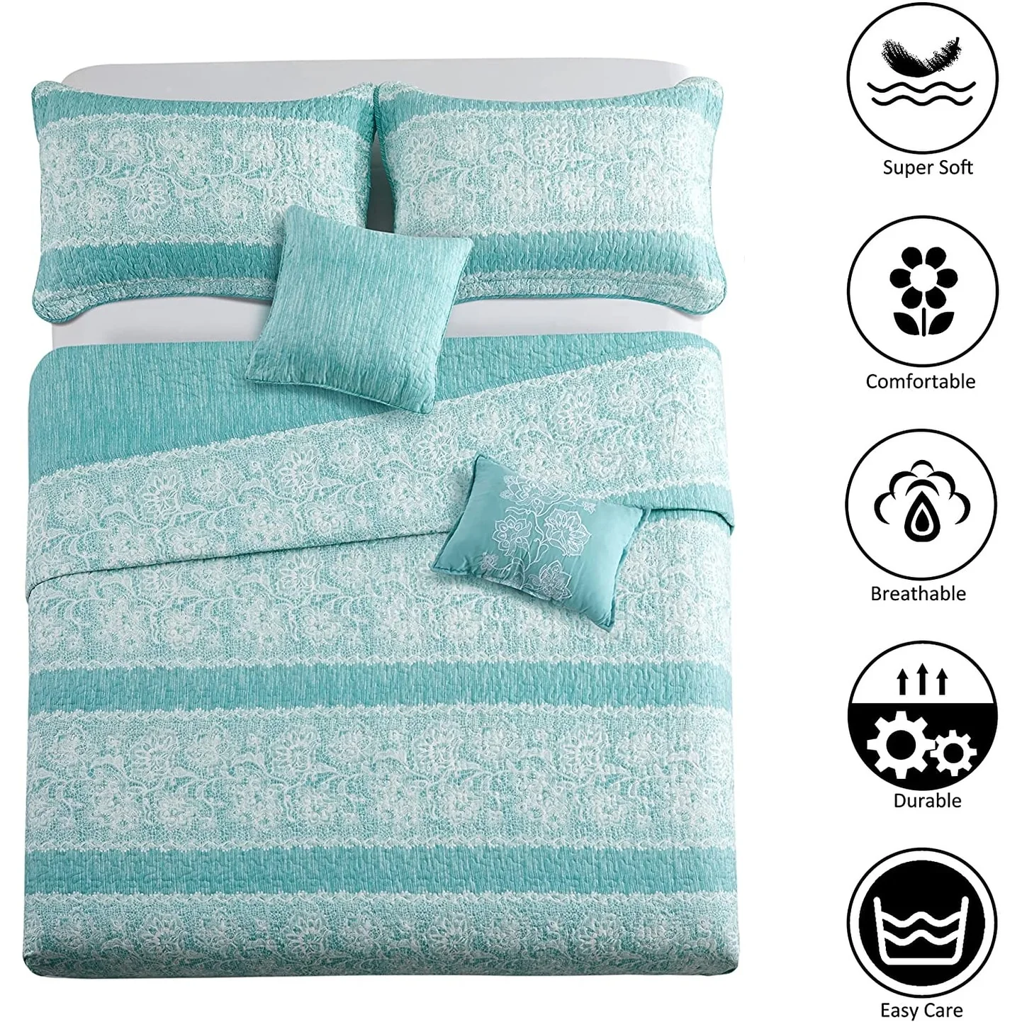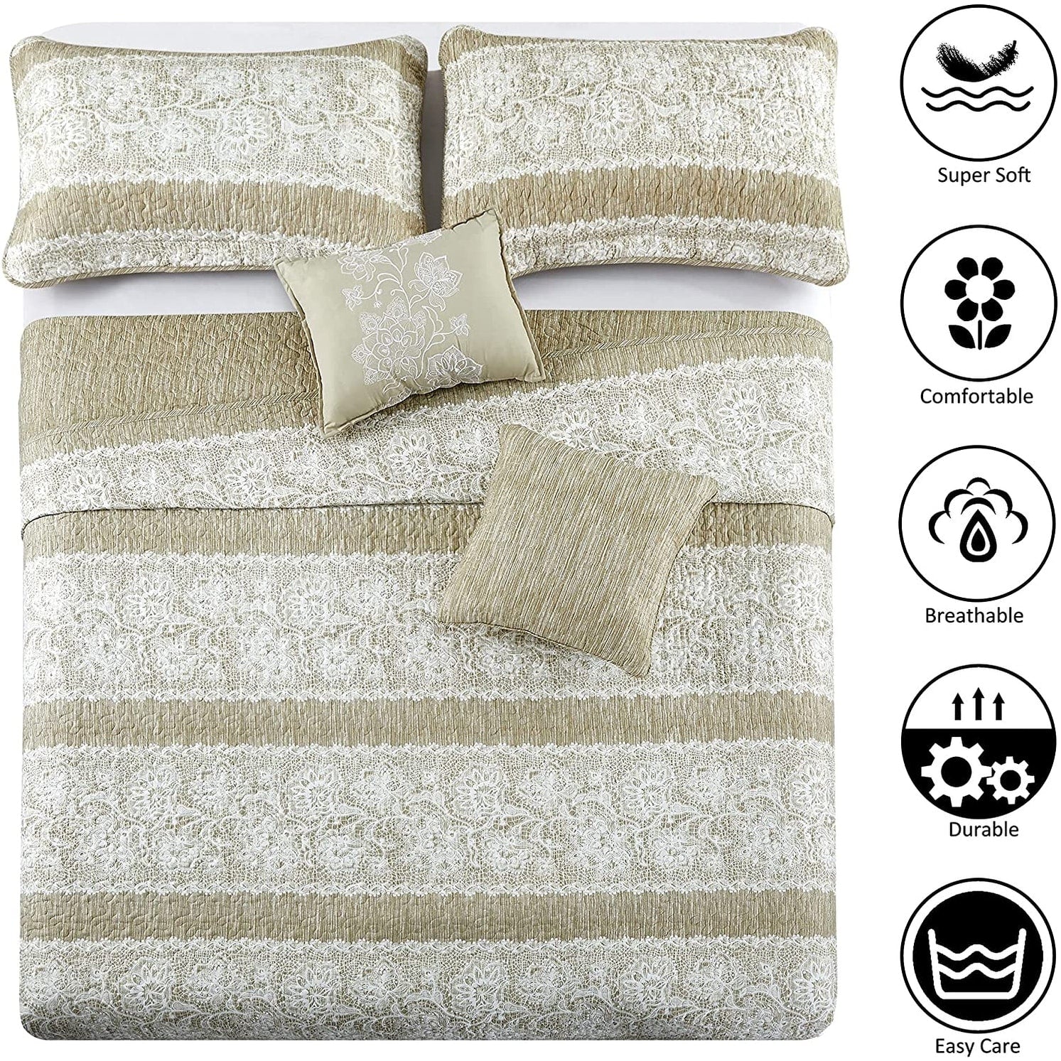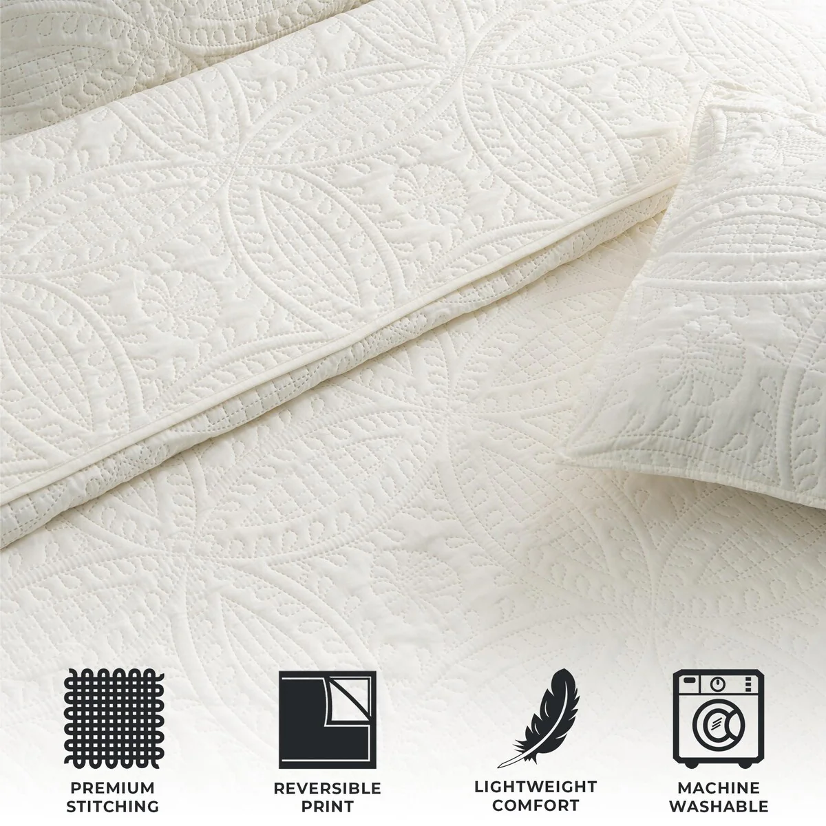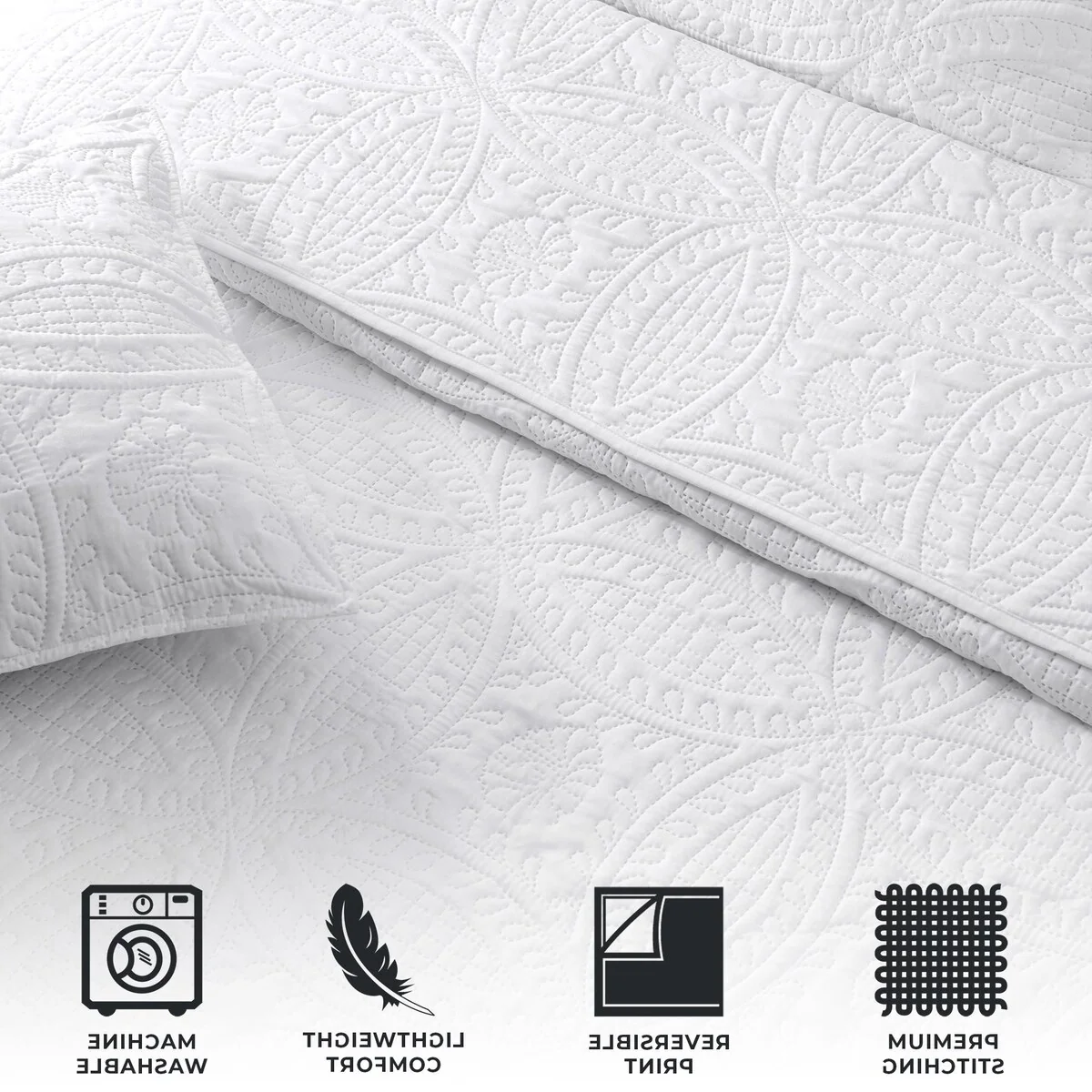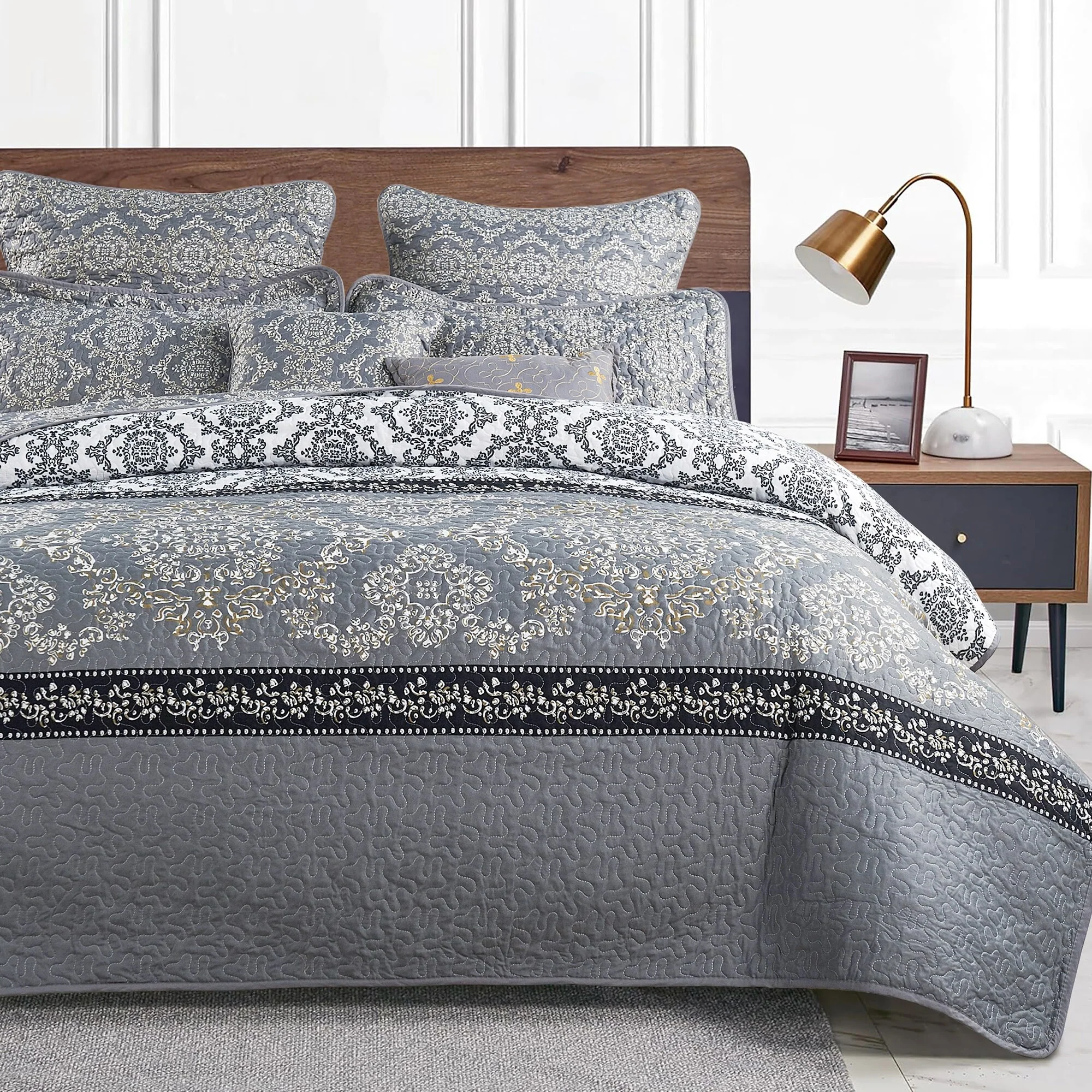 Luxurious Pinsonic Medallion Microfiber Quilt Set With Shams
