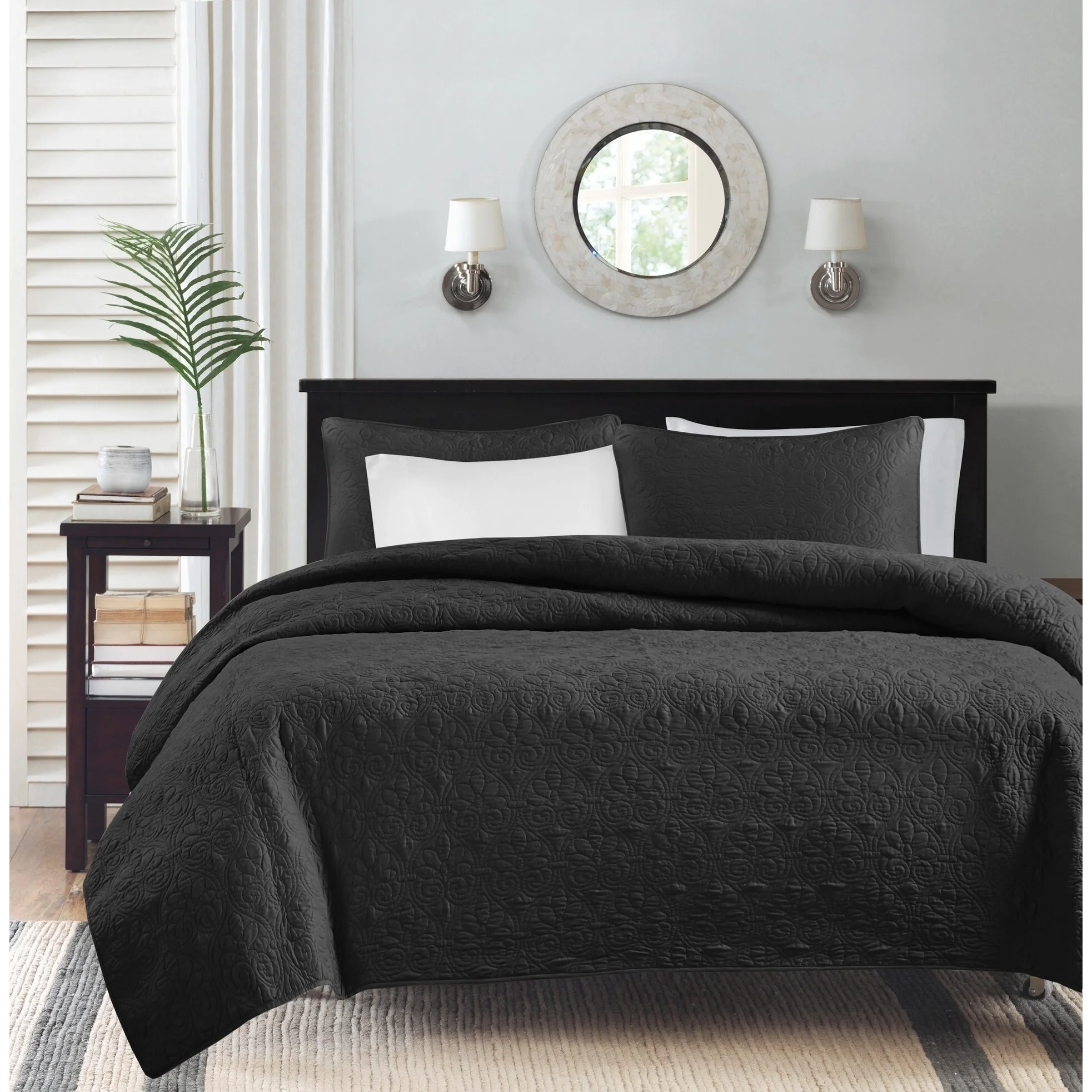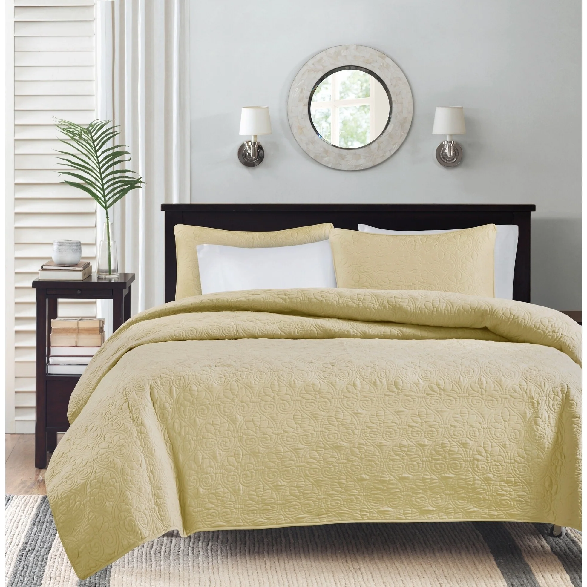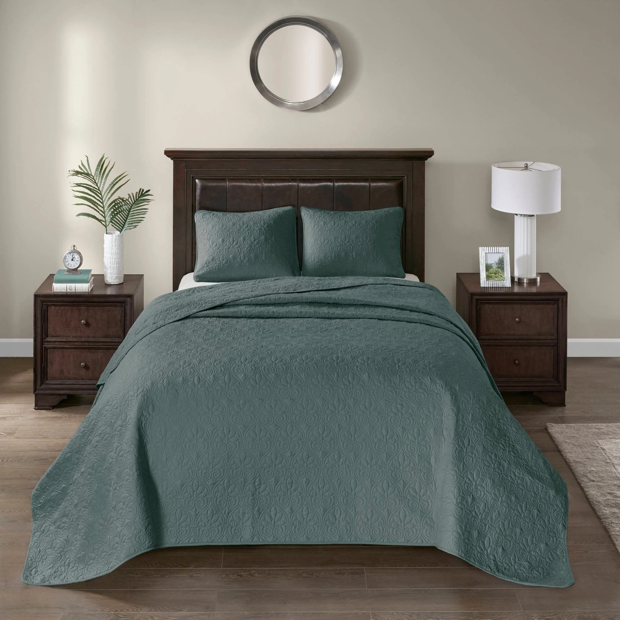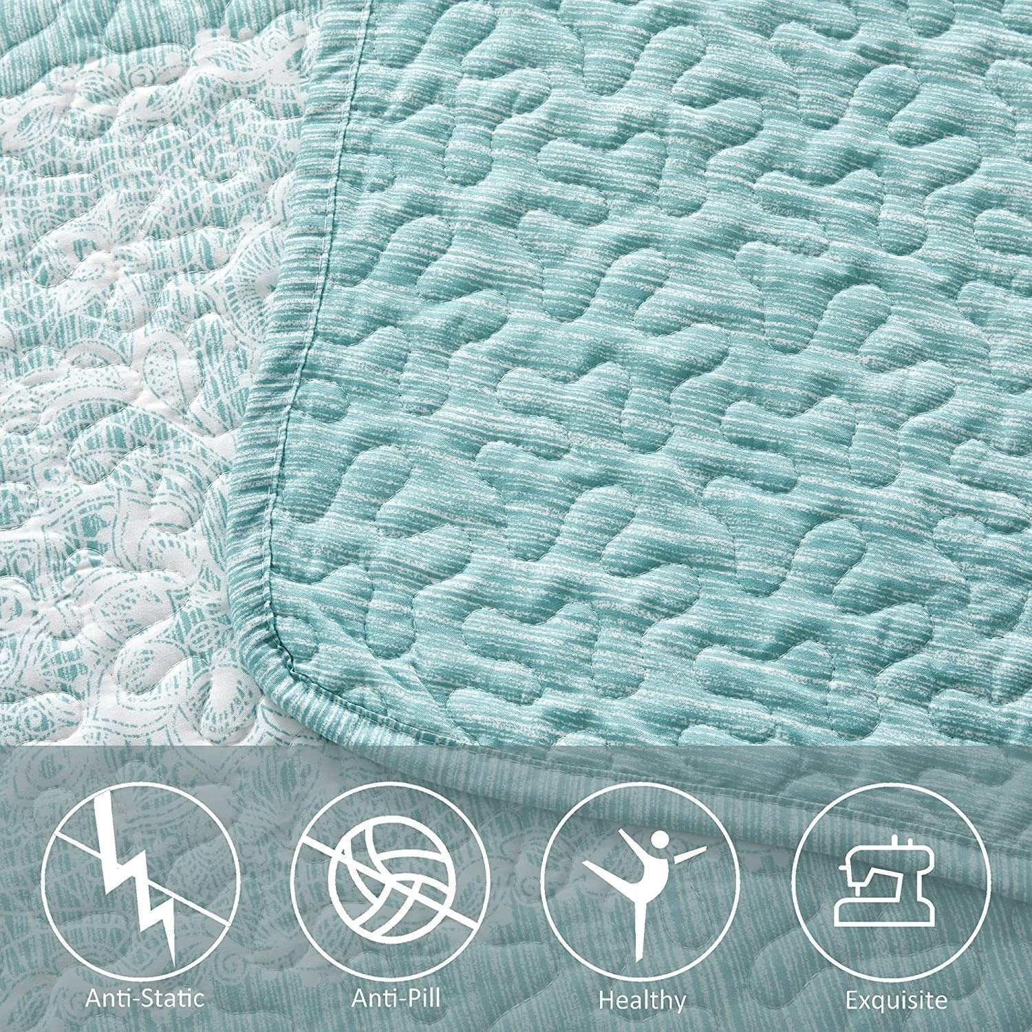 Luxurious Pinsonic Medallion Microfiber Quilt Set With Shams