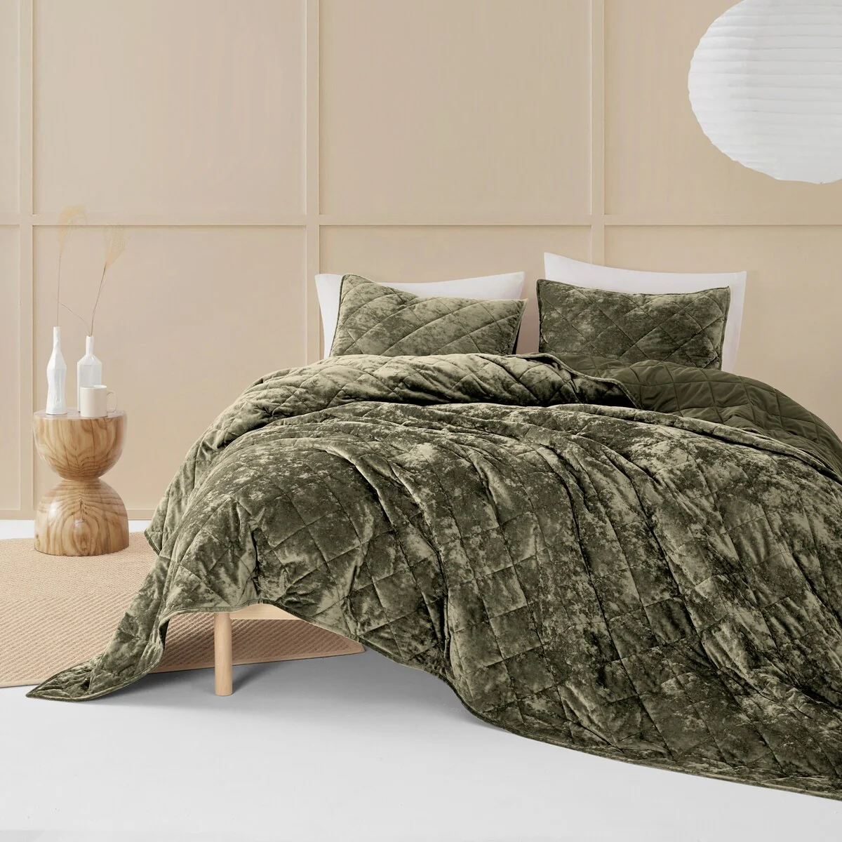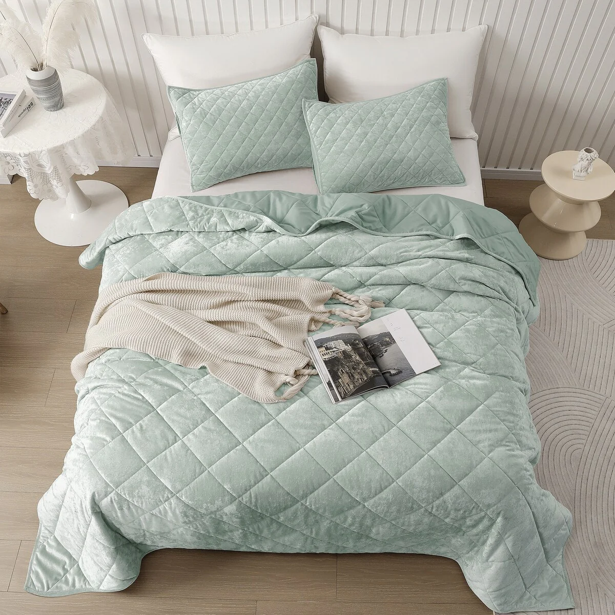 Wonderful Diamond Velvet 3 Piece Quilt Set