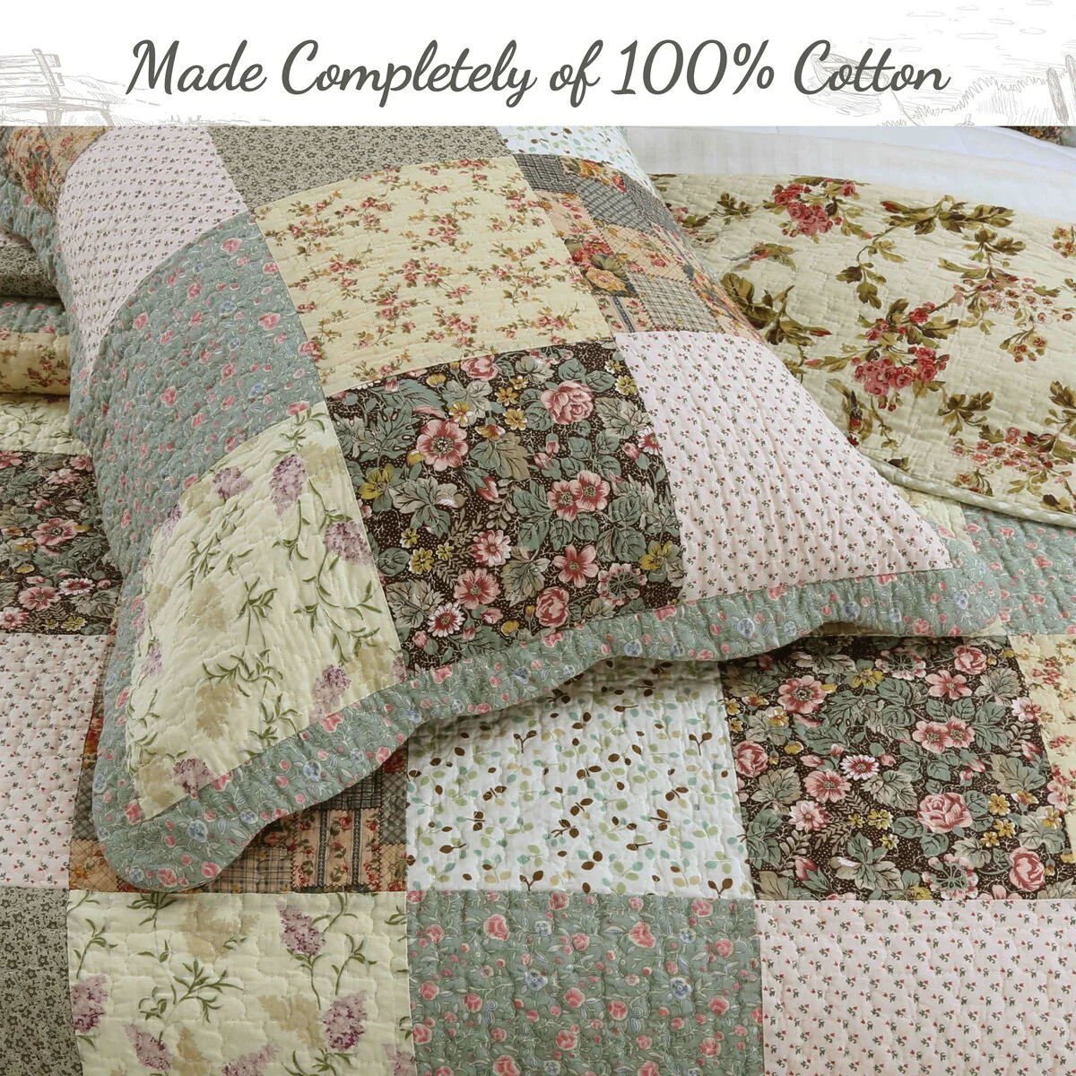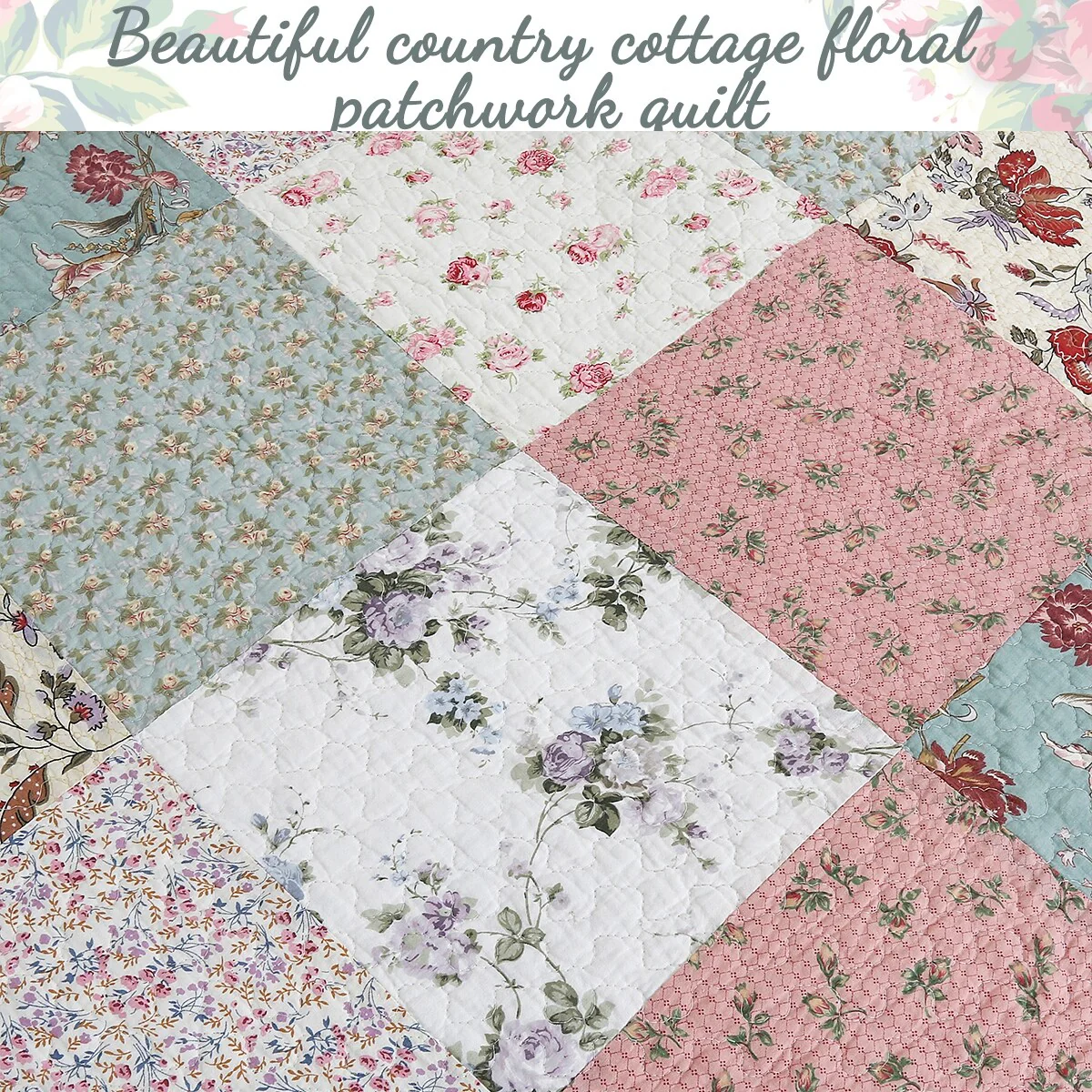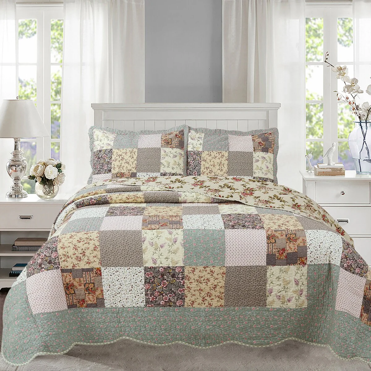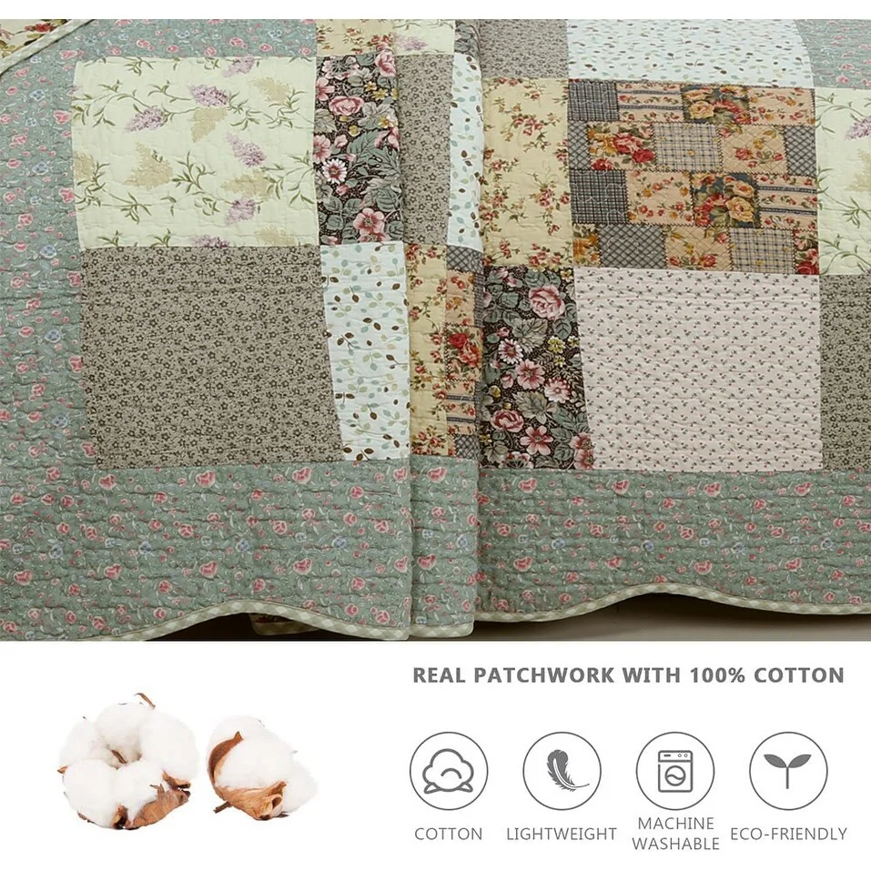 Classic Floral Patchwork Scalloped Edge Quilt