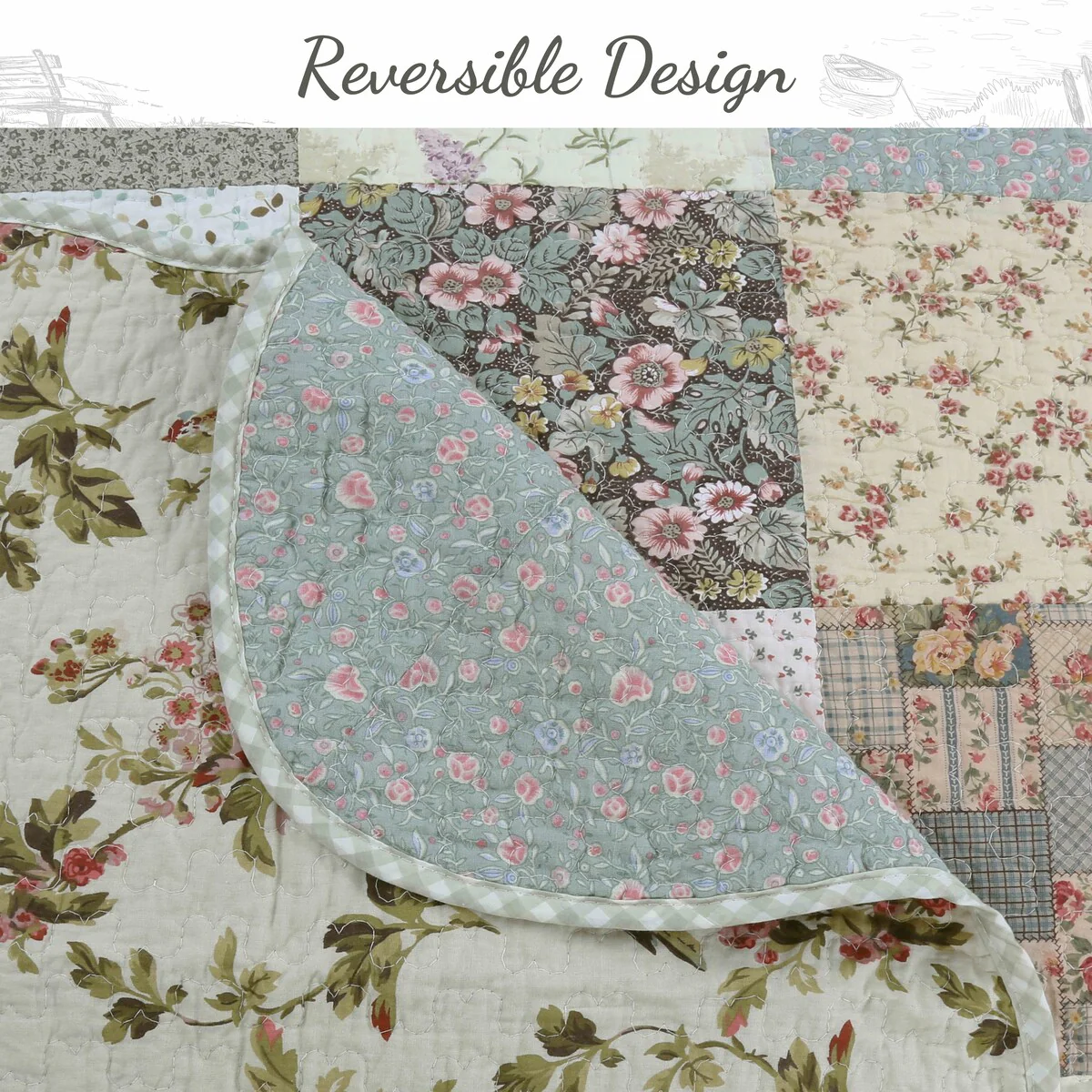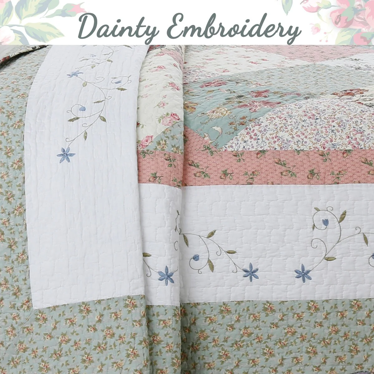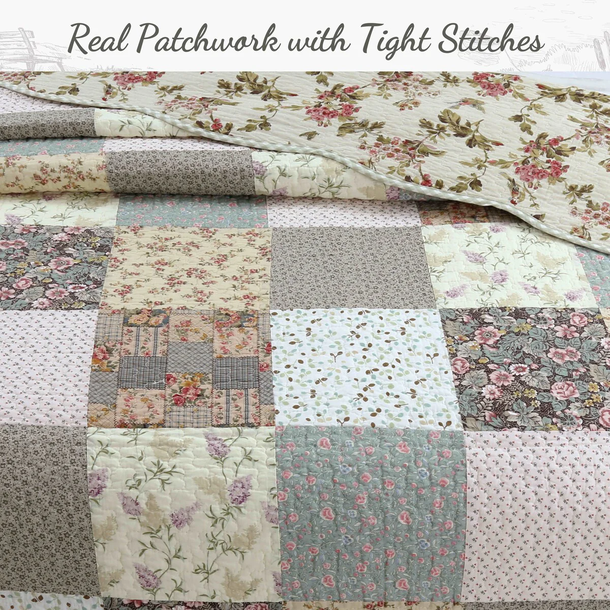 Classic Floral Patchwork Scalloped Edge Quilt