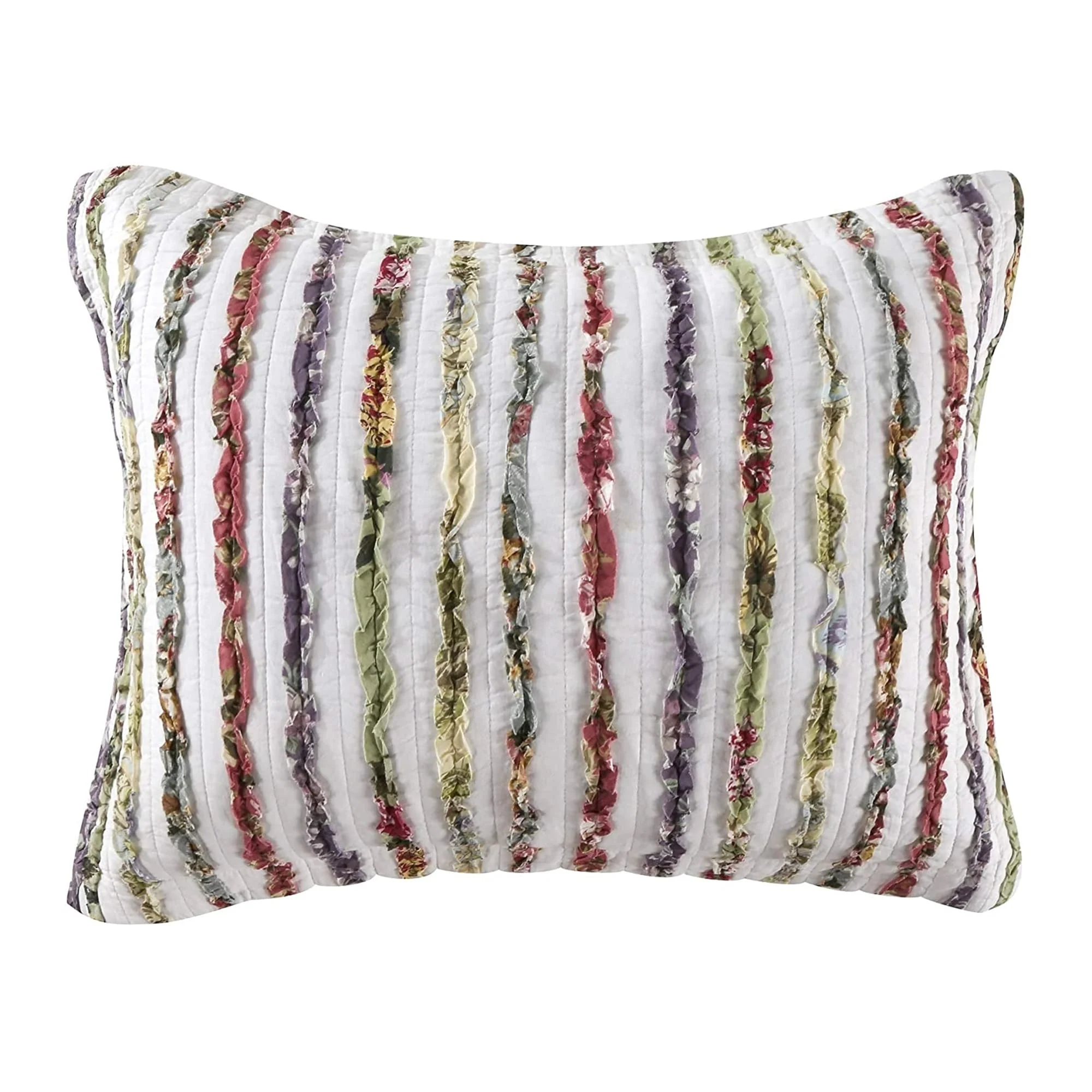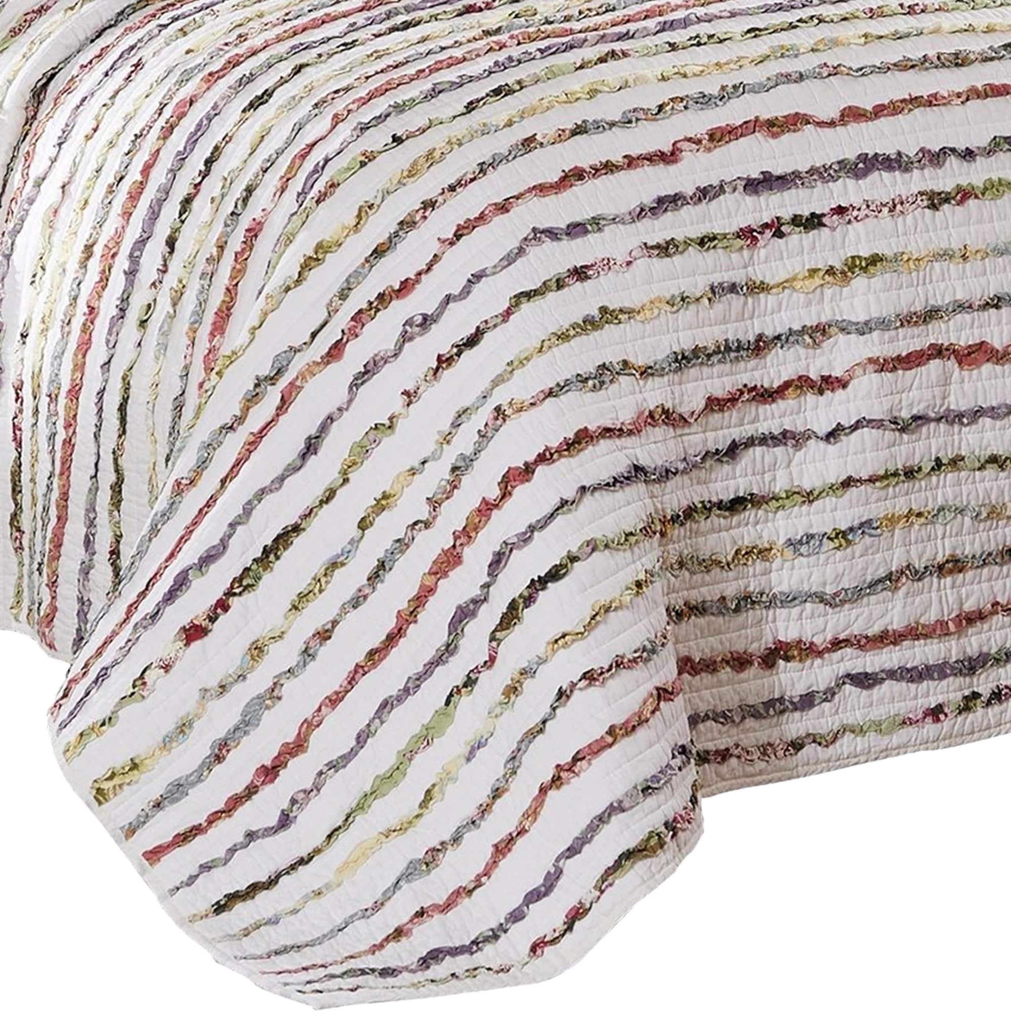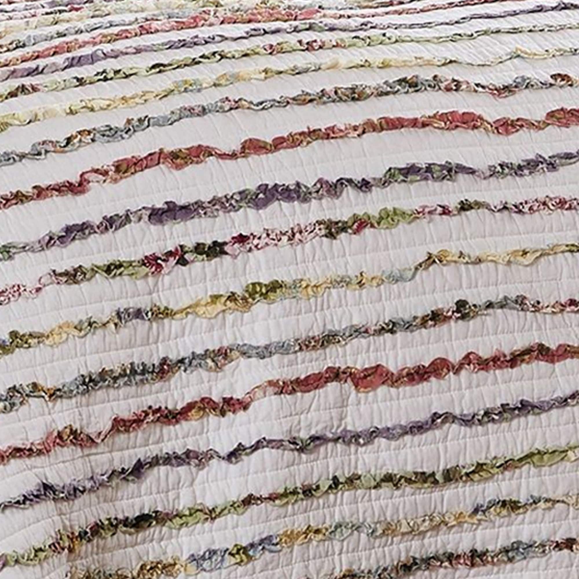 Five Piece King Size Cotton Quilt Set with Sewn Floral Ruffles, Multicolor