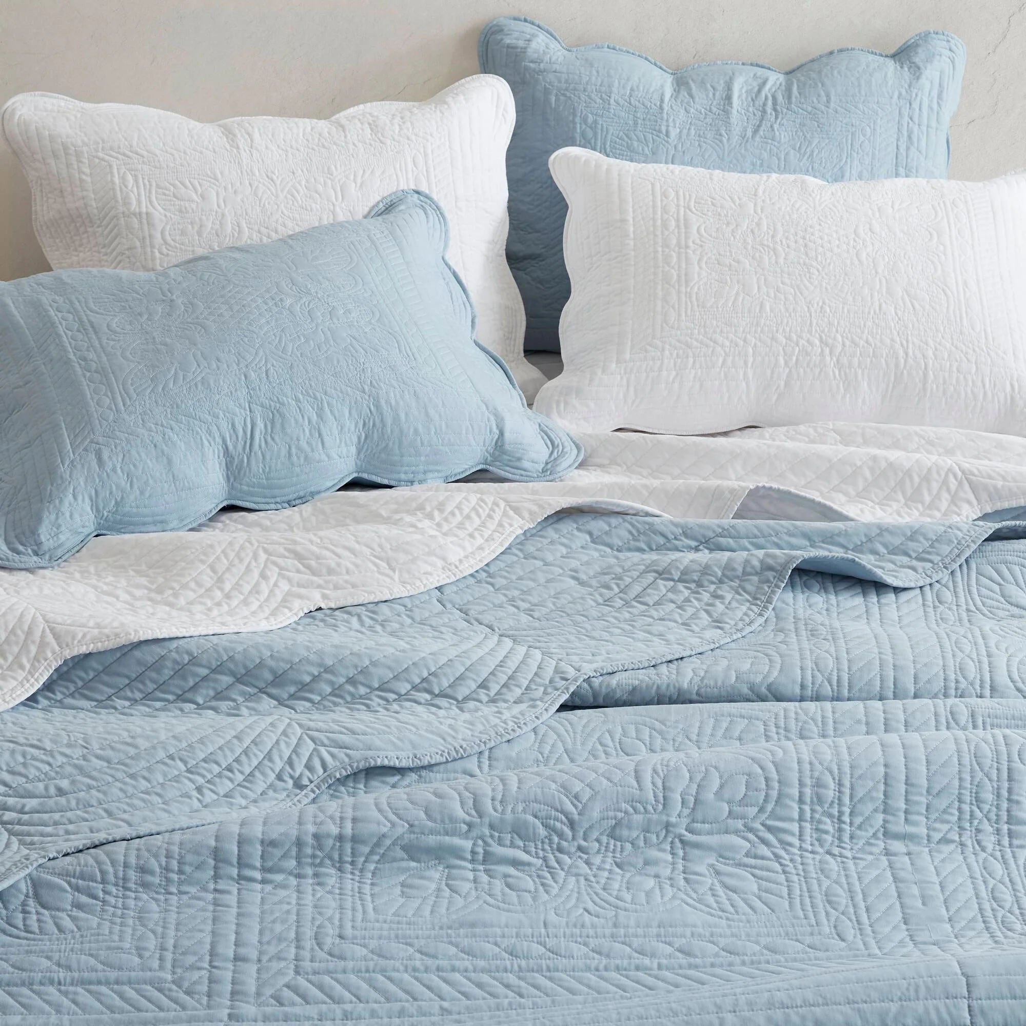 Madison Park Marino 3 Piece Reversible Scalloped Edge Quilt Set