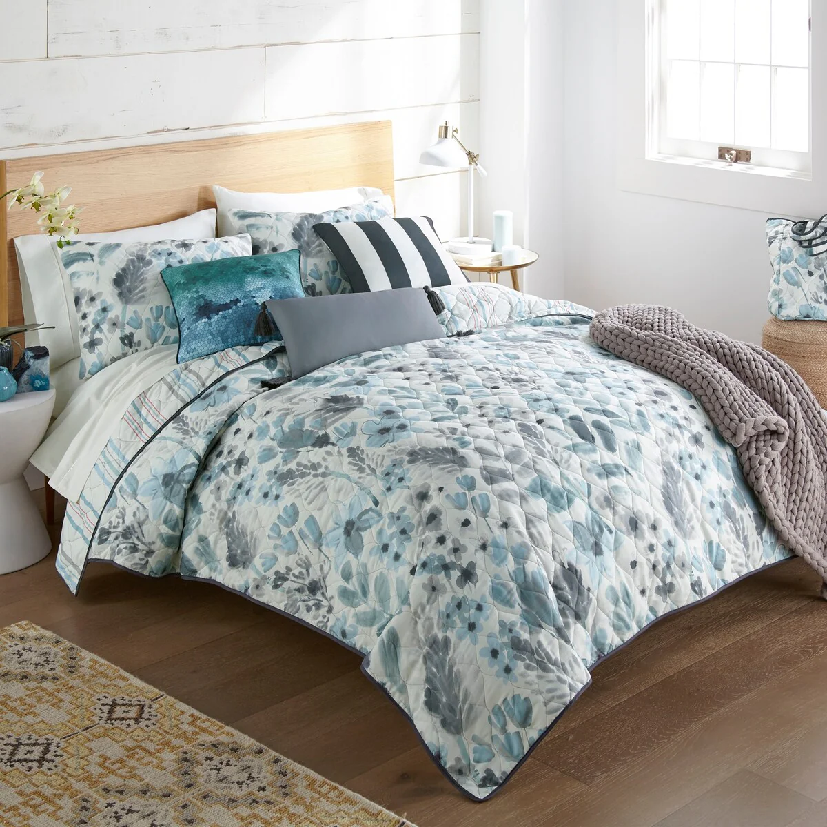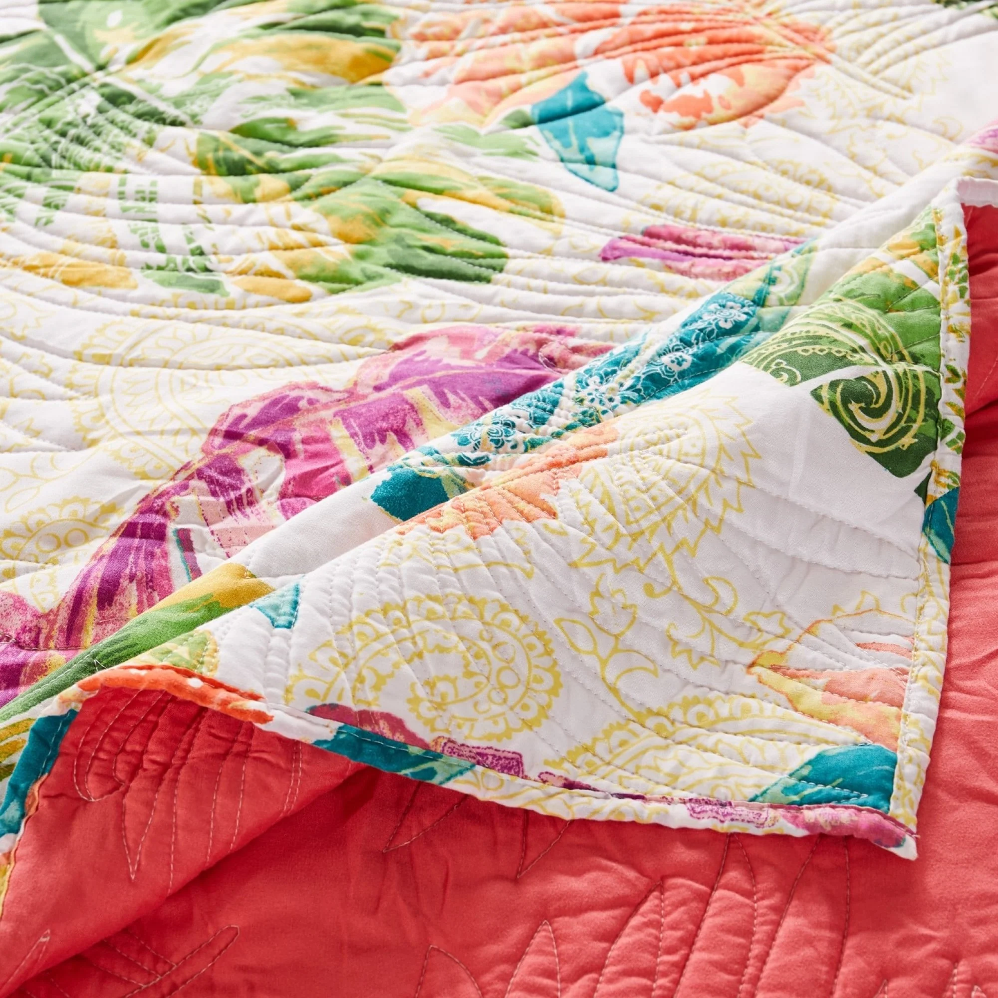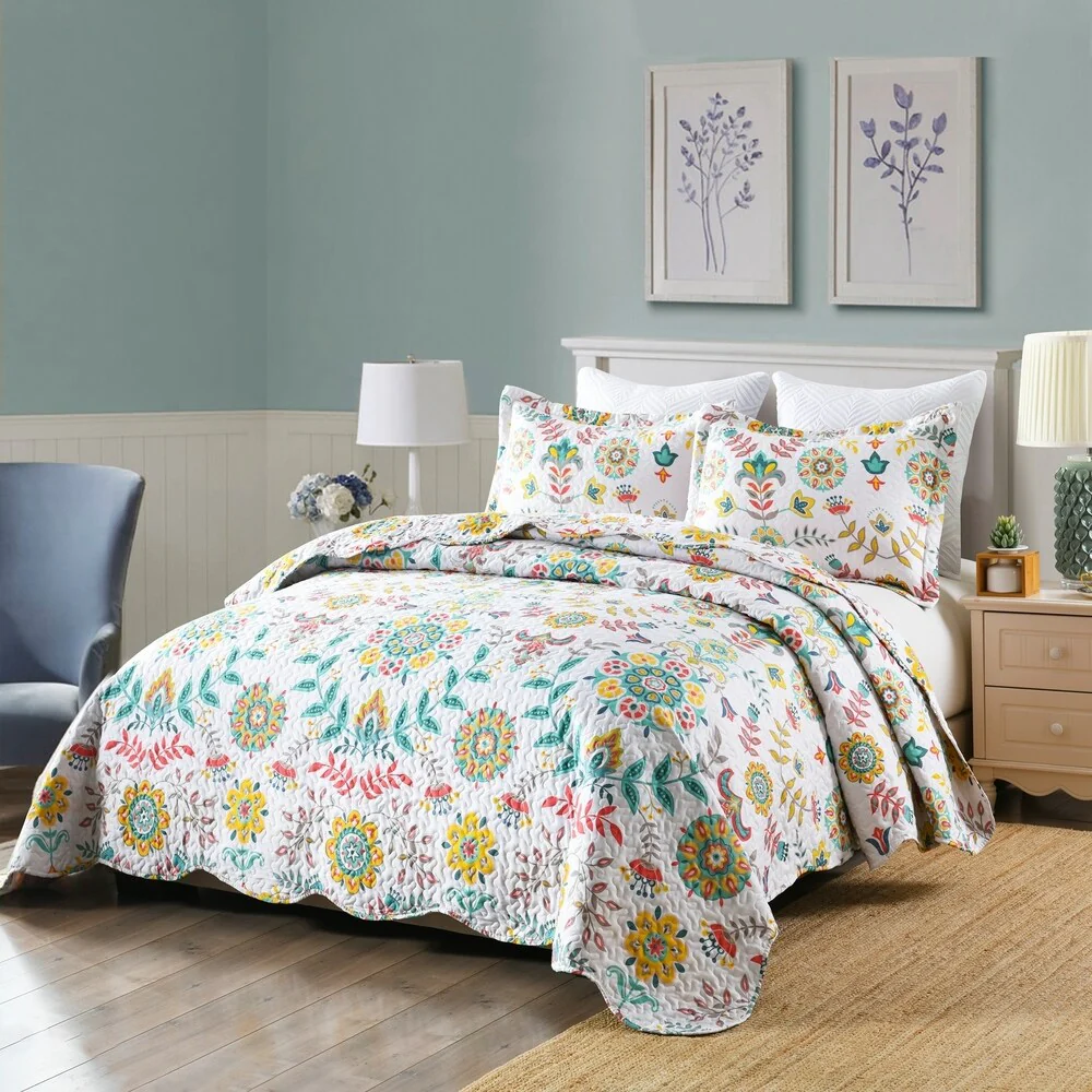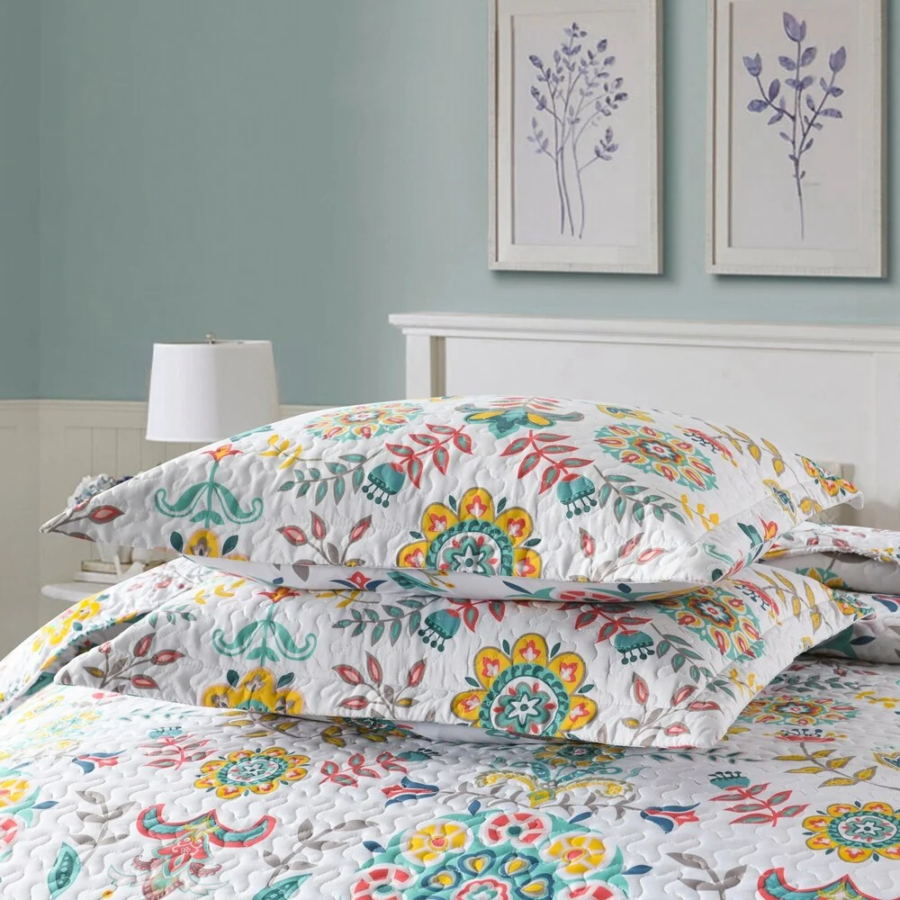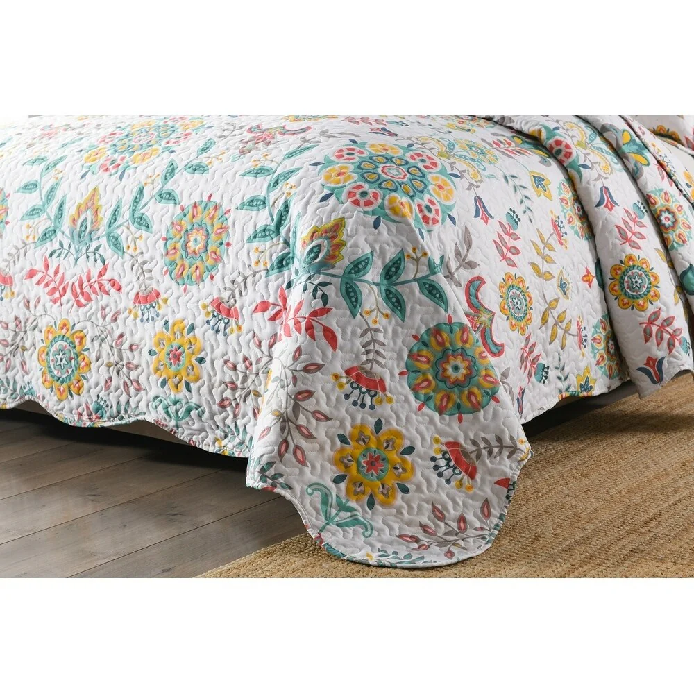 Boho Floral Lightweight Quilted Bedspread Set