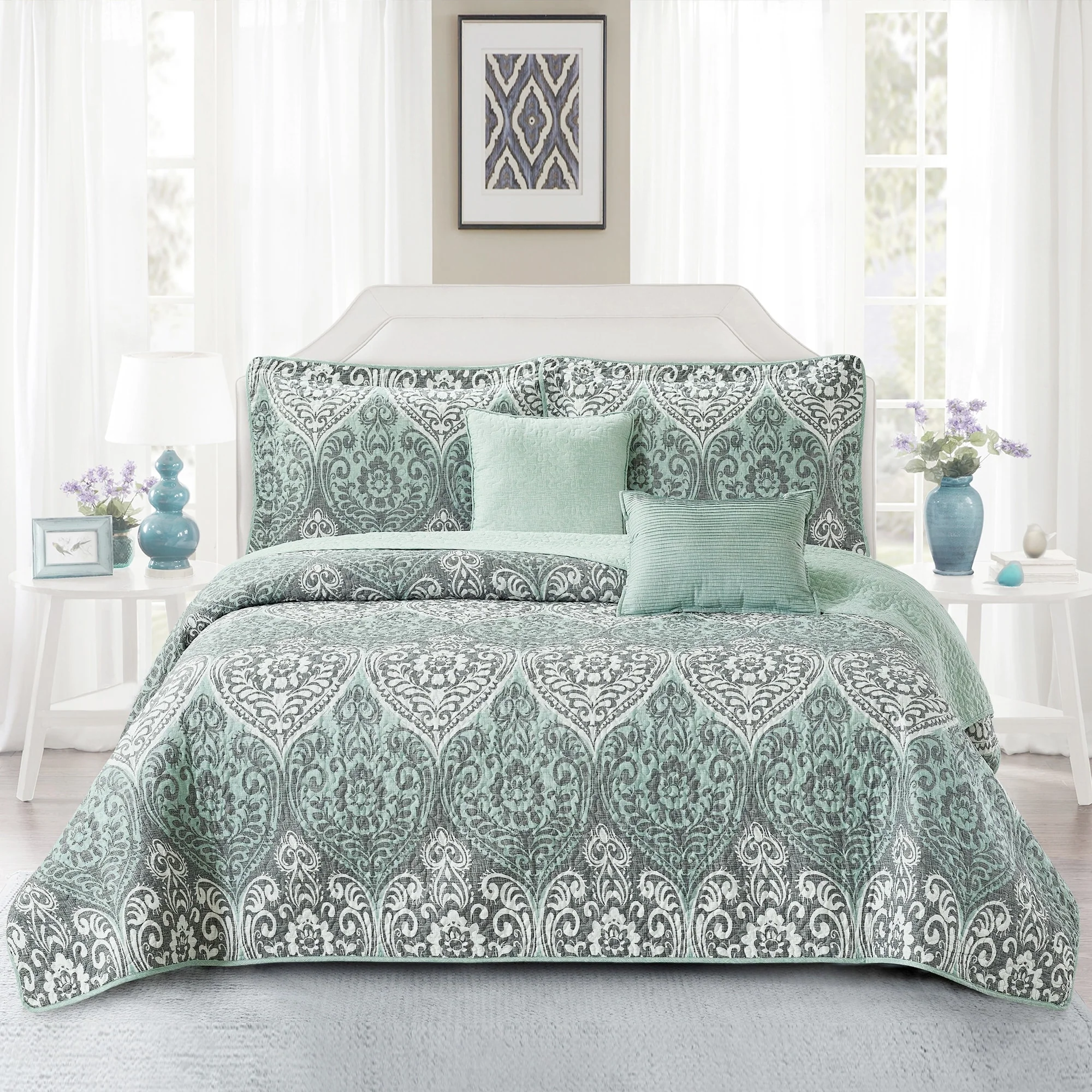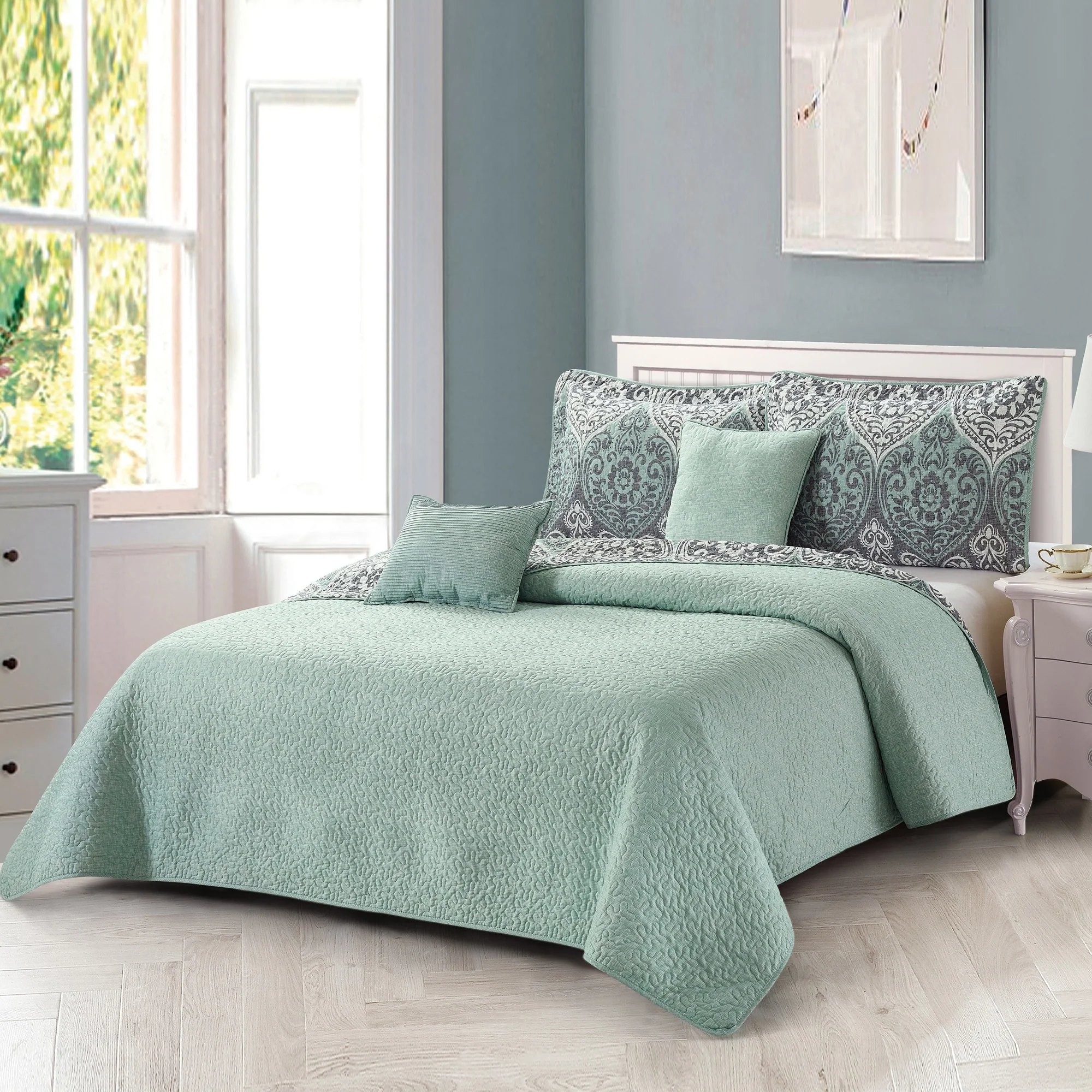 Home Soft Things 5 Piece Kingston Damask Printed Microfiber Quilts