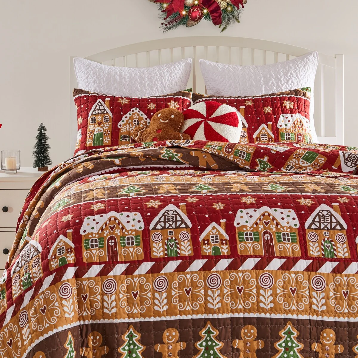 Greenland Home Gingerbread Lane Whimsical Novelty Holiday Quilt Set