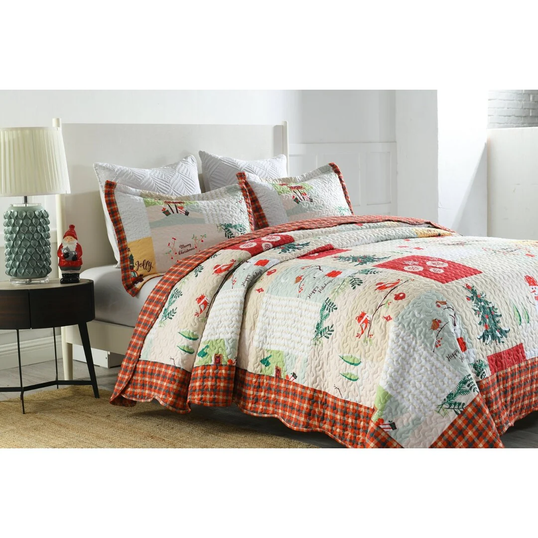 MarCielo Christmas Quilt Set King B022, 1 Quilt 2 Pillow Shams