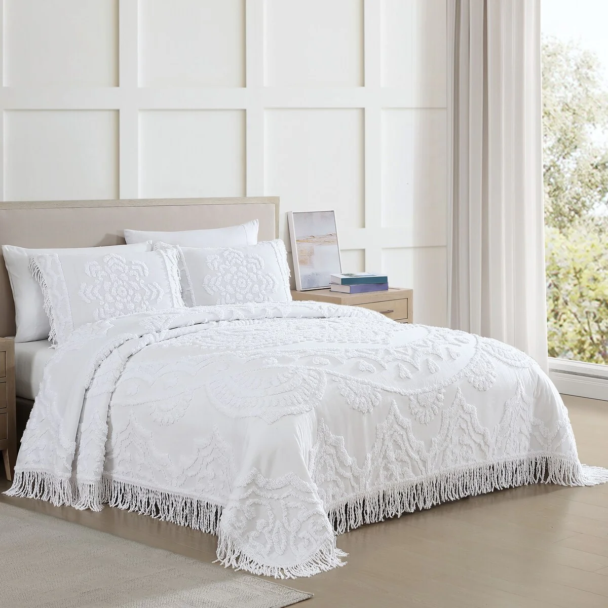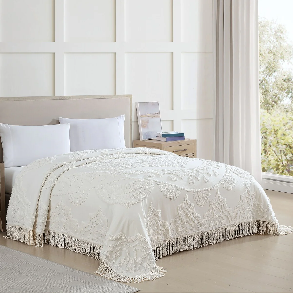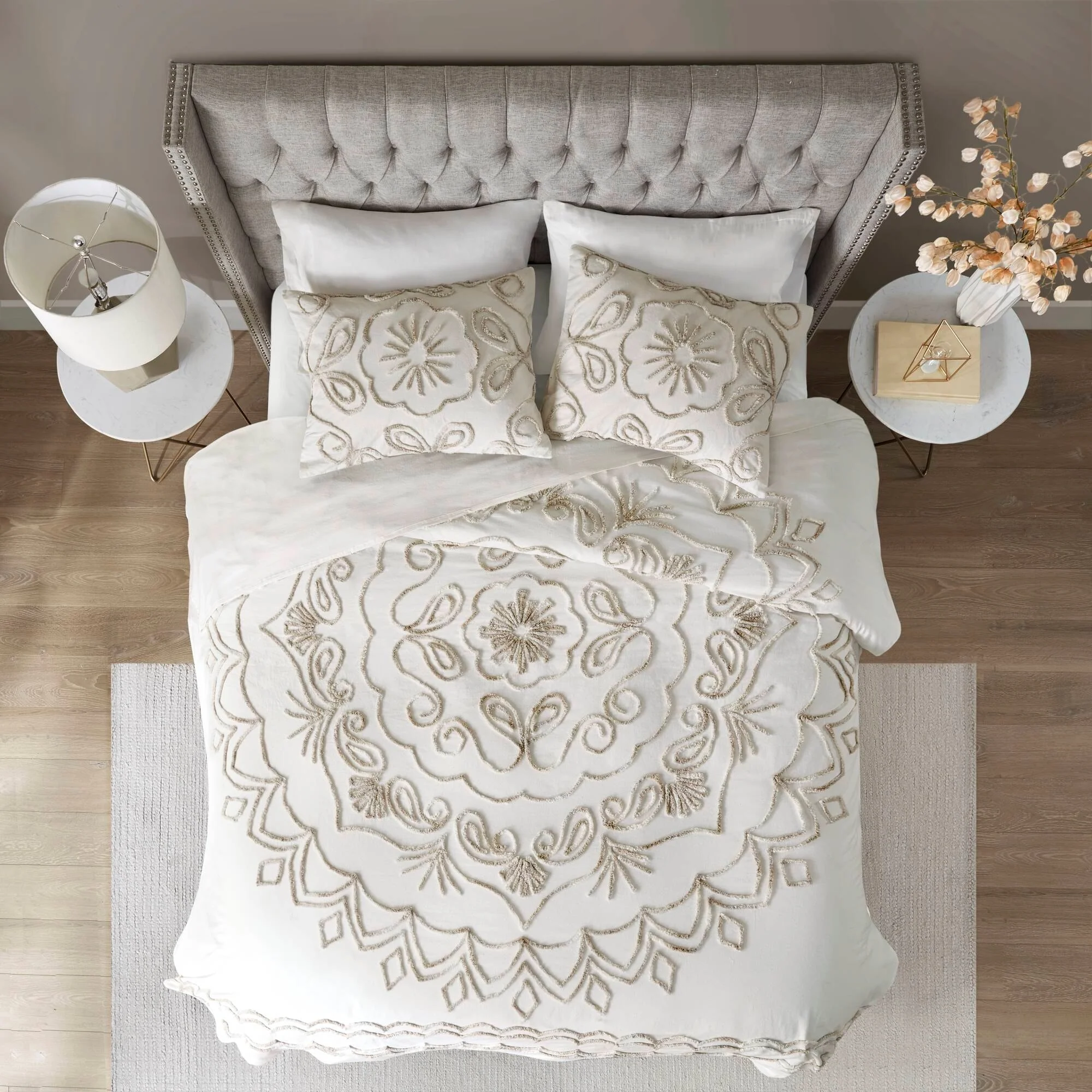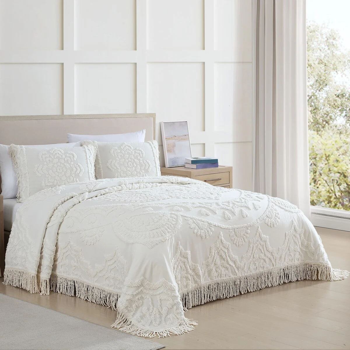 Madison Park Juliana Ivory/ Taupe Tufted Cotton Chenille Coverlet Set