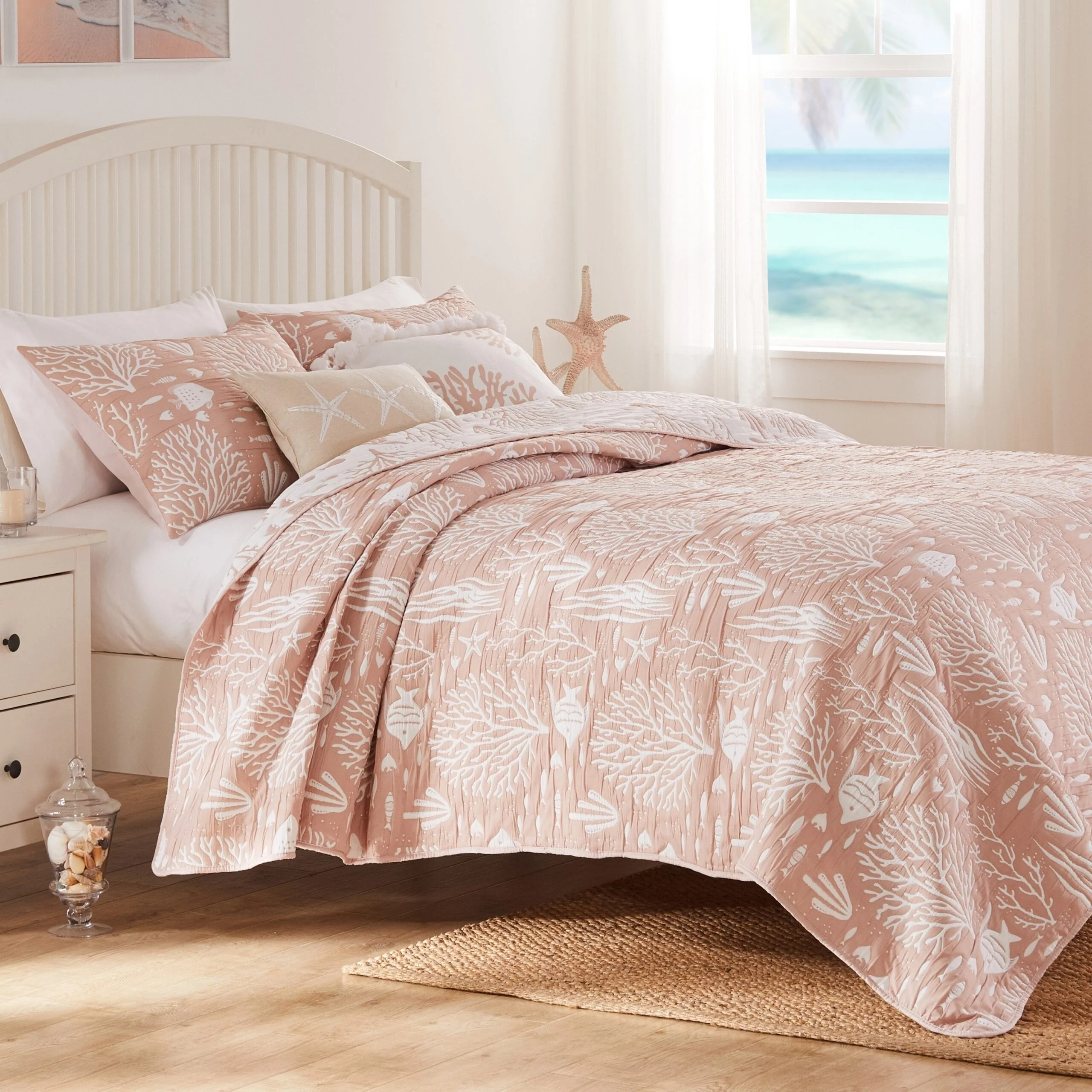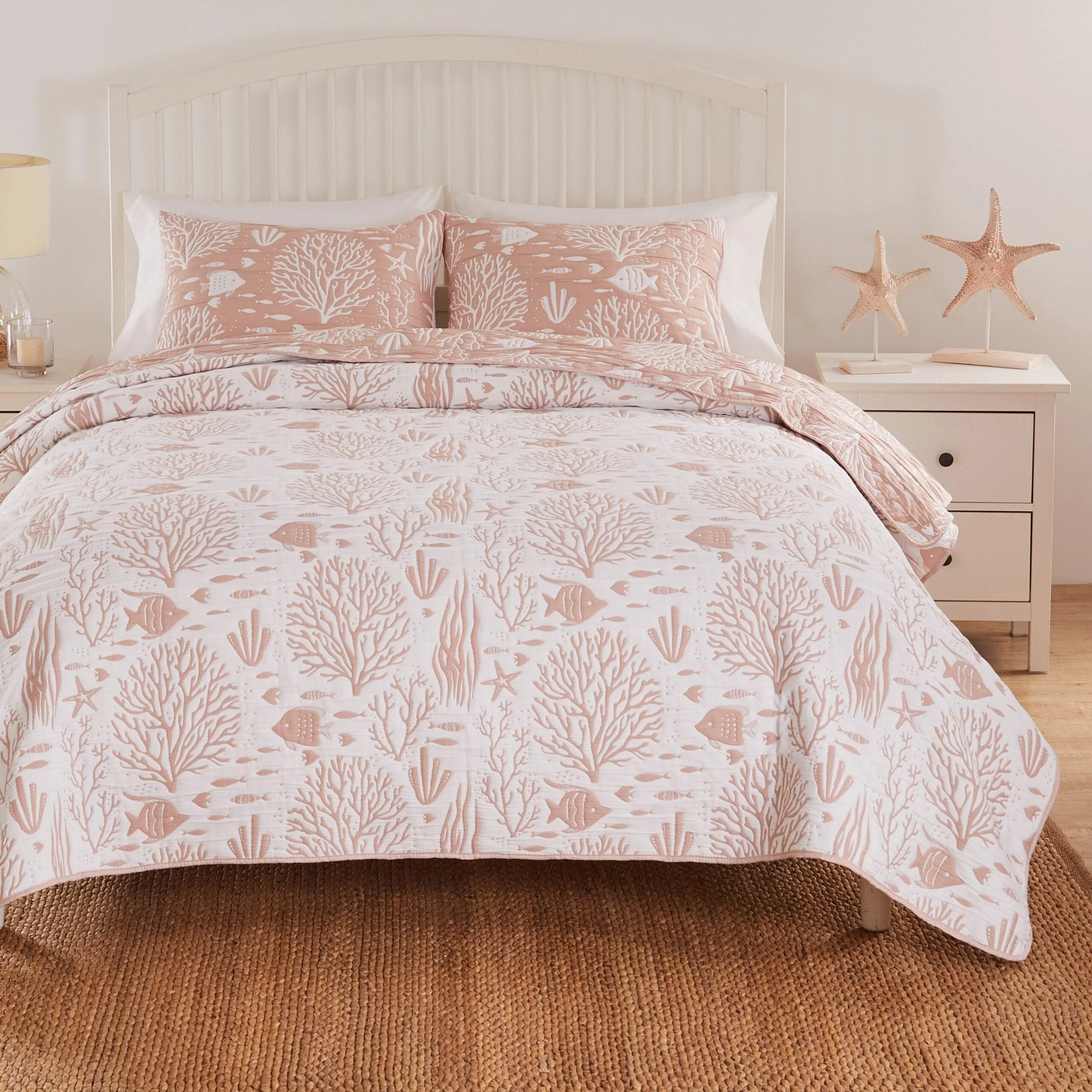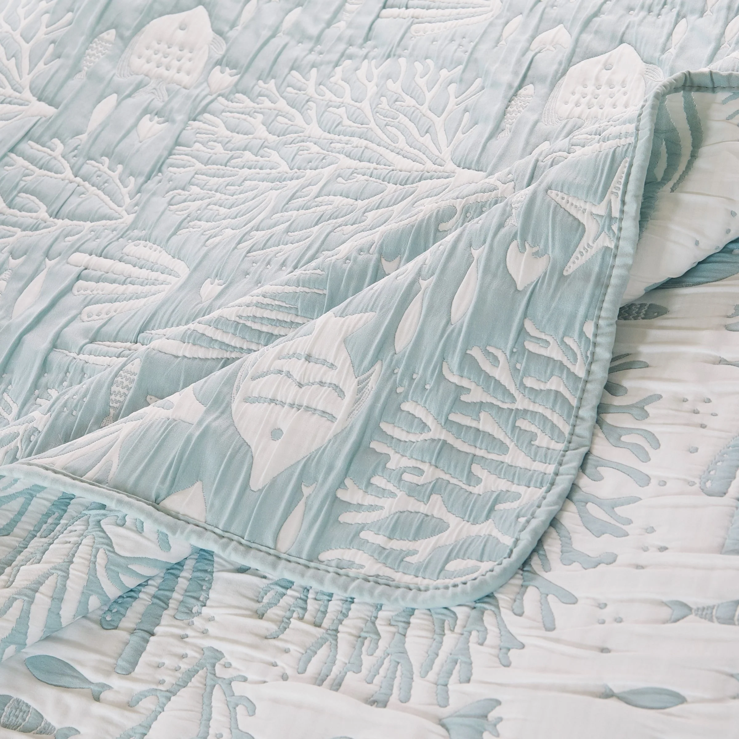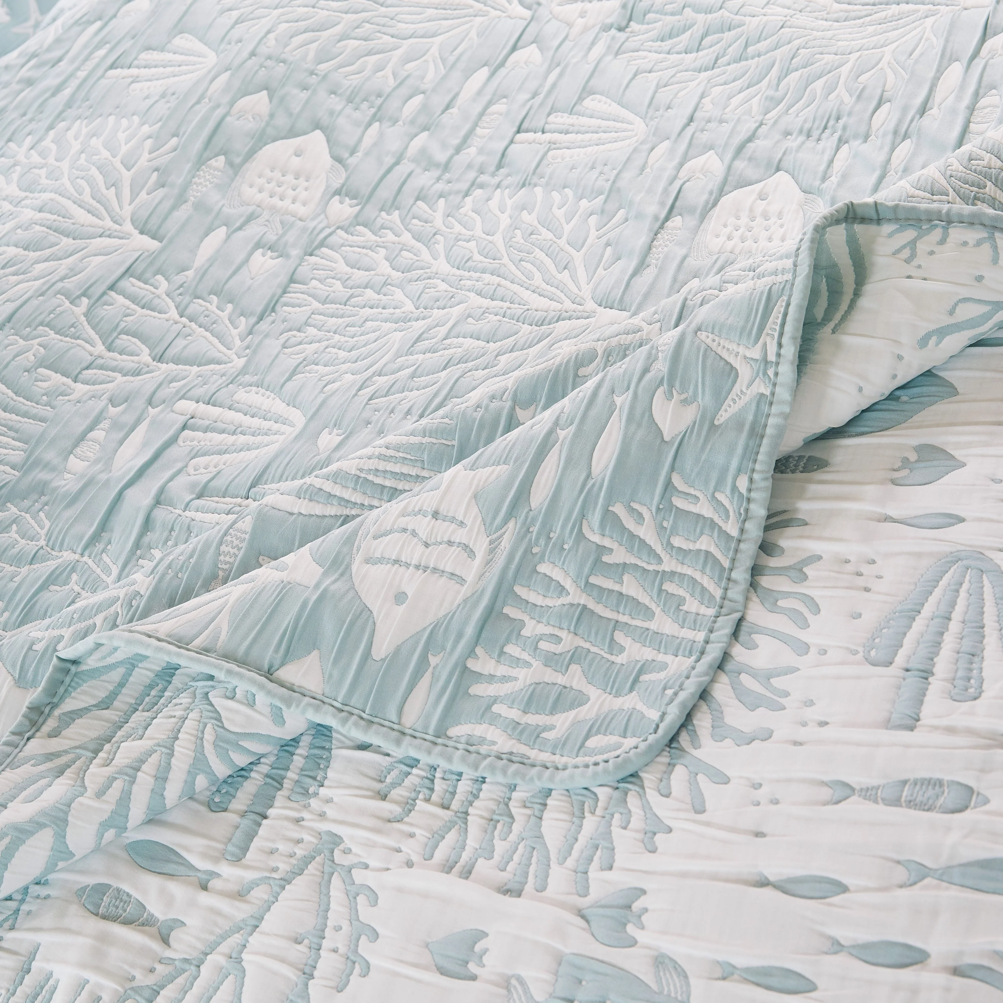 Greenland Home Coastal Paradise Jacquard Woven Reversible Matelass�� Coverlet Set