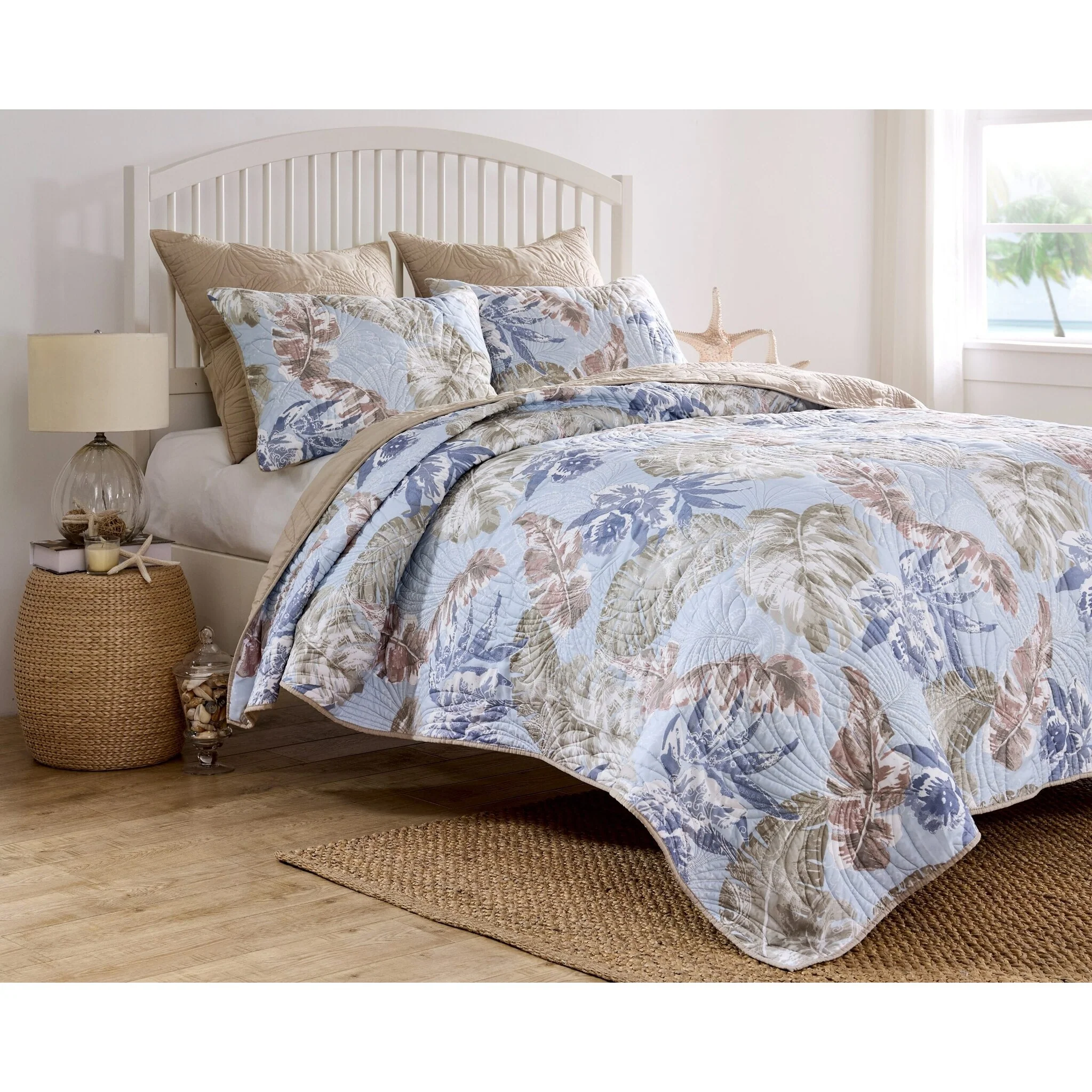 Greenland Home Fashions Tropics Finely Stitched Palm Leaf Reversible Quilt Set