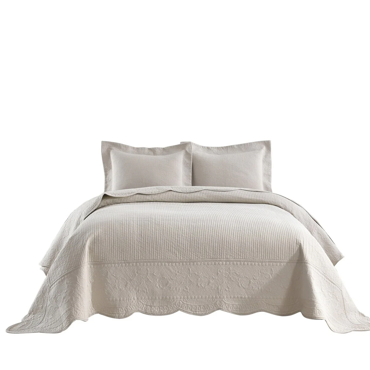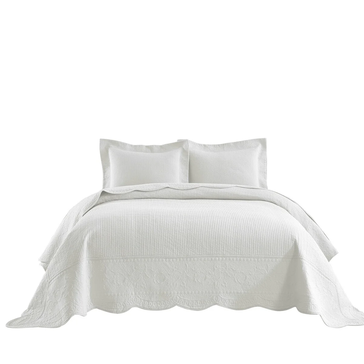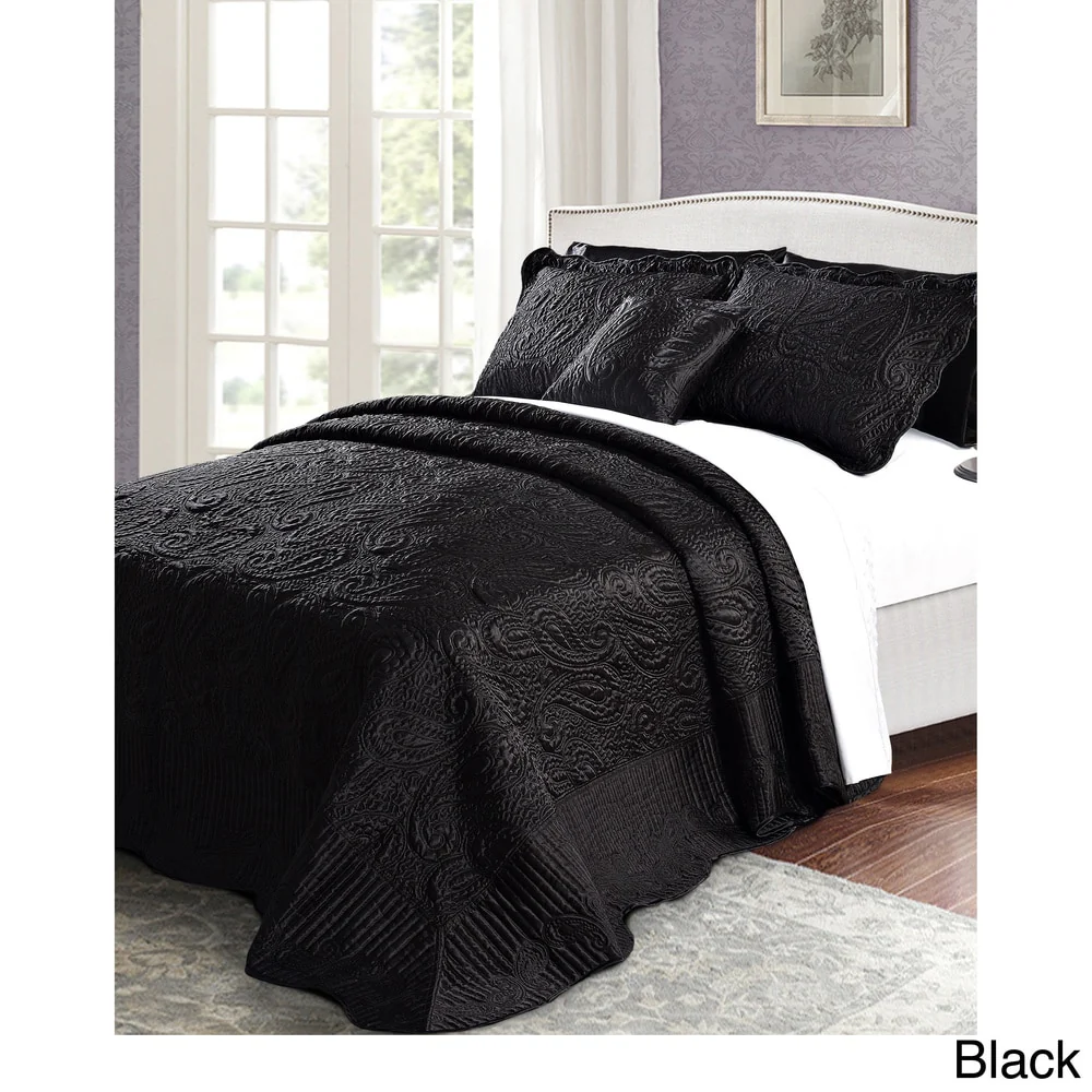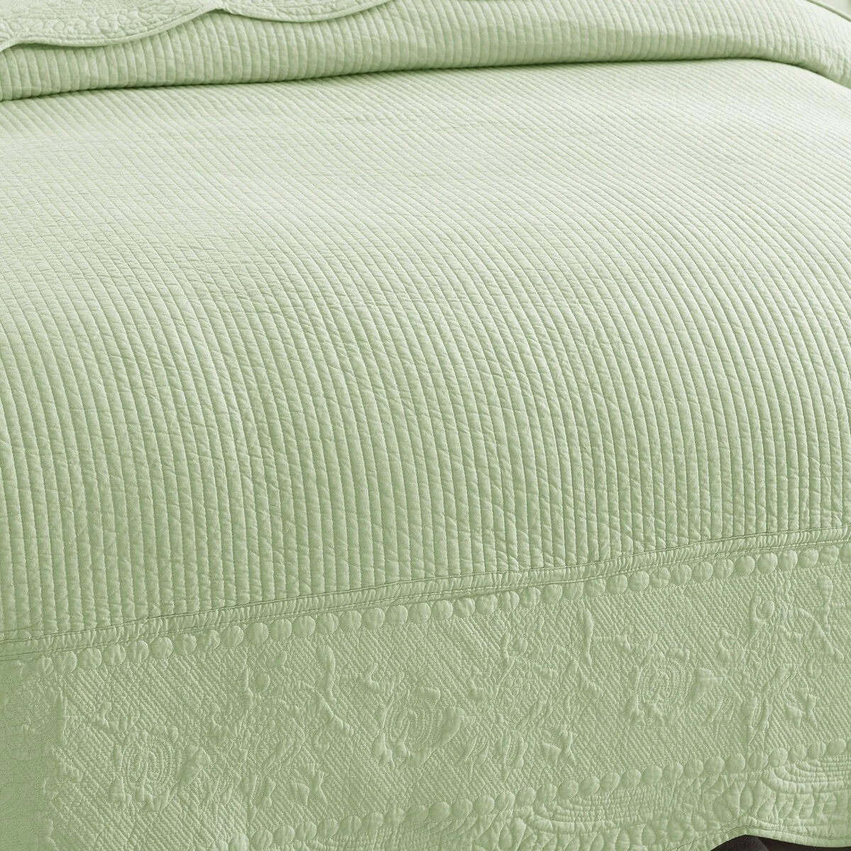 MarCielo 3 Piece Embroidered 100% Cotton Oversized Quilt Bedspread Set TG