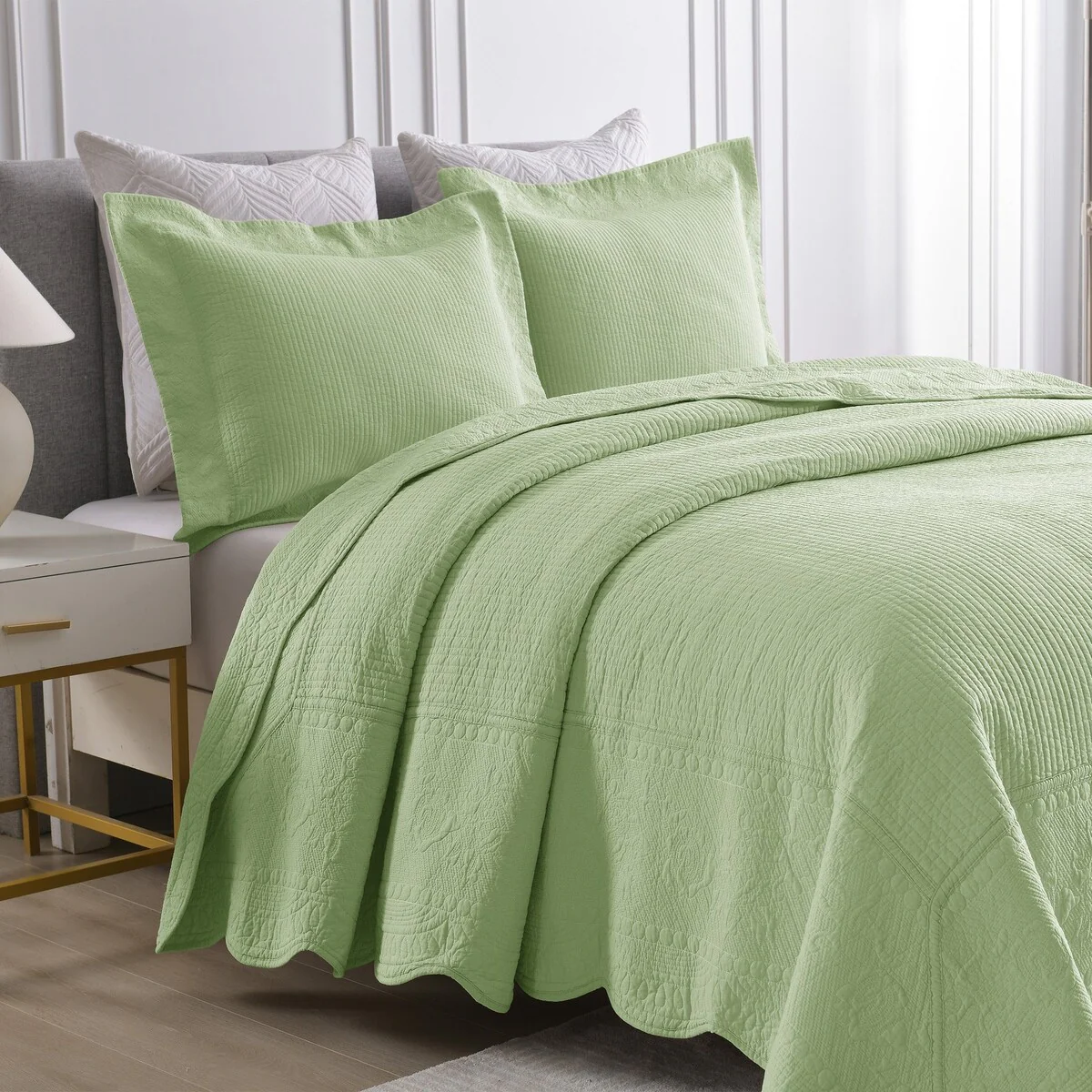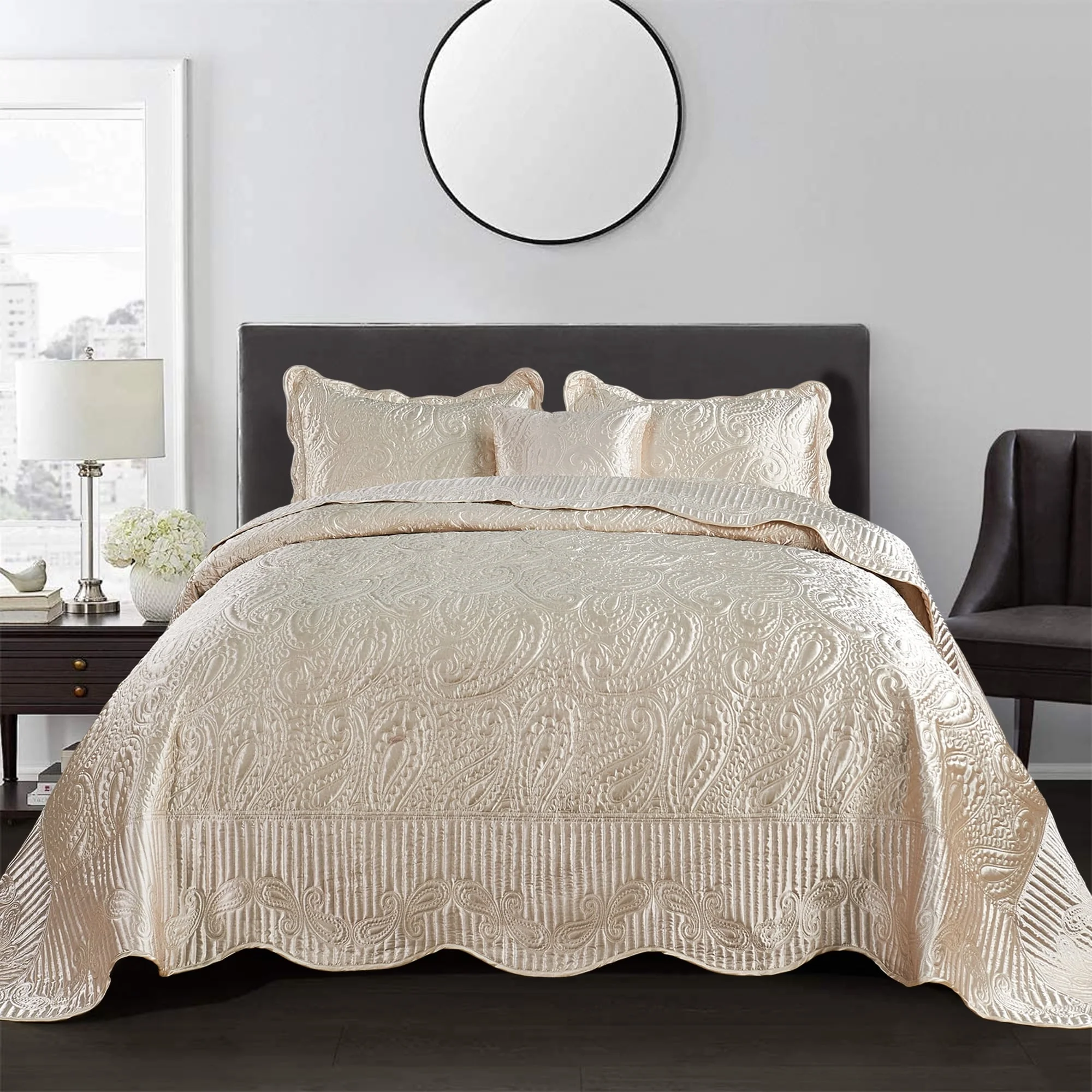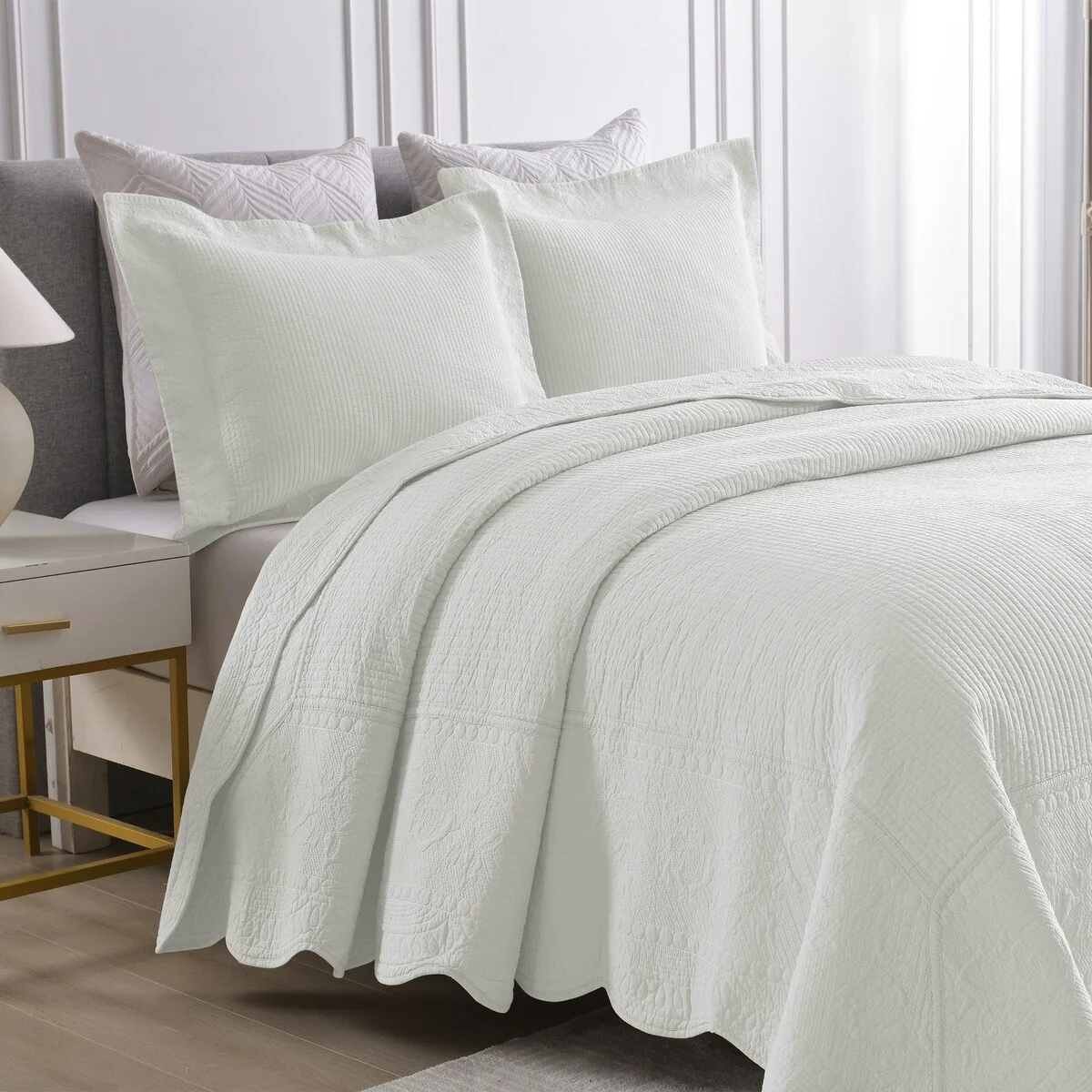 MarCielo 3 Piece Embroidered 100% Cotton Oversized Quilt Bedspread Set TG