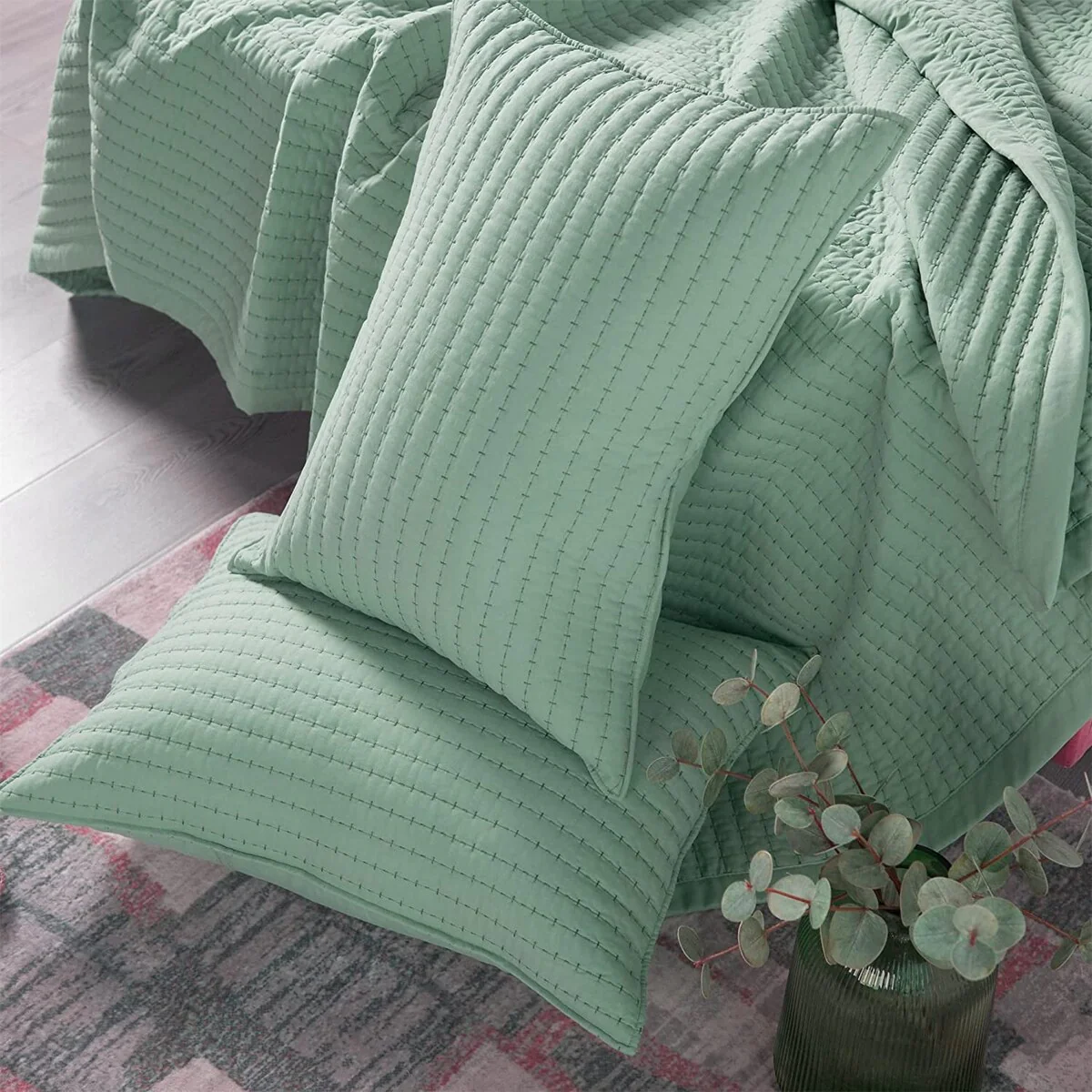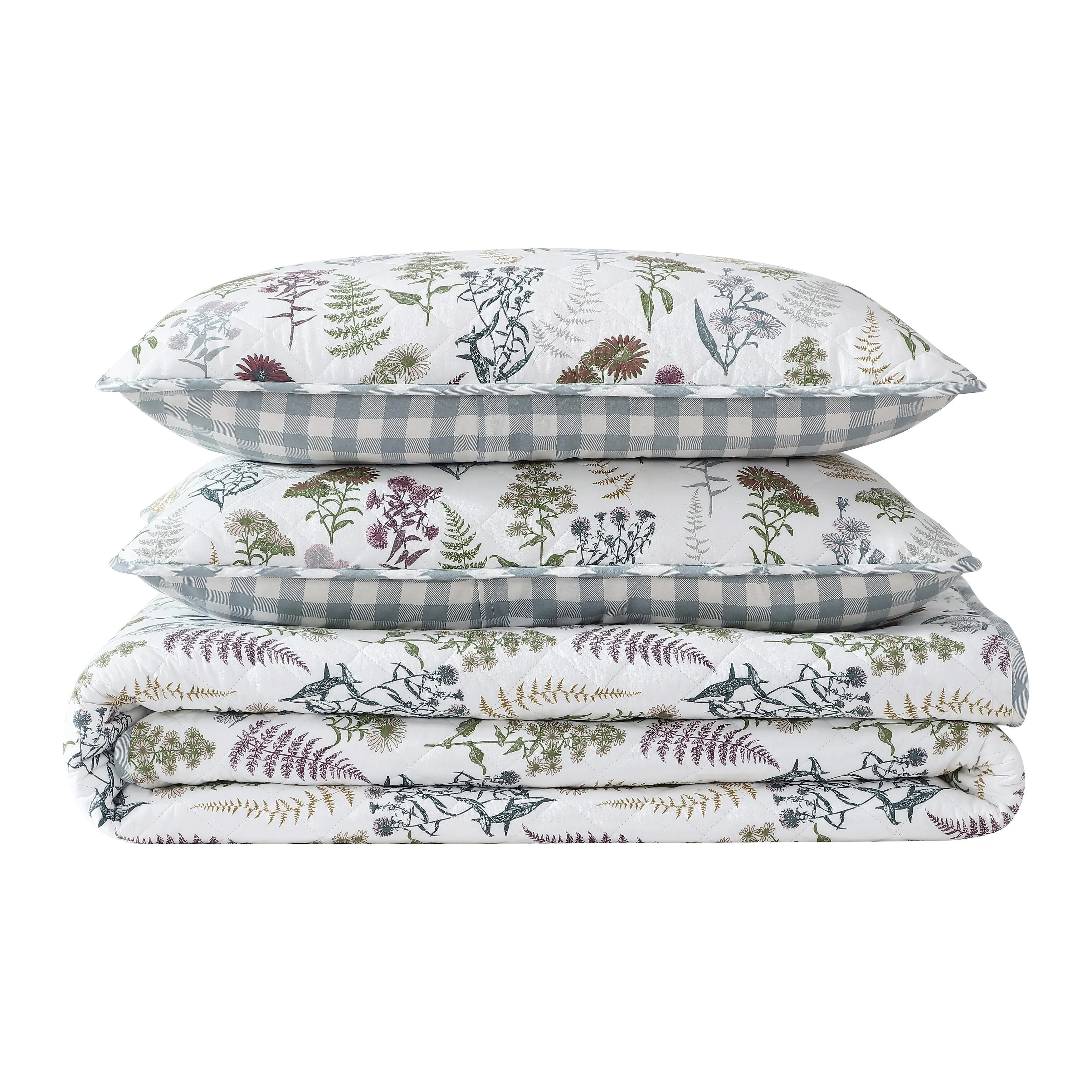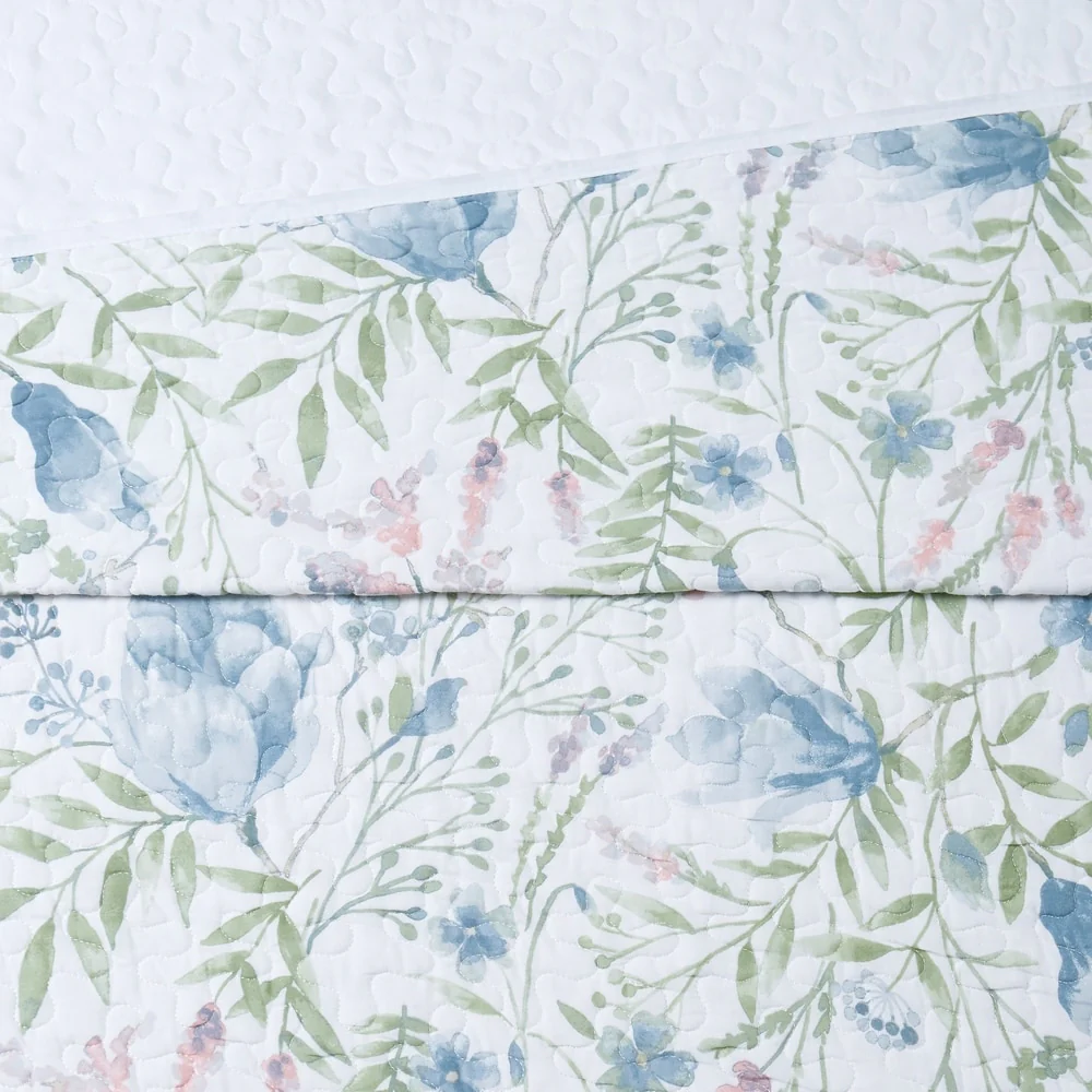 Eddie Bauer Flower Field Cotton Reversible Green Quilt Set