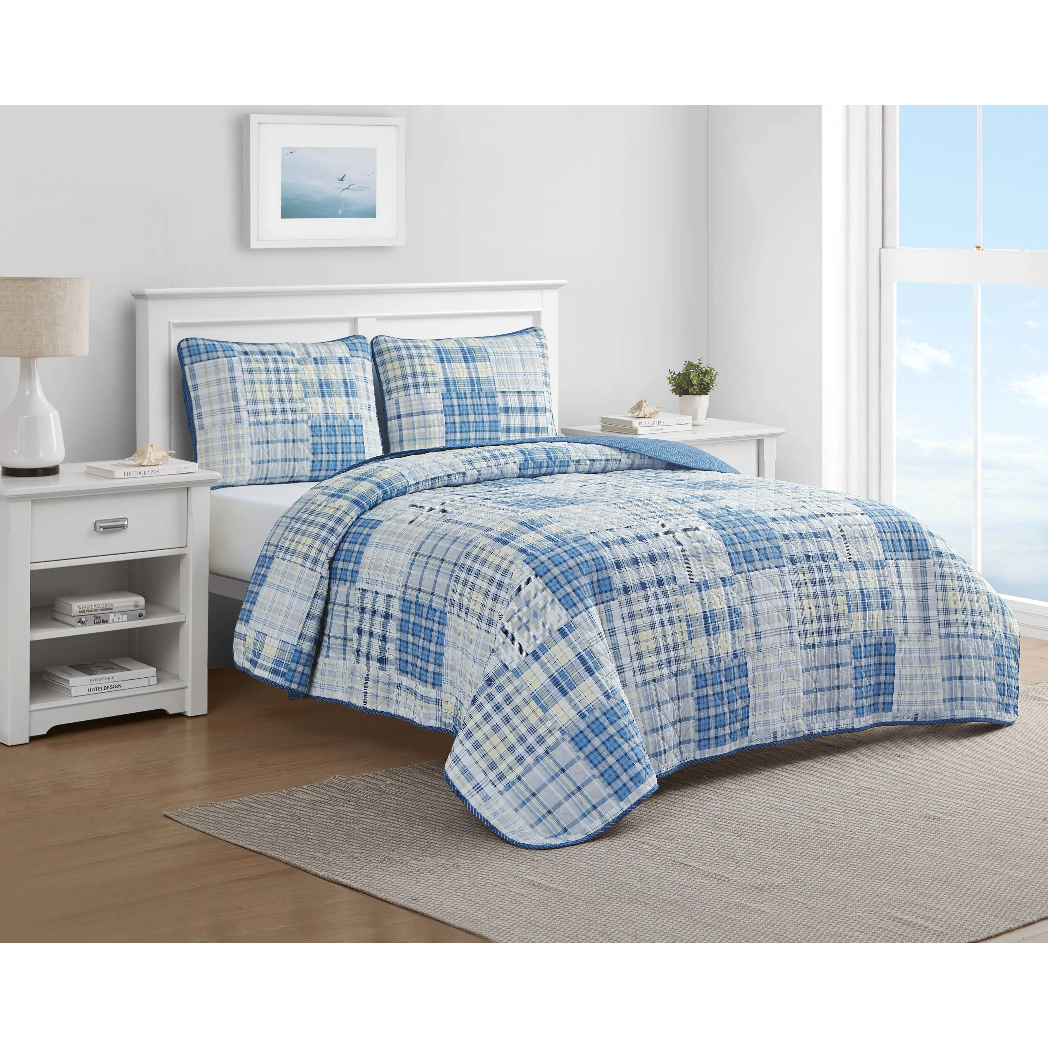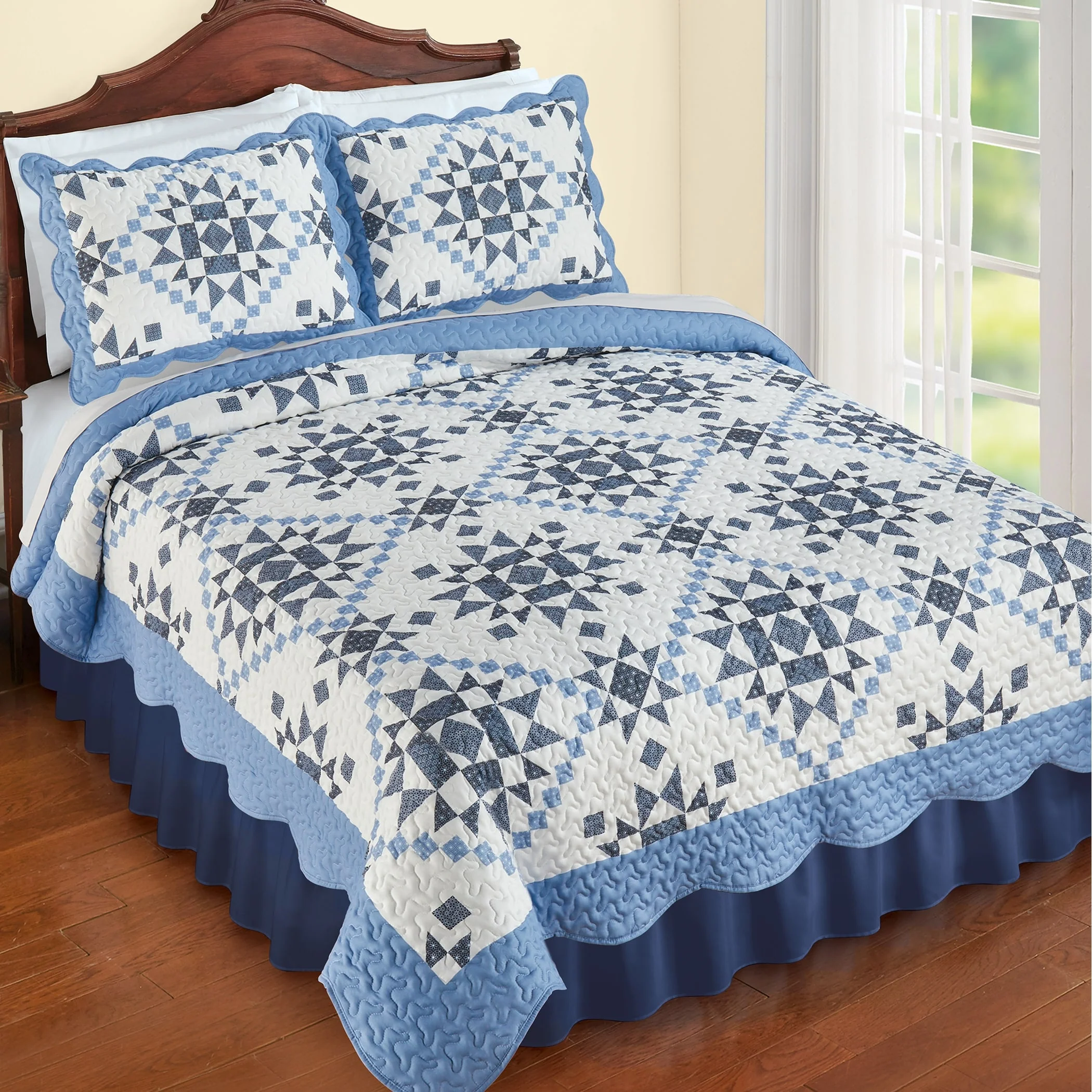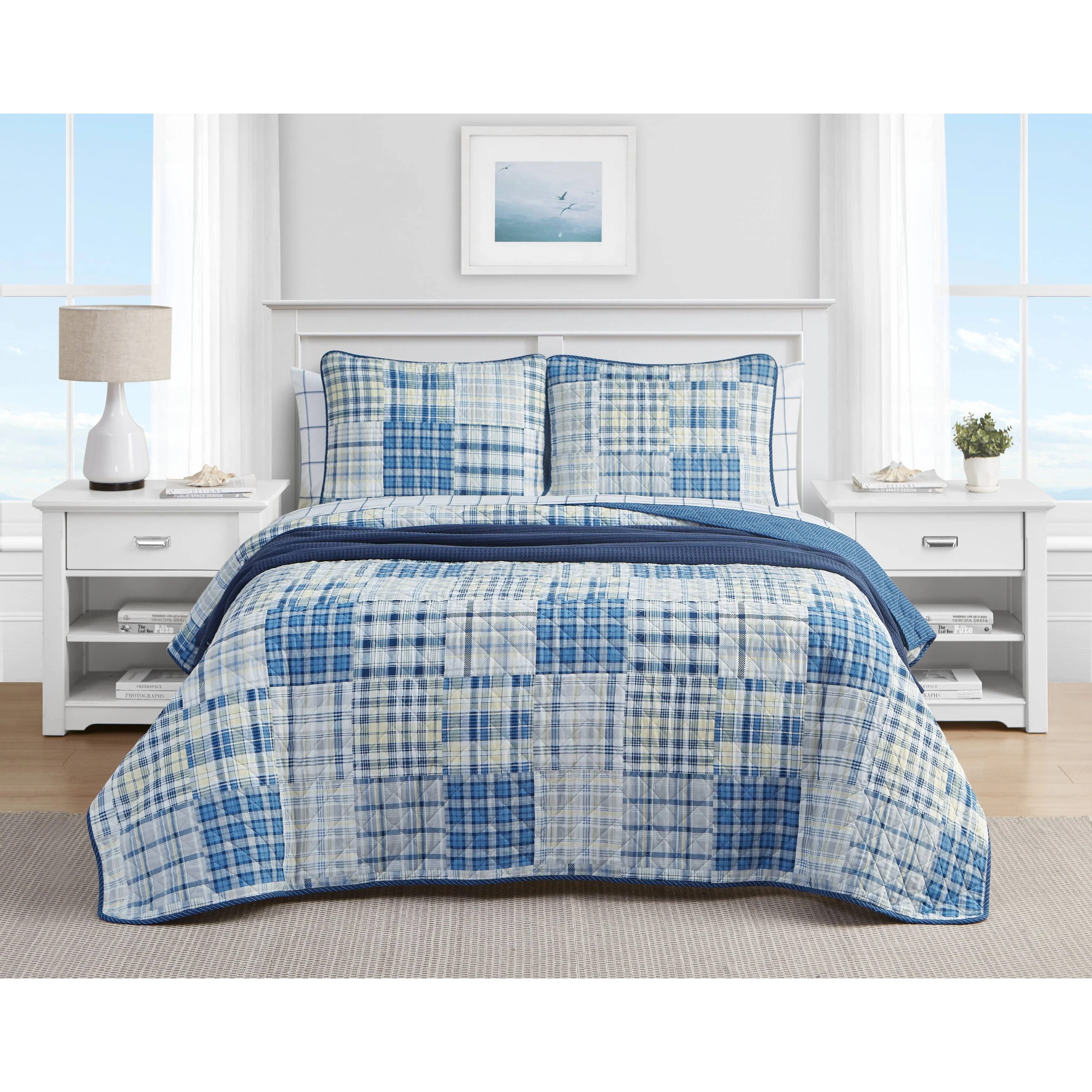 Nautica Raeford Cotton Reversible Blue Quilt Set