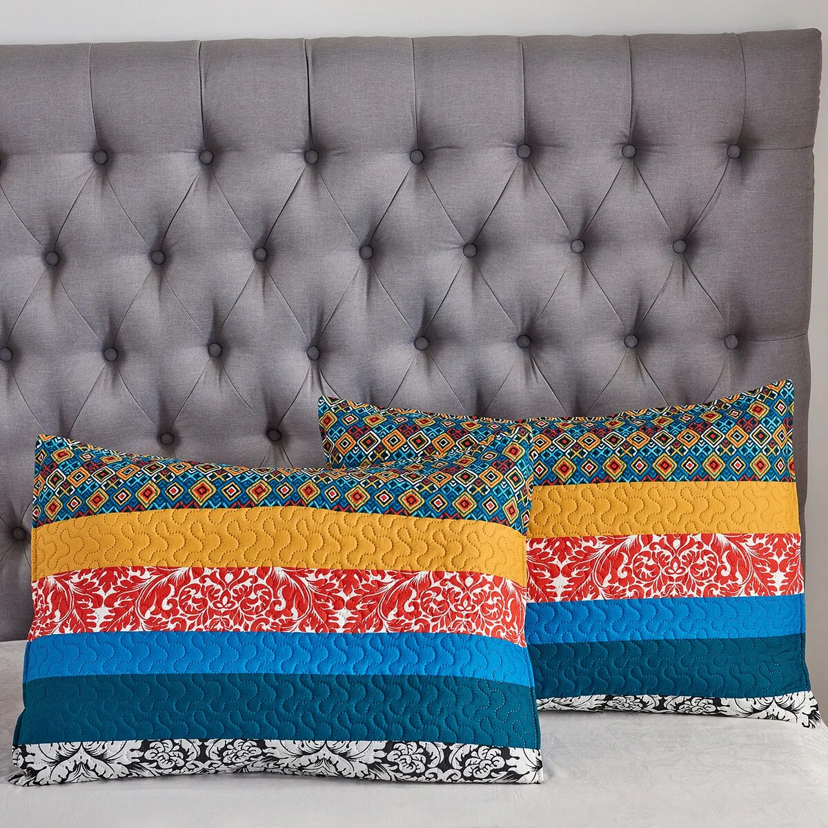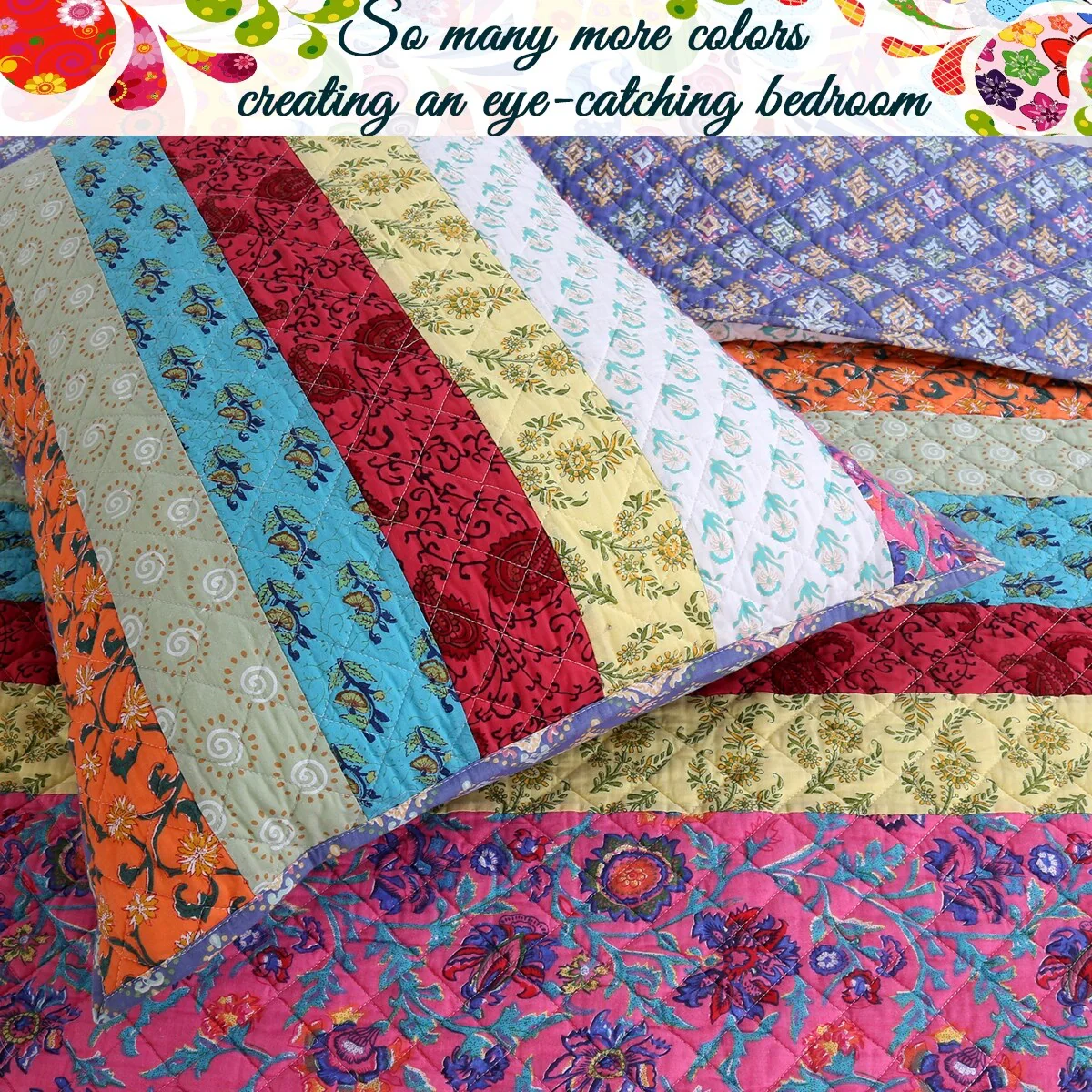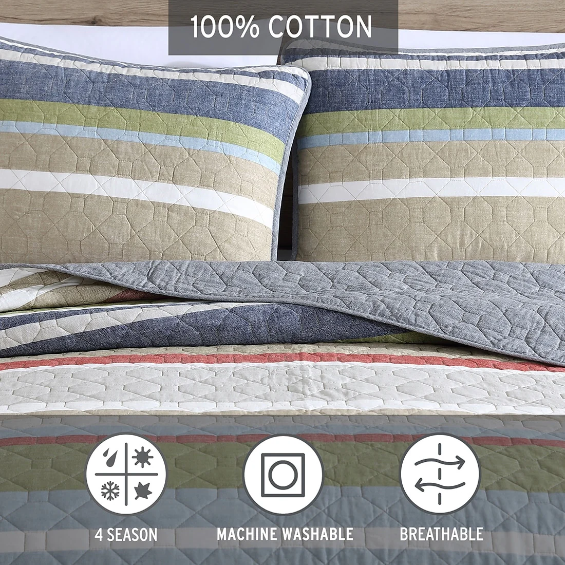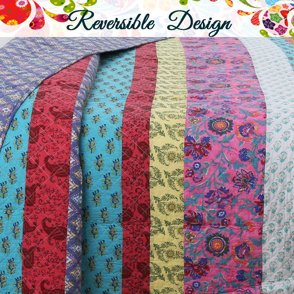 Boho Stripe Quilt Reversible 3 Piece Bohemian Design Bedding Set