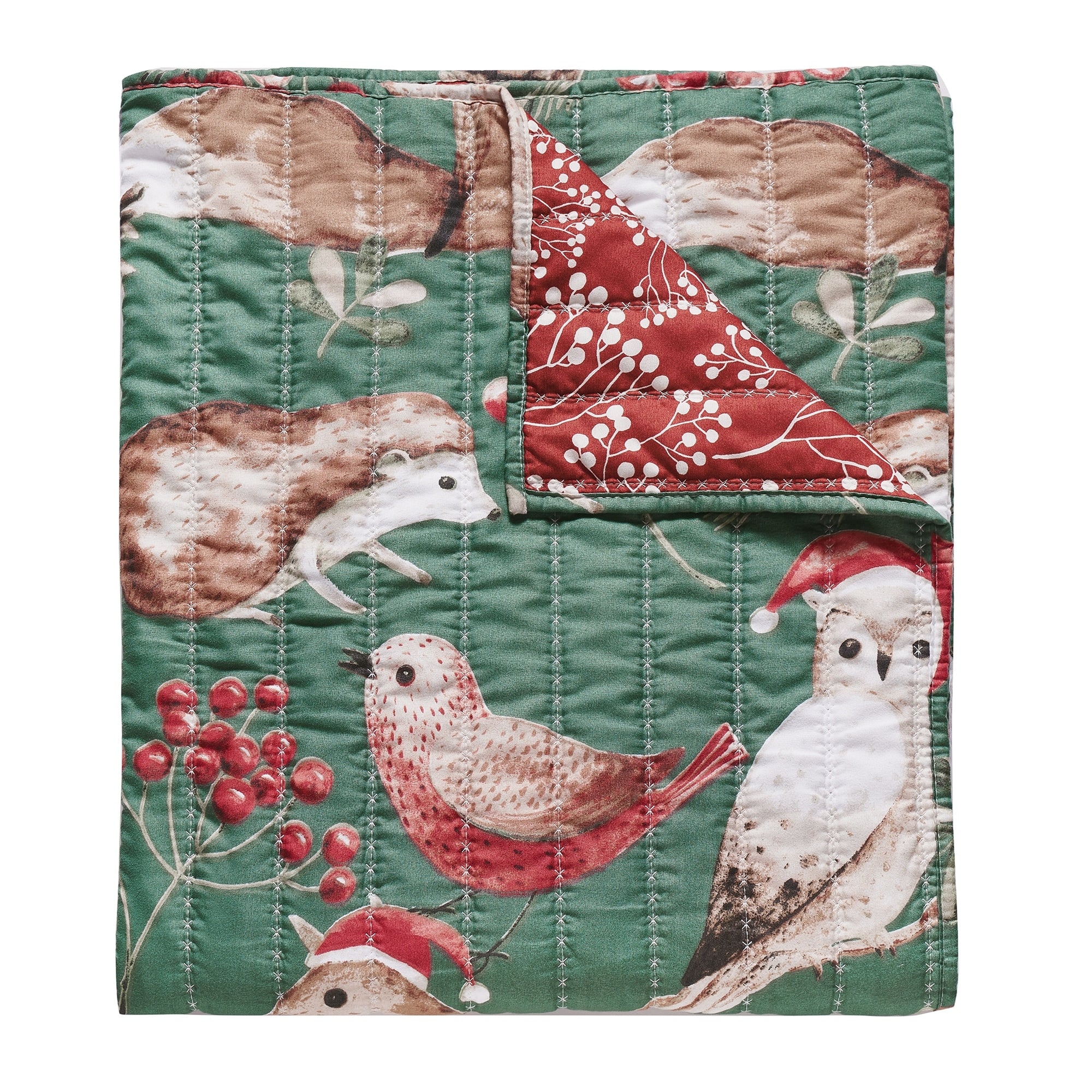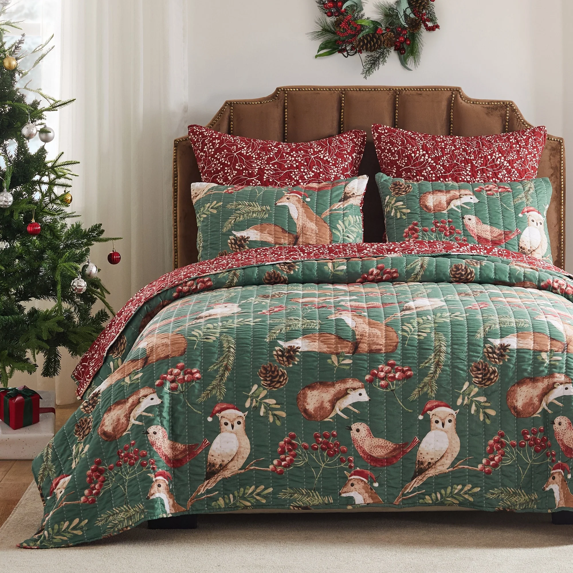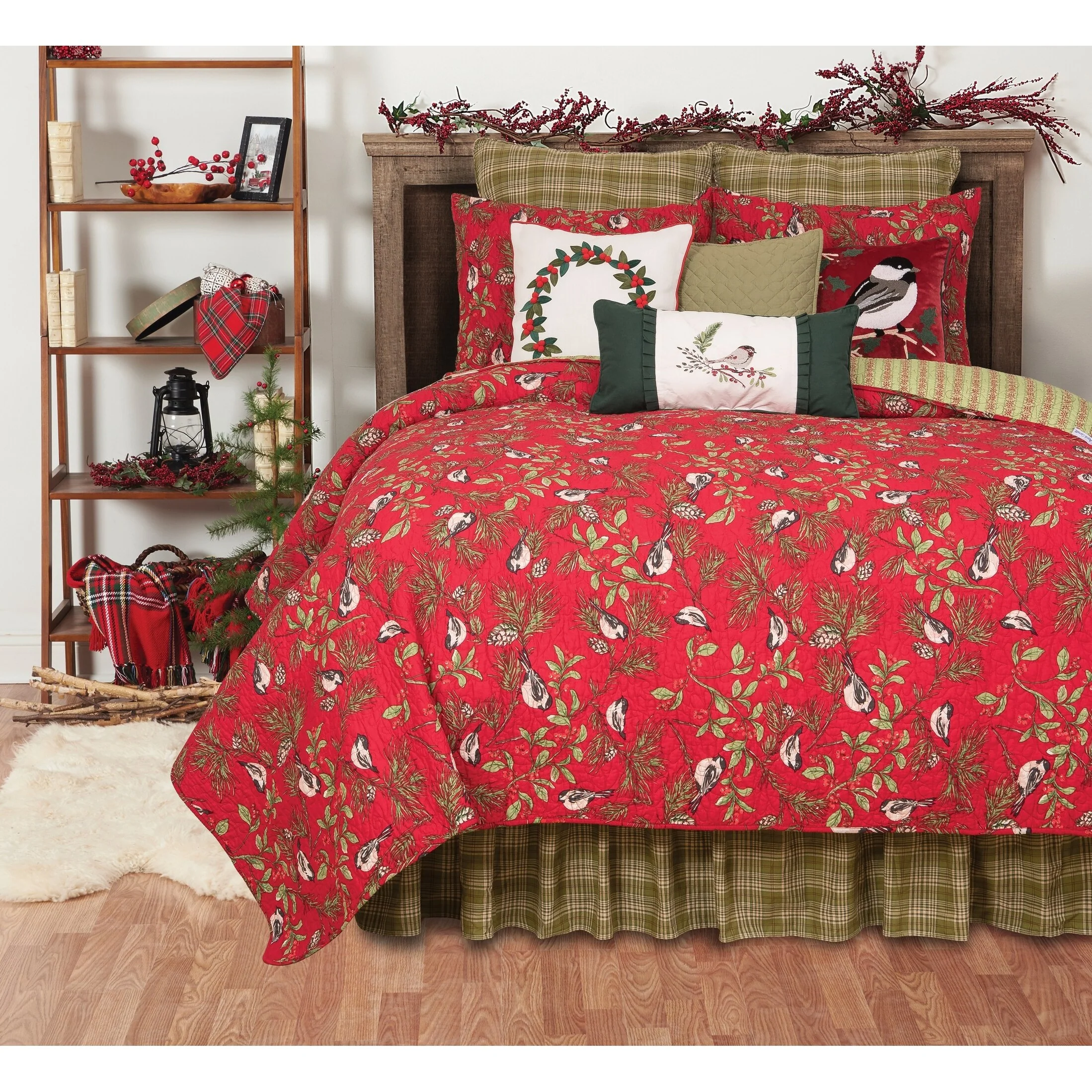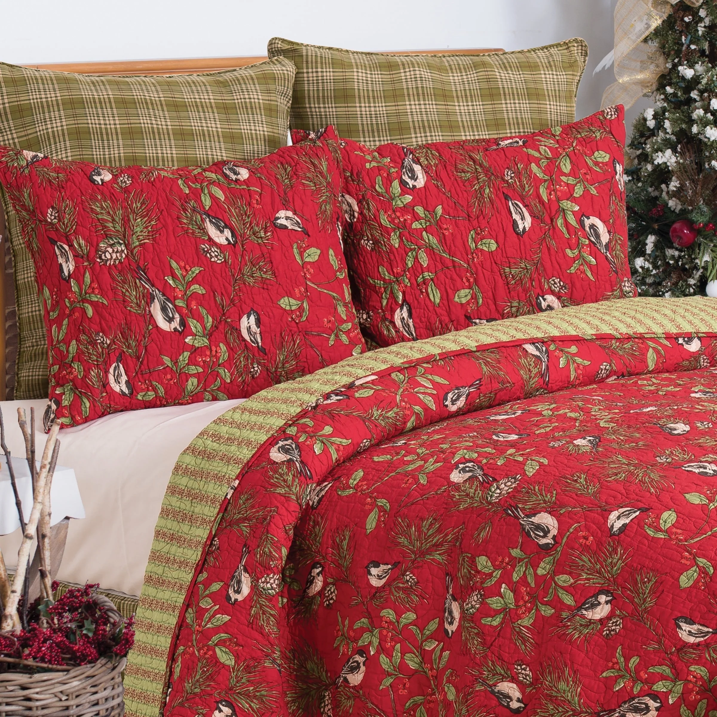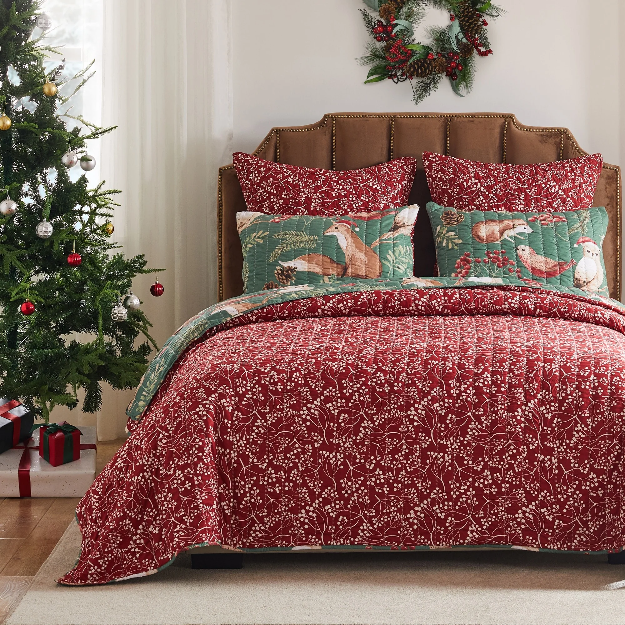 Christmas Berry Wreath Cotton Quilt and Sham Separates