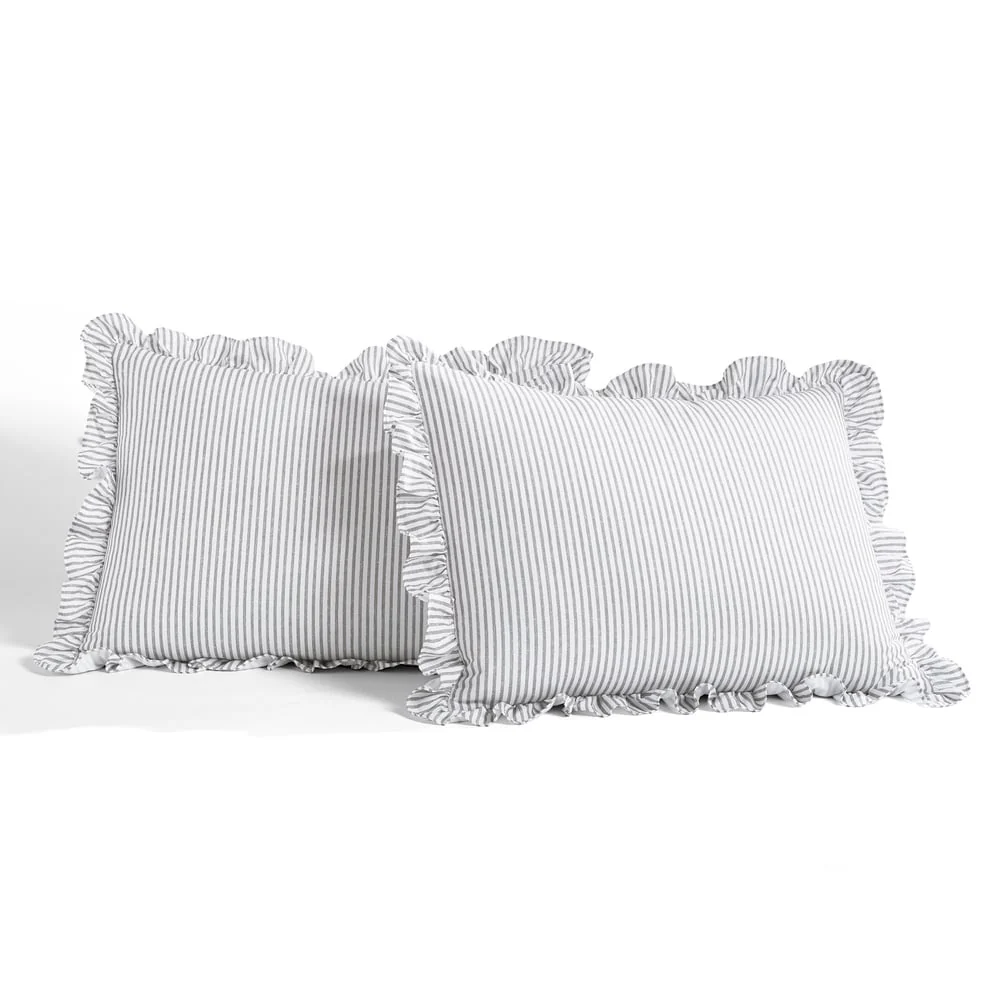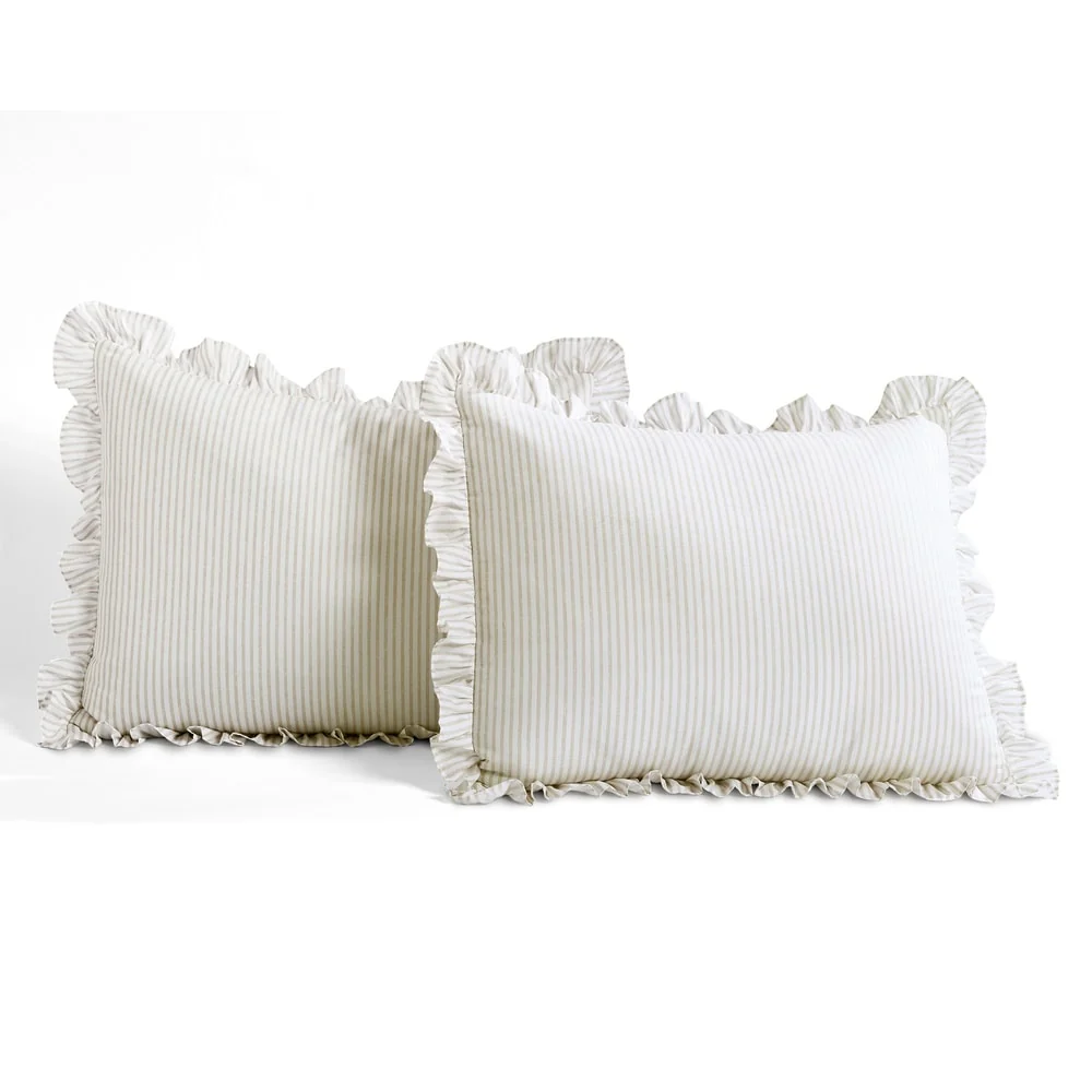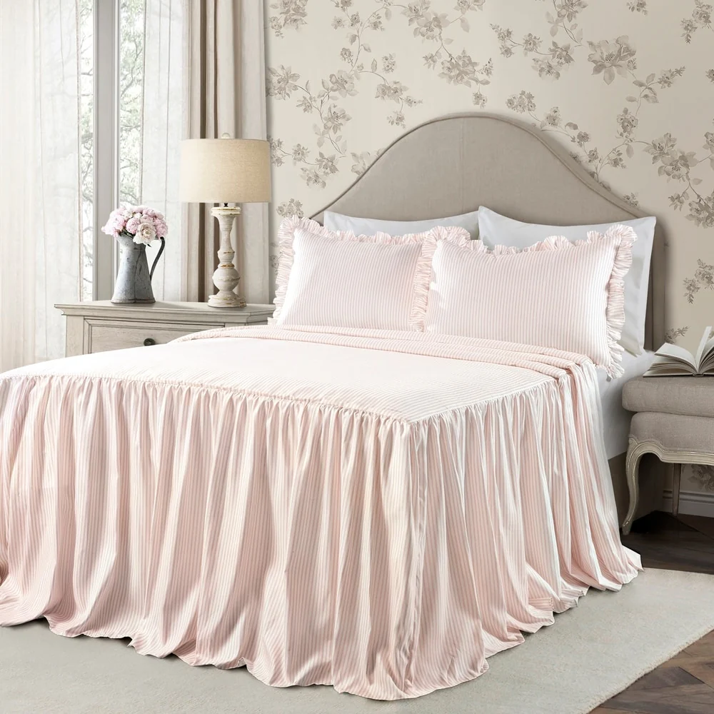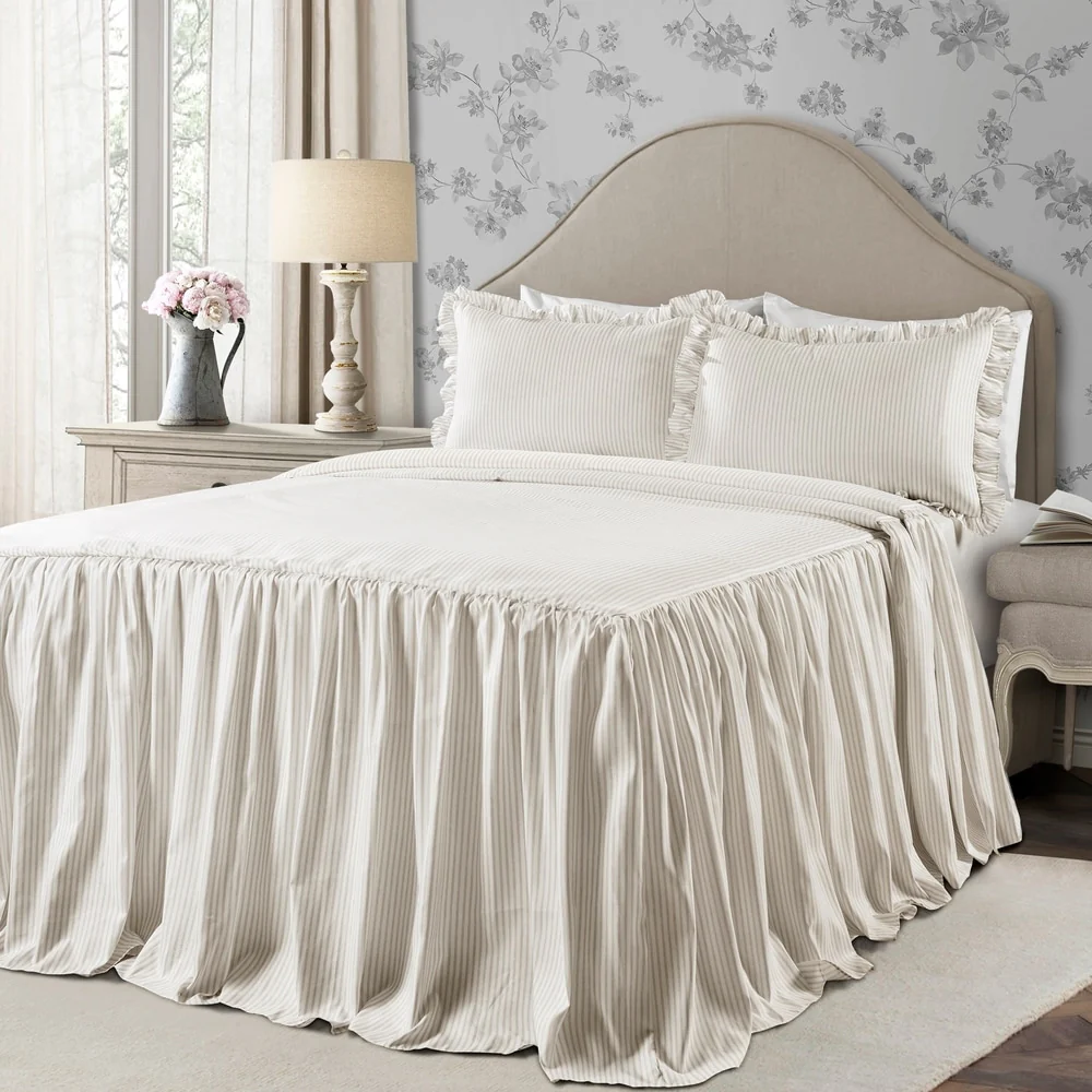 Beaute Living Ruffle Stripe Clip 3-piece Quilt Set