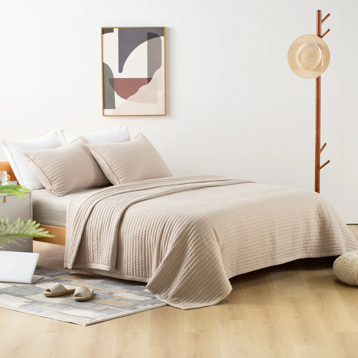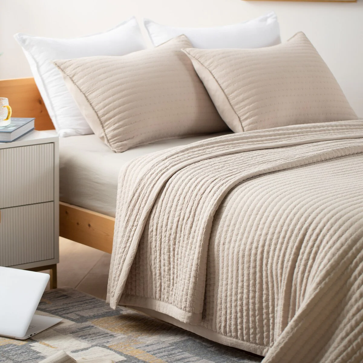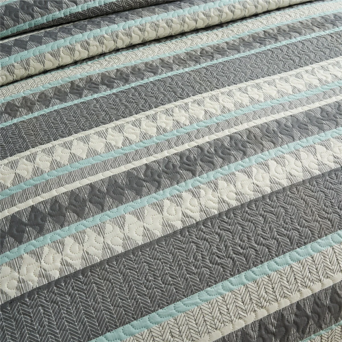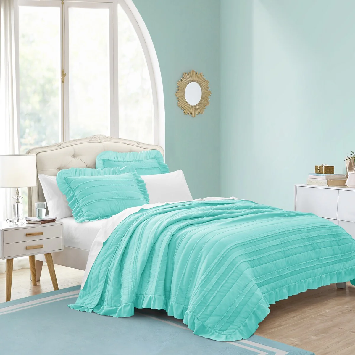 Beaute Living Ruffle Stripe Clip 3-piece Quilt Set