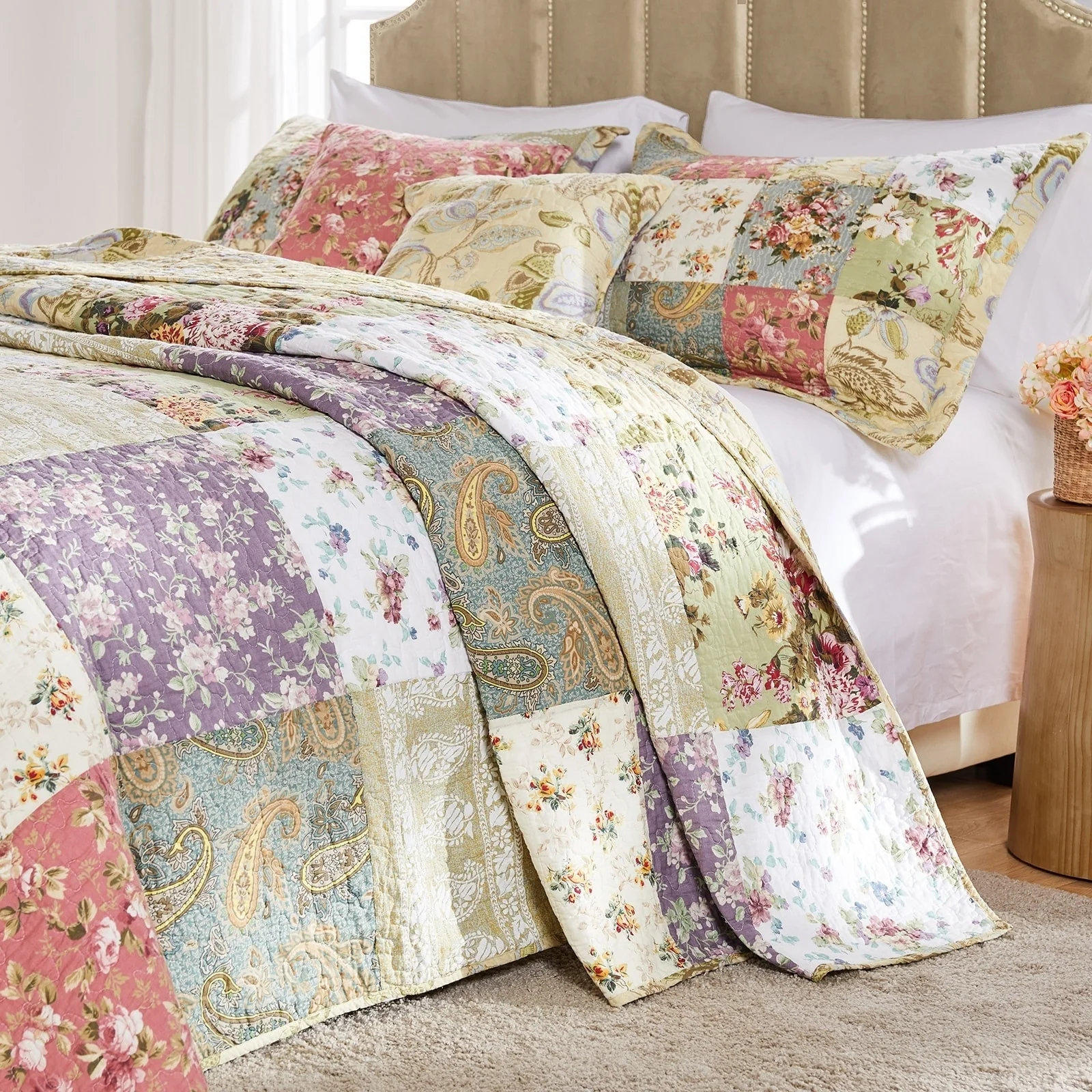 Greenland Home Fashions Blooming Prairie 100% Cotton Authentic Patchwork Bedspread Set